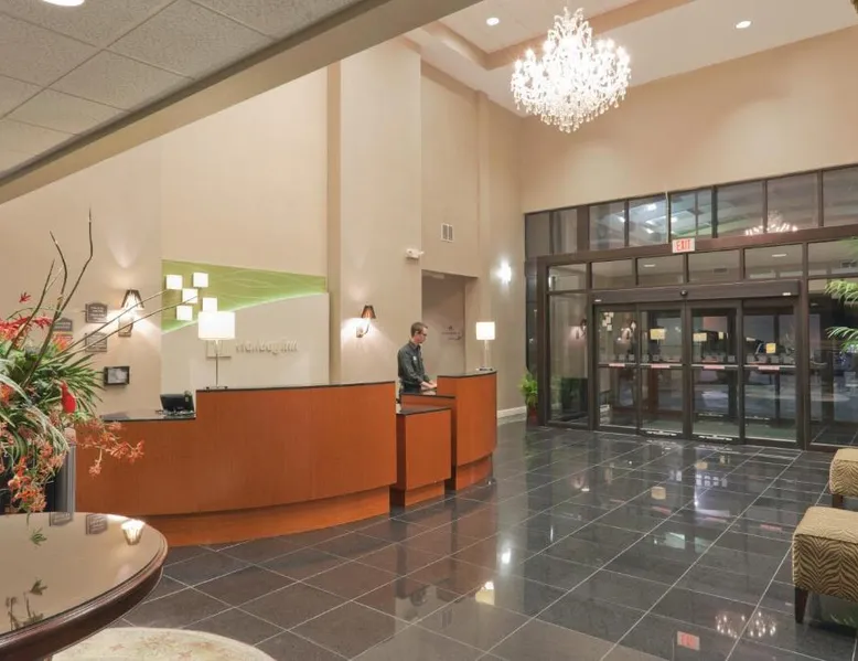 Comfortable Accommodations: Holiday Inn Carbondale - Conference Center by IHG in Carbondale offers comfortable rooms with air-conditioning, private bathrooms, and modern amenities. Guests appreciate the room cleanliness and comfort. Leisure Facilities: The hotel features a sun terrace, indoor swimming pool, and free WiFi. Additional facilities include a fitness room, lounge, outdoor seating area, and free on-site parking. Dining Options: A breakfast buffet with juice, fresh pastries, and fruits is served daily. The on-site restaurant offers a variety of dining options. Location and Attractions: Located 11 mi from Williamson County Regional Airport, the hotel is 4.3 mi from Southern Illinois University and 12 mi from Giant City State Park. A flat-screen cable TV with free HBO and a sofa bed highlight this room. A refrigerator, microwave, seating area, and work desk are also included.