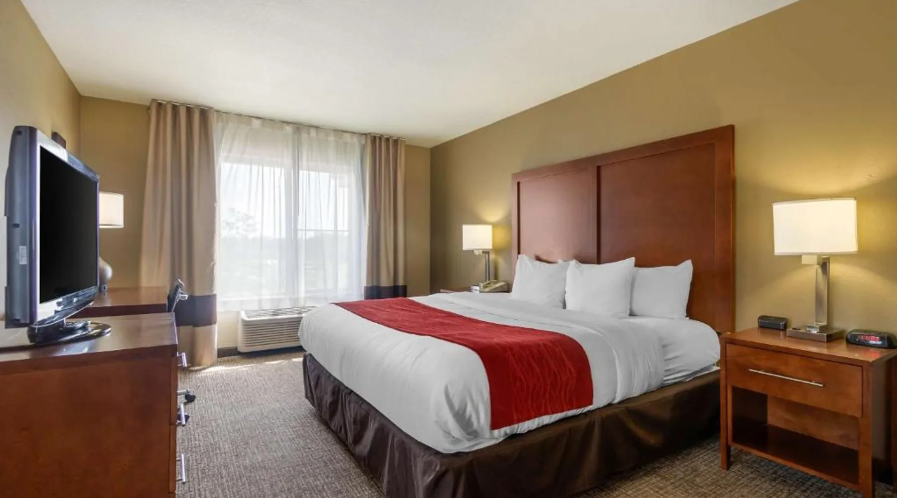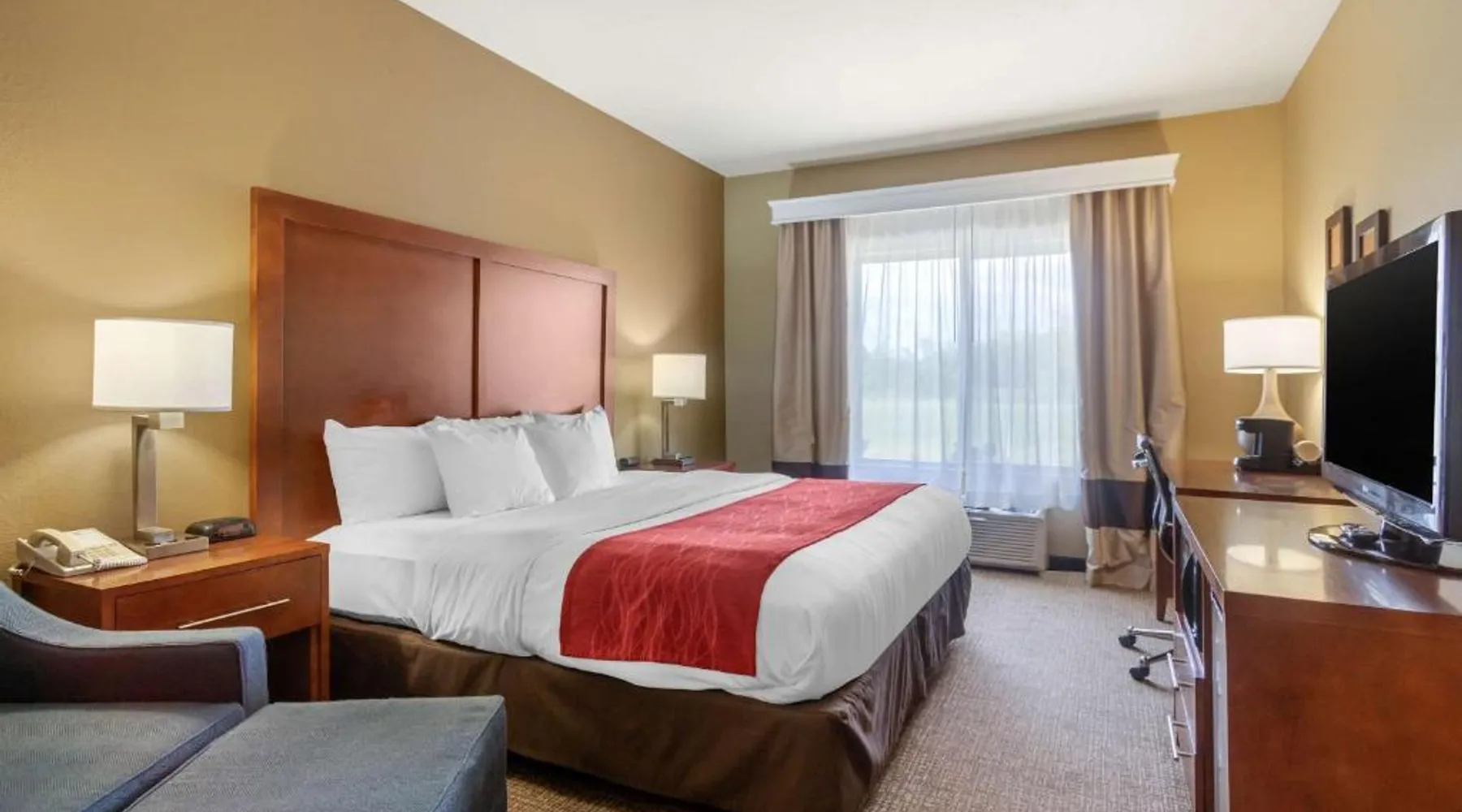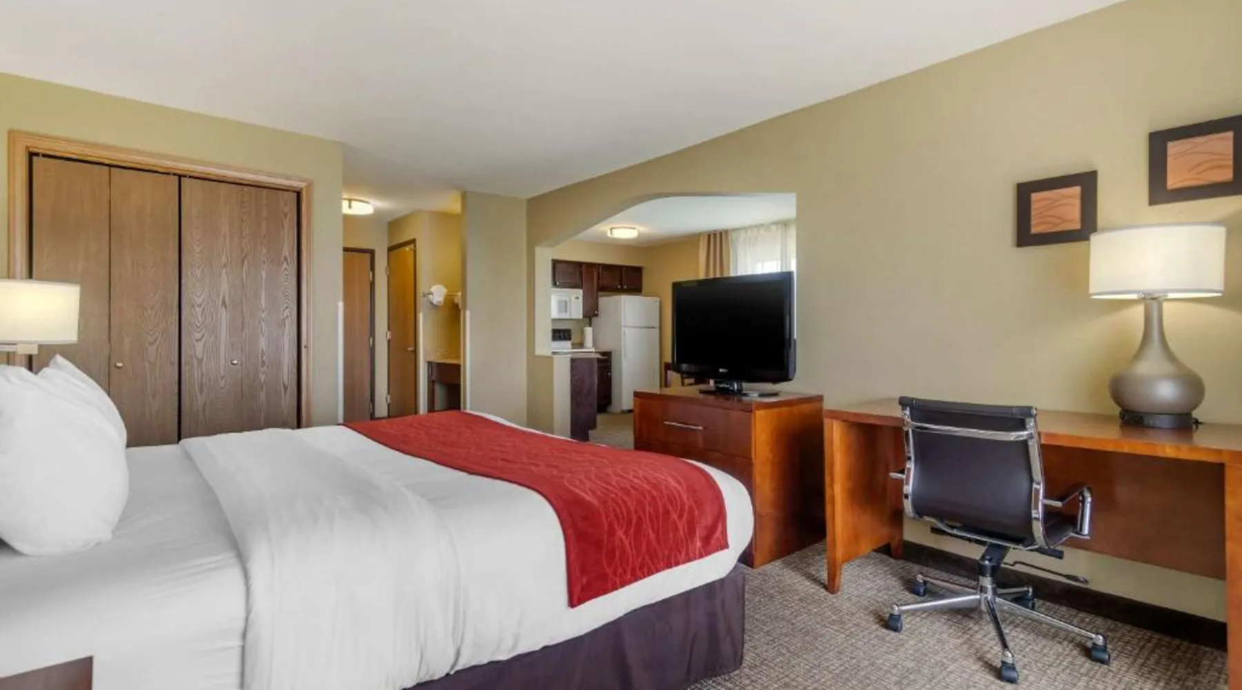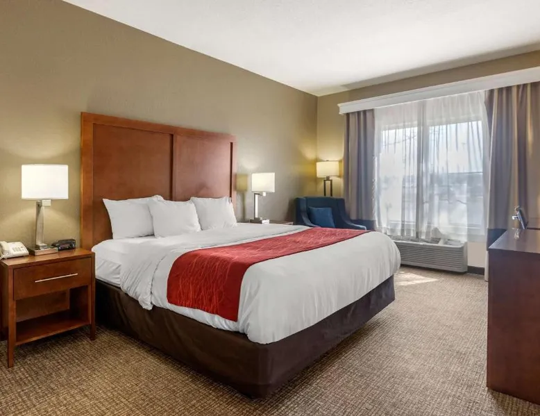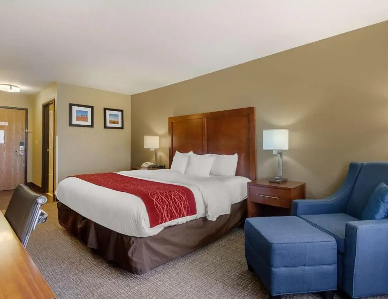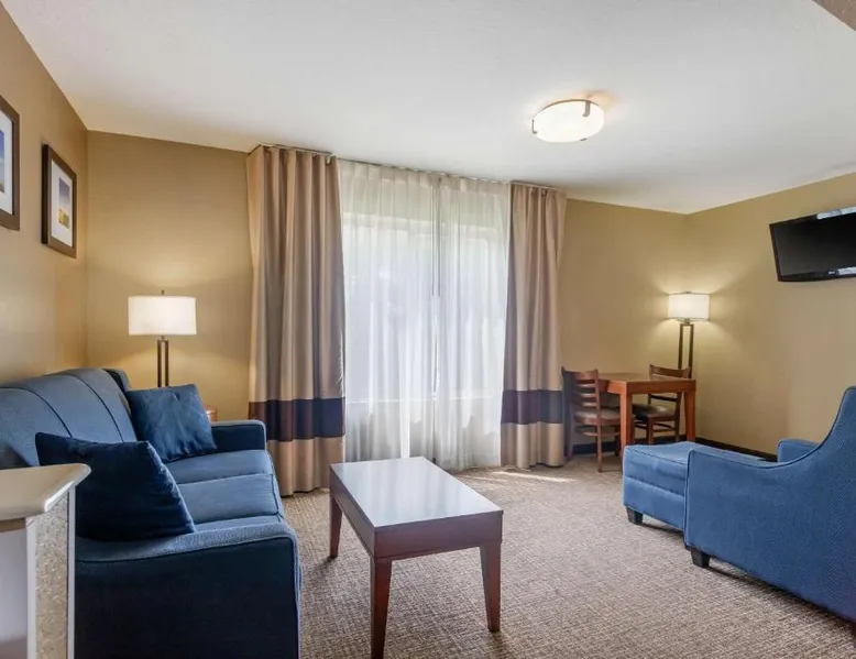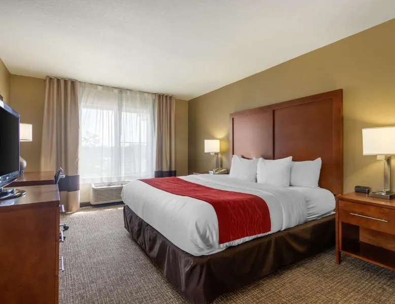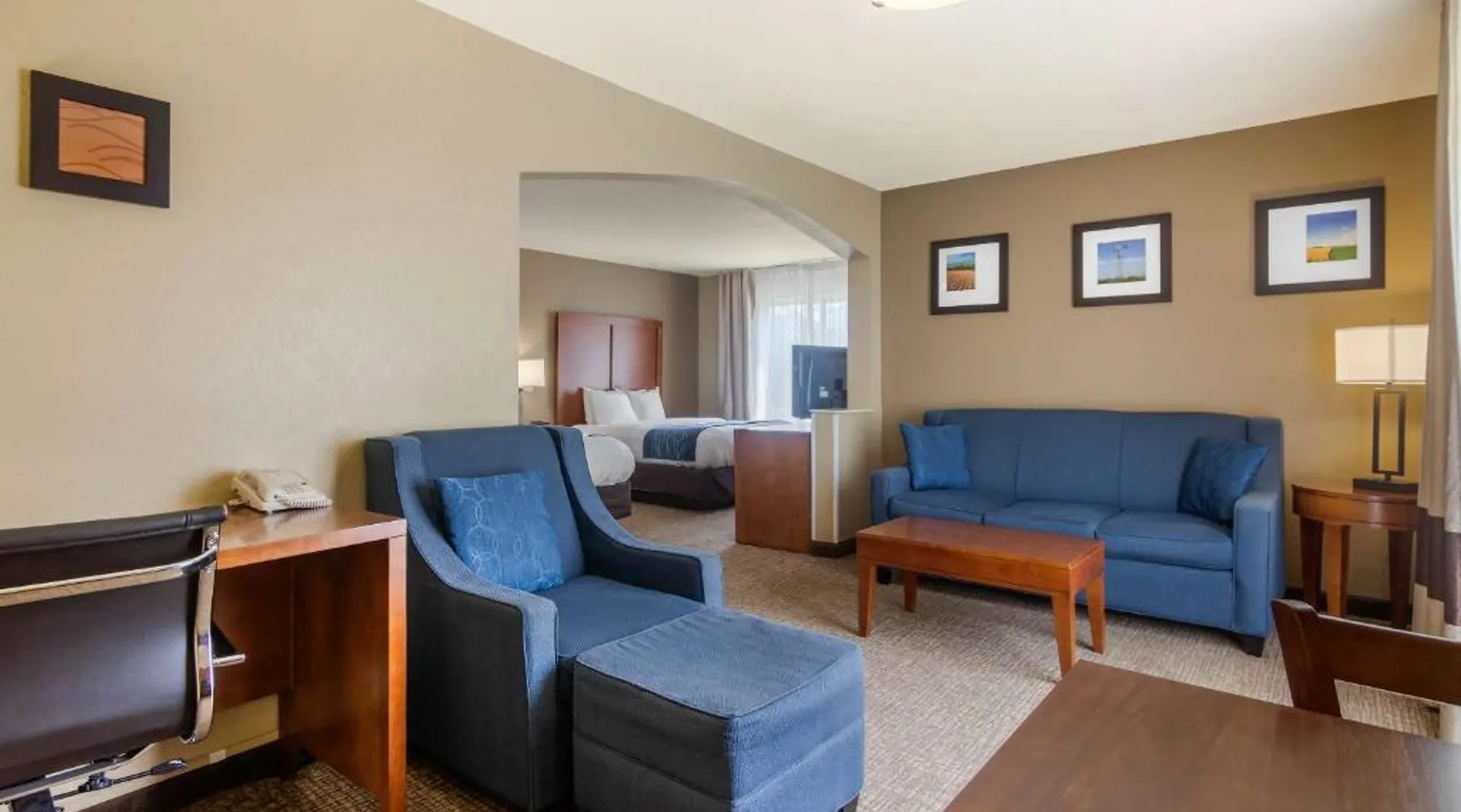 Comfort Inn & Suites Pittsburg KS hotel is located near Four Oaks Golf Course and Pittsburg State University. This Pittsburg, KS hotel is minutes from Fort Scott National Historic Site, the Big Brutus, the Museum of Crawford County and Bone Creek Reservoir. The Pittsburg Memorial Auditorium and Convention Center and Mined Land Wildlife Area are close to the hotel. Several shopping areas are minutes away. A variety of restaurants and cocktail lounges are located in the surrounding area. The city of Pittsburg offers many art and entertainment opportunities for visitors. Each year, the community gathers for special events such as the Fourth of July celebration and Little Balkans Days festival in September. Hotel amenities and features include free wireless high-speed Internet access in all rooms, free local calls and free coffee. Free hot breakfast is also provided. There is also an on-site exercise room. Business travelers can use the business center, access to copy and fax services, desks and voice mail. All guest rooms have hair dryers, coffee makers, irons, ironing boards and cable television. Some rooms come equipped with refrigerators and microwaves. Laundry facility is located on the property for added guest convenience. This is a nonsmoking hotel. Air conditioning, a carpeted floor and heating are provided in this family room. The unit offers 2 beds.