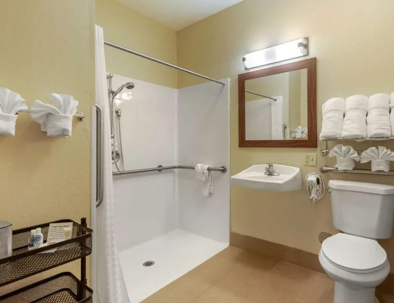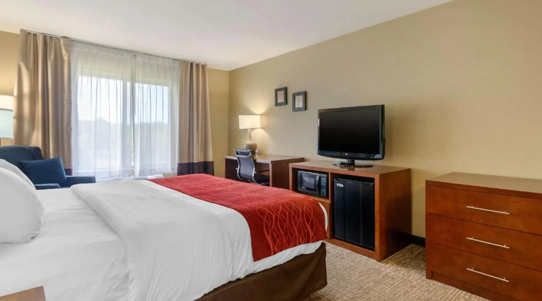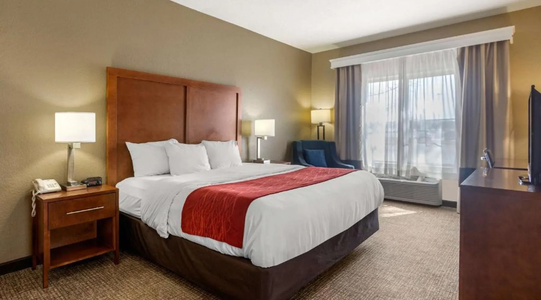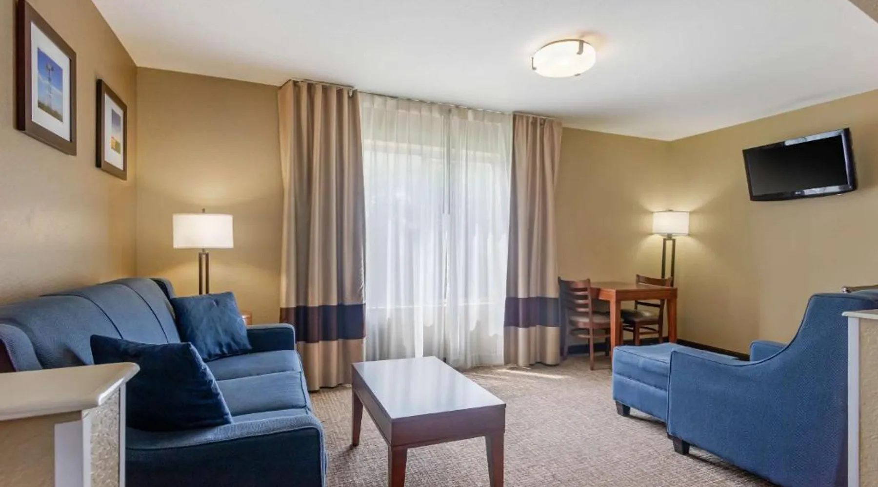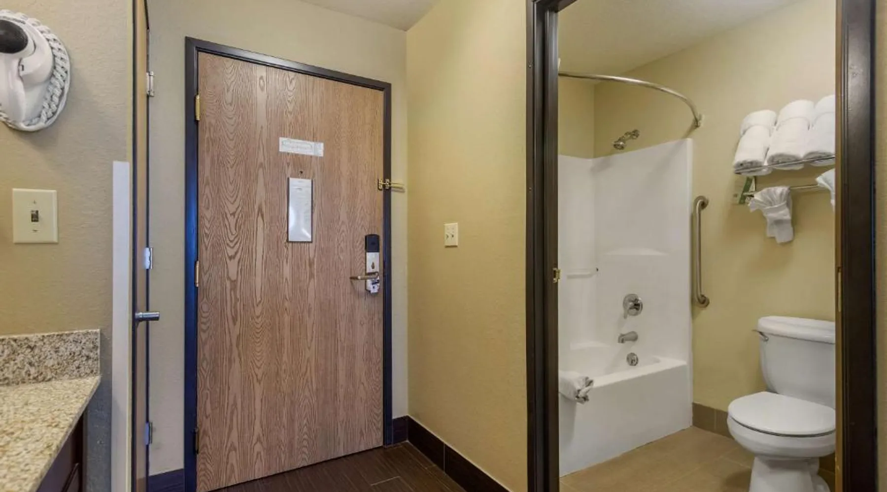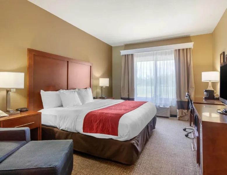 Comfort Inn & Suites Pittsburg KS hotel is located near Four Oaks Golf Course and Pittsburg State University. This Pittsburg, KS hotel is minutes from Fort Scott National Historic Site, the Big Brutus, the Museum of Crawford County and Bone Creek Reservoir. The Pittsburg Memorial Auditorium and Convention Center and Mined Land Wildlife Area are close to the hotel. Several shopping areas are minutes away. A variety of restaurants and cocktail lounges are located in the surrounding area. The city of Pittsburg offers many art and entertainment opportunities for visitors. Each year, the community gathers for special events such as the Fourth of July celebration and Little Balkans Days festival in September. Hotel amenities and features include free wireless high-speed Internet access in all rooms, free local calls and free coffee. Free hot breakfast is also provided. There is also an on-site exercise room. Business travelers can use the business center, access to copy and fax services, desks and voice mail. All guest rooms have hair dryers, coffee makers, irons, ironing boards and cable television. Some rooms come equipped with refrigerators and microwaves. Laundry facility is located on the property for added guest convenience. This is a nonsmoking hotel. Air conditioning, a carpeted floor and heating are provided in this family room. The unit offers 2 beds.