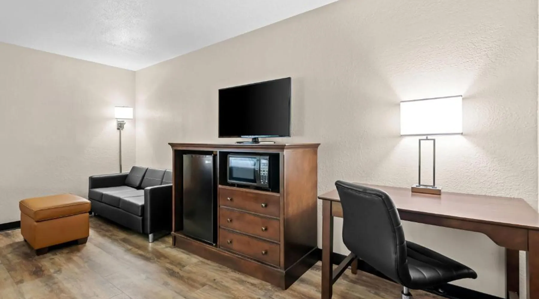 Conveniently located off Interstate 94, this Alexandria motel serves a daily grab and go breakfast . All guest rooms are equipped with cable TV. A microwave and refrigerator are included in every room at Alexandria Super 8. For convenience, tea and coffee-making facilities and a hairdryer are also provided. Free Wi-Fi is available throughout the property at Super 8 Alexandria. Guests can enjoy 24-hour complimentary coffee service and vending machines with drinks and snacks. A business center is located on site. Access to Lake Burgan and the Runestone Museum tourist attraction are just 6 minutes’ drive from this motel. Carlos Creek Winery is 10 miles away. The triple room features air conditioning, a tea and coffee maker, as well as a private bathroom boasting a bath or a shower and a hairdryer. This triple room has a carpeted floor, heating and a TV with cable channels. The unit has 1 bed.