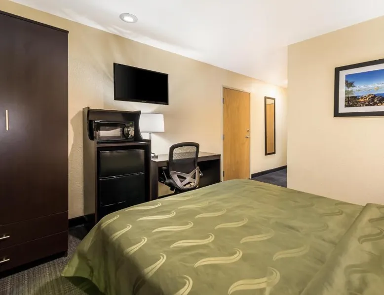 Comfortable Accommodations: Quality Inn & Suites near NAS Fallon in Fallon offers family rooms with air-conditioning, private bathrooms, and modern amenities. Each room includes a work desk, TV, and wardrobe, ensuring a pleasant stay. Exceptional Facilities: Guests enjoy a fitness center and free WiFi throughout the property. Additional facilities include a 24-hour front desk, housekeeping service, luggage storage, and a buffet breakfast with warm dishes, fresh pastries, fruits, and juice. Convenient Location: Located 60 mi from Reno-Tahoe International Airport, the hotel provides easy access to local attractions. Highly rated for its attentive staff, excellent breakfast, and comfortable rooms, Quality Inn & Suites near NAS Fallon is a preferred choice for travelers. This air-conditioned suite includes a flat-screen TV with cable channels and a private bathroom.