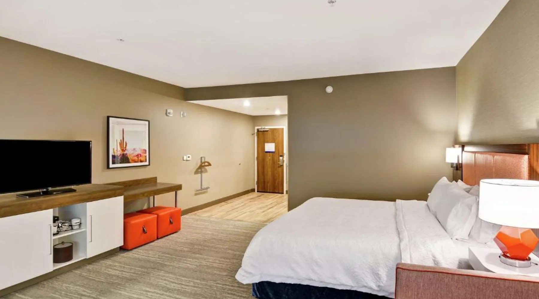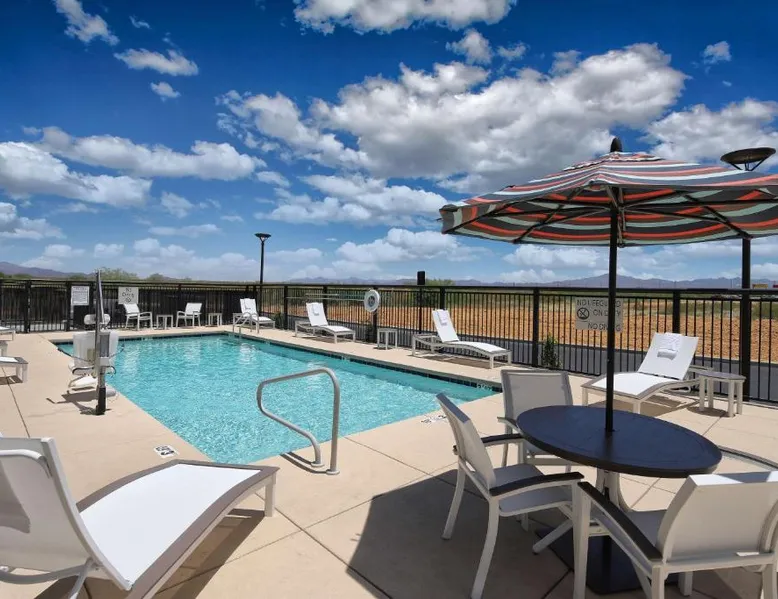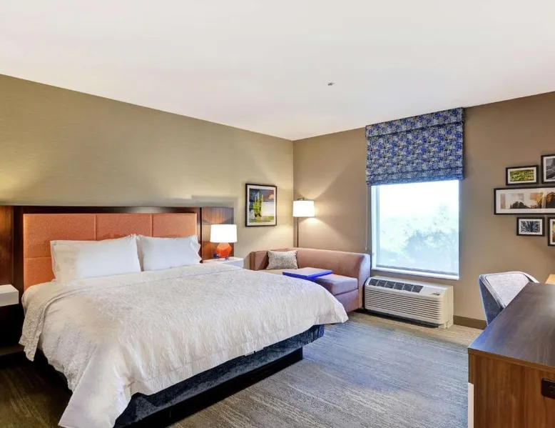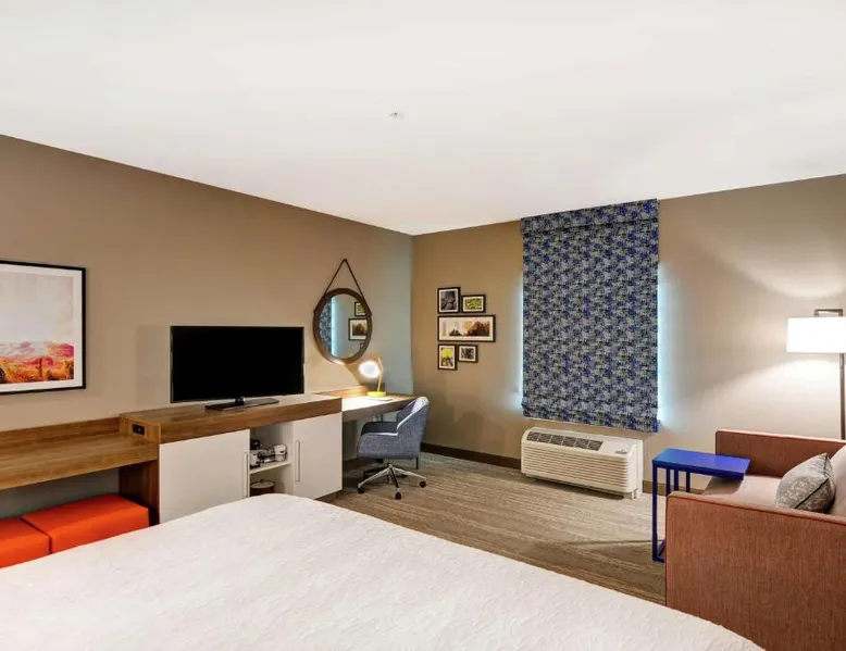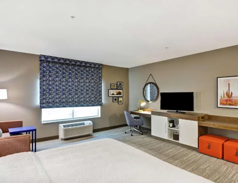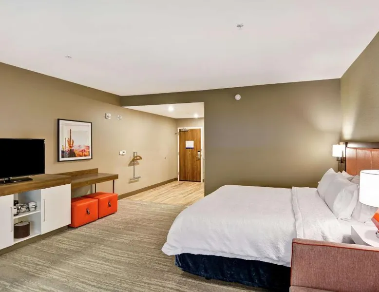 Comfortable Accommodations: Hampton Inn Suites Tucson Tech Park in Tucson offers family rooms with air-conditioning, refrigerators, and free toiletries. Each room includes a work desk, sofa bed, and TV. Exceptional Facilities: Guests enjoy a year-round outdoor swimming pool, fitness room, and free WiFi. Additional amenities include a elevator, 24-hour front desk, bicycle parking, and free on-site private parking. Delicious Breakfast: A complimentary American buffet breakfast is served daily, featuring fresh pastries, fruits, and juices. Prime Location: Located 11 mi from Tucson International Airport, the hotel is a 7-minute walk from Tucson Raceway Park. Nearby attractions include Pima Air Museum (4.3 mi) and Arizona Stadium (15 mi). Highly rated for room cleanliness and excellent service. The spacious double room features air conditioning, a tea and coffee maker, heating and a flat-screen TV with cable channels. The unit has 1 bed.