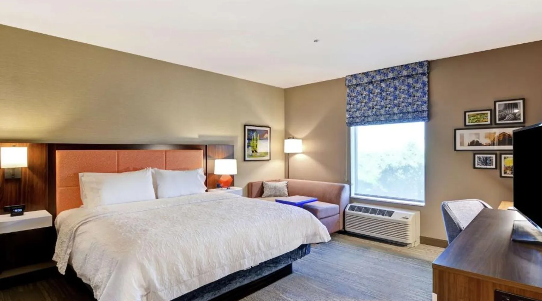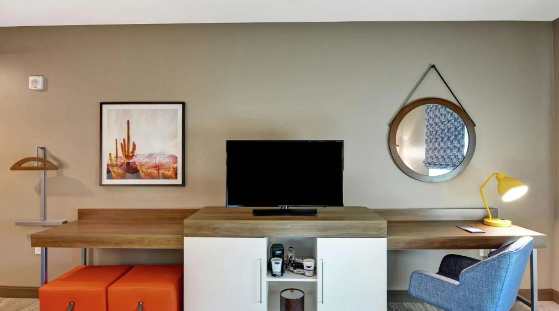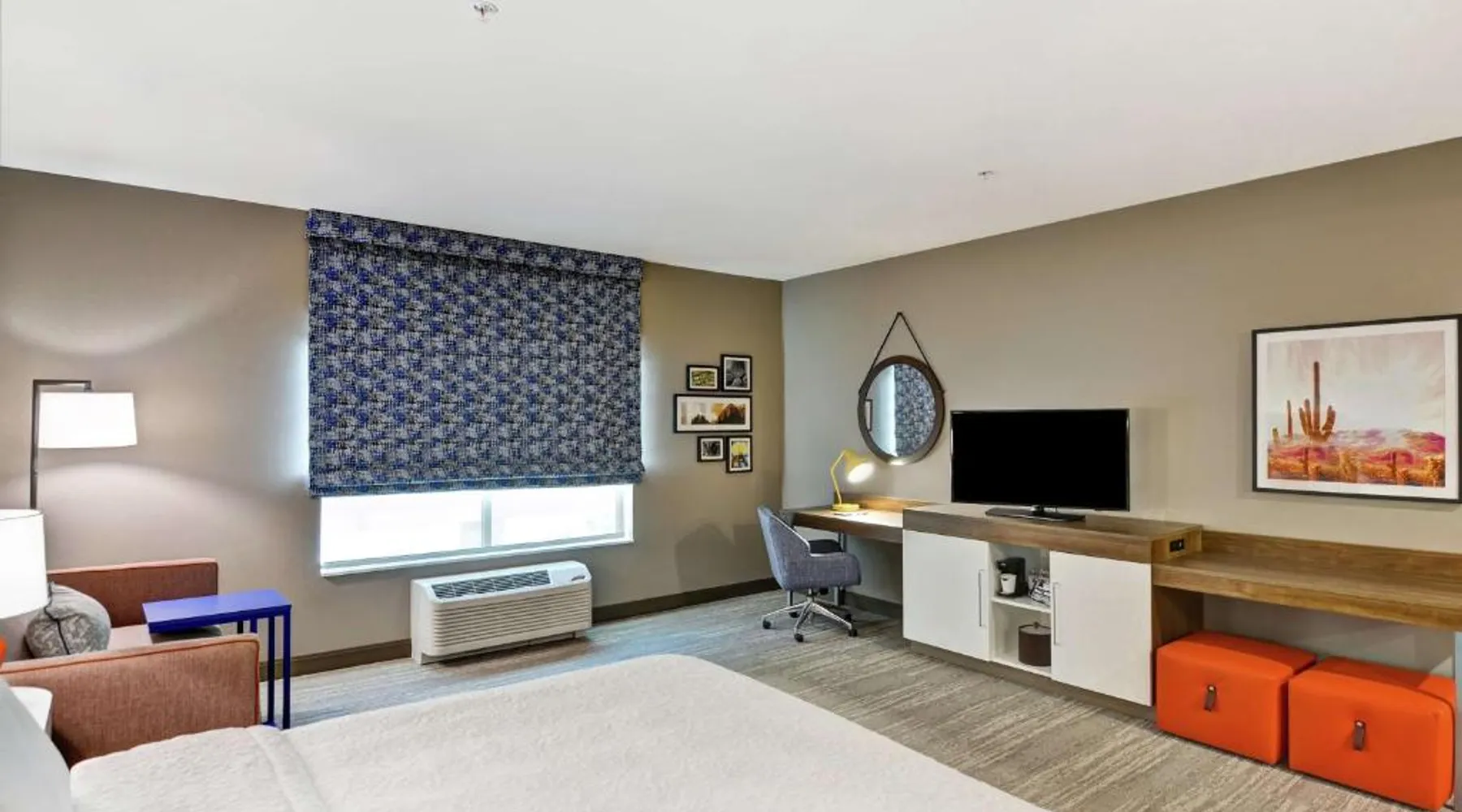 Comfortable Accommodations: Hampton Inn Suites Tucson Tech Park in Tucson offers family rooms with air-conditioning, refrigerators, and free toiletries. Each room includes a work desk, sofa bed, and TV. Exceptional Facilities: Guests enjoy a year-round outdoor swimming pool, fitness room, and free WiFi. Additional amenities include a elevator, 24-hour front desk, bicycle parking, and free on-site private parking. Delicious Breakfast: A complimentary American buffet breakfast is served daily, featuring fresh pastries, fruits, and juices. Prime Location: Located 11 mi from Tucson International Airport, the hotel is a 7-minute walk from Tucson Raceway Park. Nearby attractions include Pima Air Museum (4.3 mi) and Arizona Stadium (15 mi). Highly rated for room cleanliness and excellent service. The spacious double room features air conditioning, a tea and coffee maker, heating and a flat-screen TV with cable channels. The unit has 1 bed.