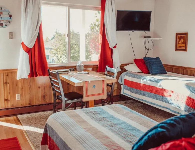 Located in Homer town center, this Alaska hotel is just 6 minutes’ drive away from Homer Spit. Each guest room features free Wi-Fi. A cable TV is featured in every room at Pioneer Inn. Select guest suites offer fully equipped kitchens. All rooms include a microwave, a small refrigerator and a hairdryer. Hiking opportunities are nearby Homer Pioneer Inn. Pratt Museum is 2 minutes’ walk away from Homer Pioneer Inn. Homer Visitor Center is less than 2789 feet away. Halibut fishing, hiking and kayaking opportunities are offered nearby this hotel. Offering free Wi-Fi, this suite features a full equipped kitchen and a dining area, a cable TV and a hairdryer.