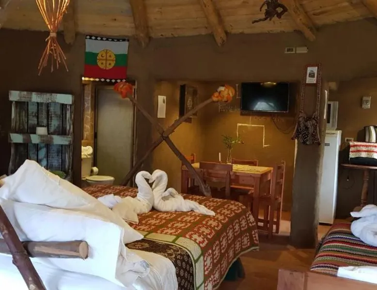 Comfortable Accommodations: Cabañas Rukas Licantén in Licanten offers family rooms with private bathrooms. Each room includes a kitchenette, balcony, and garden or mountain views. Leisure Facilities: Guests can relax in the garden or on the terrace. The property features a games room, children’s playground, and a tour desk. Free WiFi is available throughout. Dining Experience: A continental breakfast with local specialties, juice, pancakes, cheese, and fruits is served in-room. Room service and a picnic area enhance the stay. Convenient Amenities: The holiday home provides free on-site private parking, a washing machine, and a dining table. Additional amenities include a kitchen, microwave, and TV. Guest Satisfaction: Highly rated for its attentive staff and comfortable rooms, Cabañas Rukas Licantén ensures a pleasant stay. Featuring a private entrance, this holiday home also consists of 3 bedrooms, a seating area and 1 bathroom with a shower and a hairdryer. The well-equipped kitchen features a refrigerator, kitchenware, an oven and a microwave. Boasting a terrace with garden views, this holiday home also provides a washing machine and a flat-screen TV with satellite channels. The unit offers 4 beds.