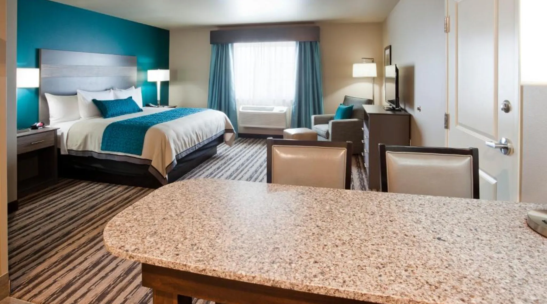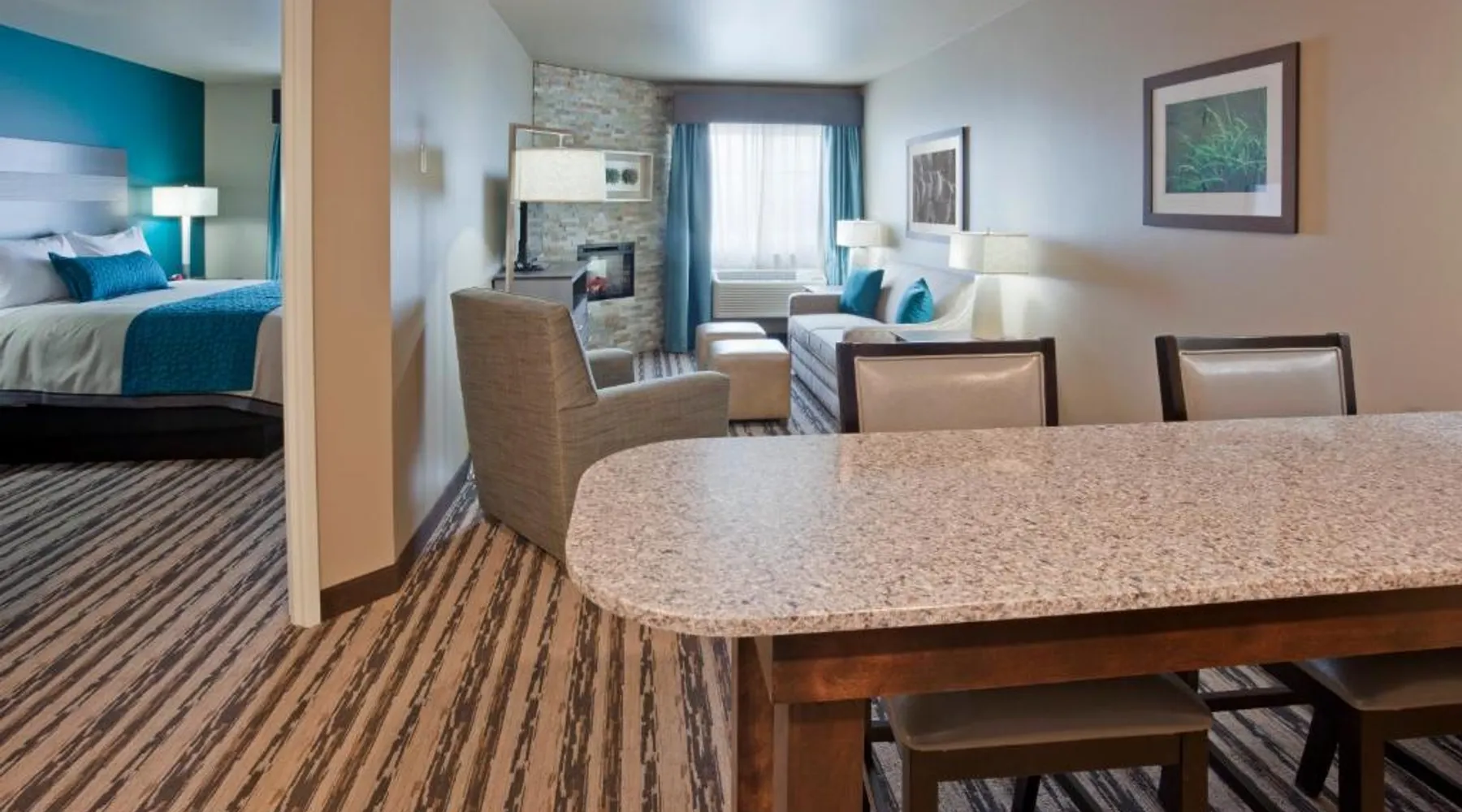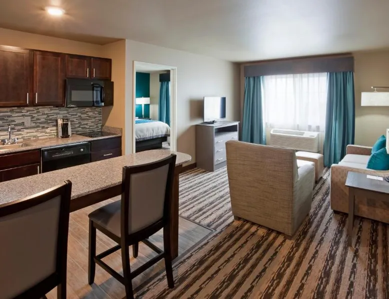 Comfortable Accommodations: GrandStay Hotel & Suites Valley City in Valley City offers family rooms with private bathrooms, kitchenettes, and modern amenities. Each room includes a wardrobe, TV, and work desk. Exceptional Facilities: Guests can enjoy a fitness center, sun terrace, indoor swimming pool, and free WiFi. Additional facilities include a lounge, outdoor fireplace, hot tub, and outdoor seating area. Delicious Breakfast: A continental buffet breakfast is served daily, featuring warm dishes, fresh pastries, cheese, fruits, and juice. Convenient Location: Located 34 mi from Jamestown Regional Airport, the hotel provides free on-site private parking and express check-in and check-out services. Guests appreciate the attentive staff and excellent service support. This suite consists of 1 living room, 1 separate bedroom and 1 bathroom with a shower and a hairdryer. The suite's kitchen is available for cooking and storing food. This suite features a seating area, a wardrobe and a TV. The unit offers 2 beds.