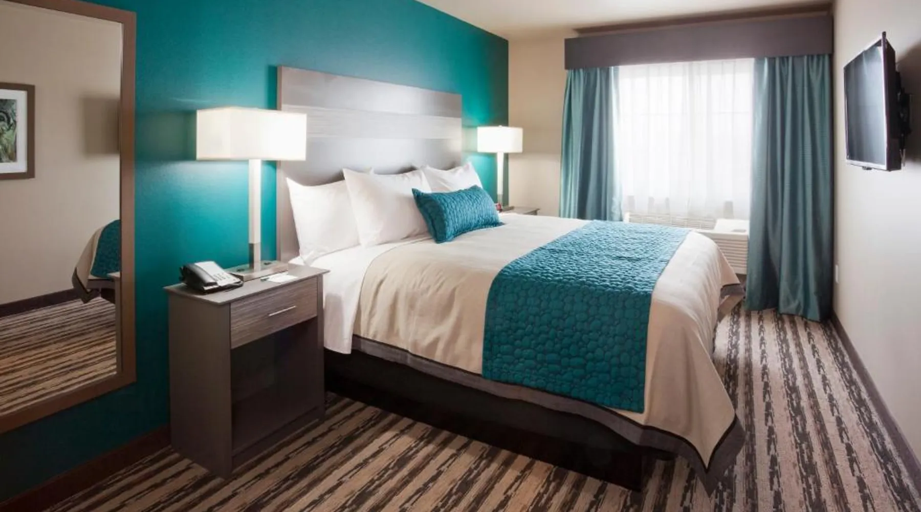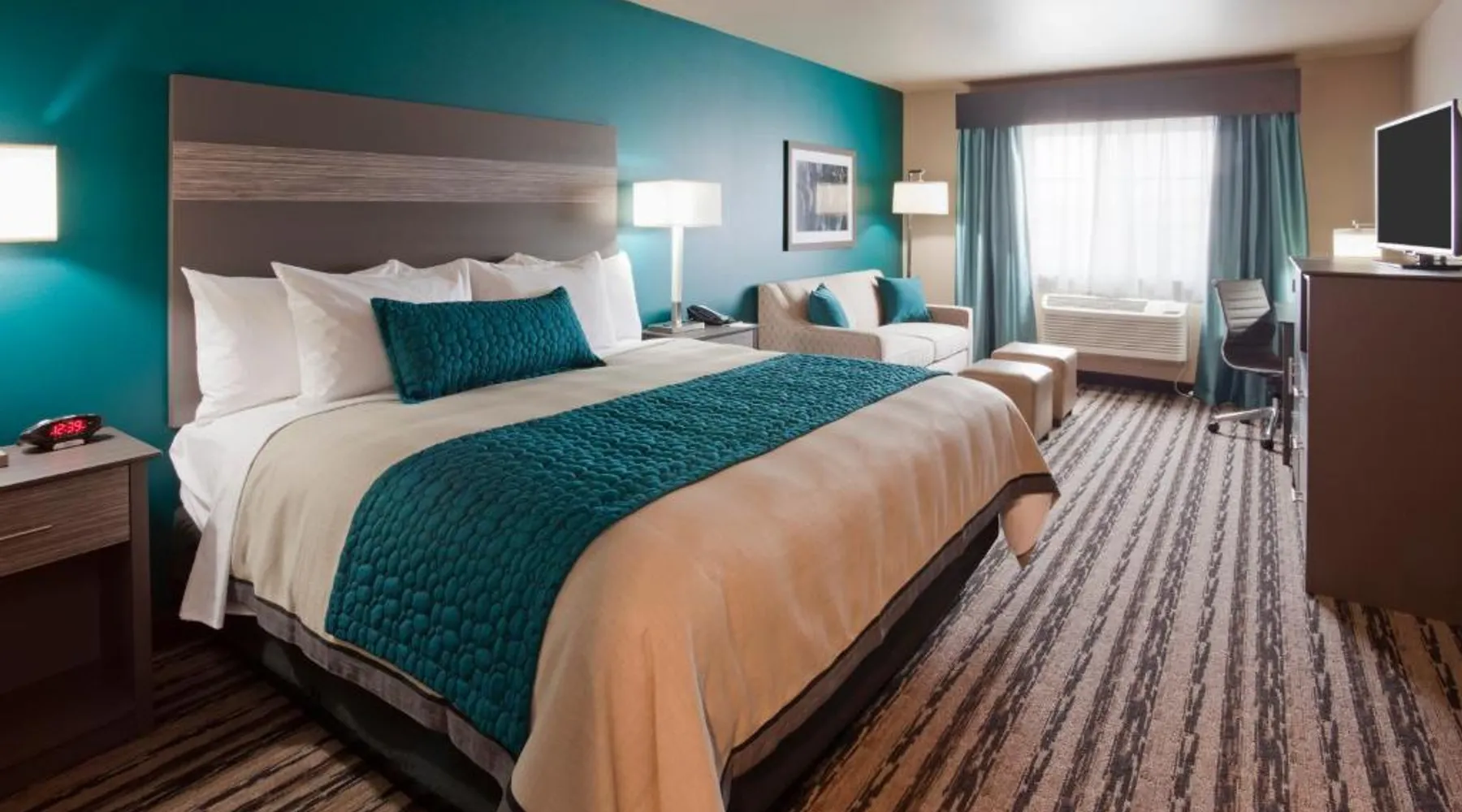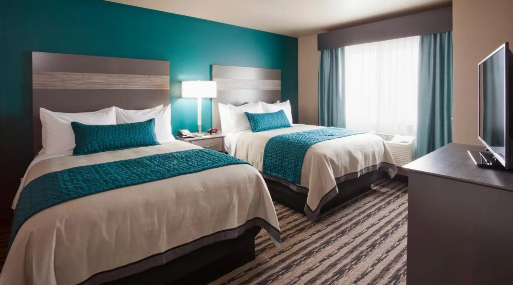 Comfortable Accommodations: GrandStay Hotel & Suites Valley City in Valley City offers family rooms with private bathrooms, kitchenettes, and modern amenities. Each room includes a wardrobe, TV, and work desk. Exceptional Facilities: Guests can enjoy a fitness center, sun terrace, indoor swimming pool, and free WiFi. Additional facilities include a lounge, outdoor fireplace, hot tub, and outdoor seating area. Delicious Breakfast: A continental buffet breakfast is served daily, featuring warm dishes, fresh pastries, cheese, fruits, and juice. Convenient Location: Located 34 mi from Jamestown Regional Airport, the hotel provides free on-site private parking and express check-in and check-out services. Guests appreciate the attentive staff and excellent service support. This suite consists of 1 living room, 1 separate bedroom and 1 bathroom with a shower and a hairdryer. The suite's kitchen is available for cooking and storing food. This suite features a seating area, a wardrobe and a TV. The unit offers 2 beds.