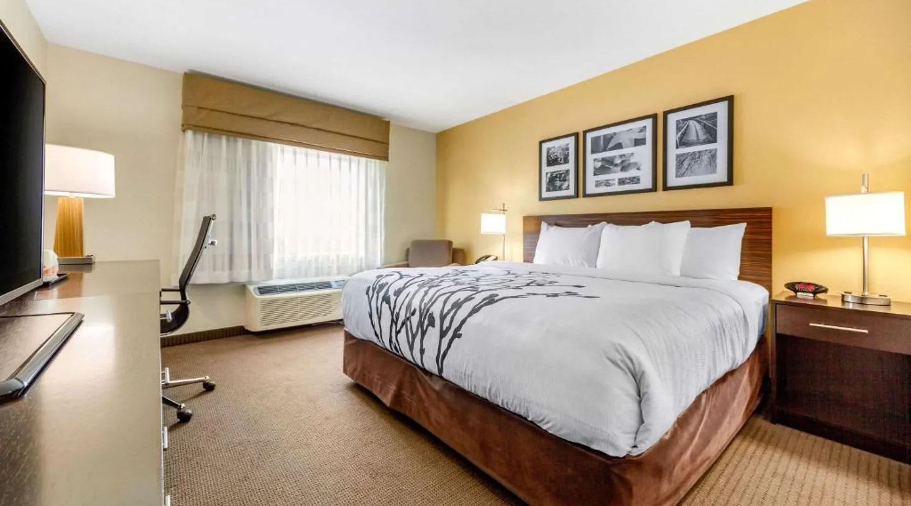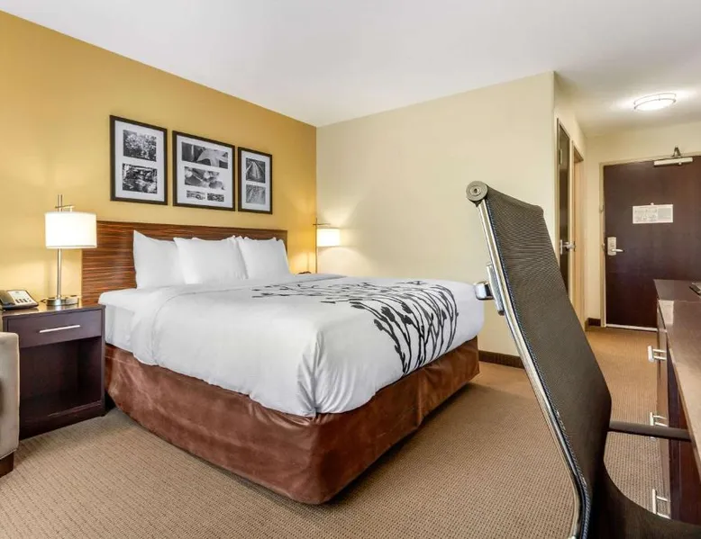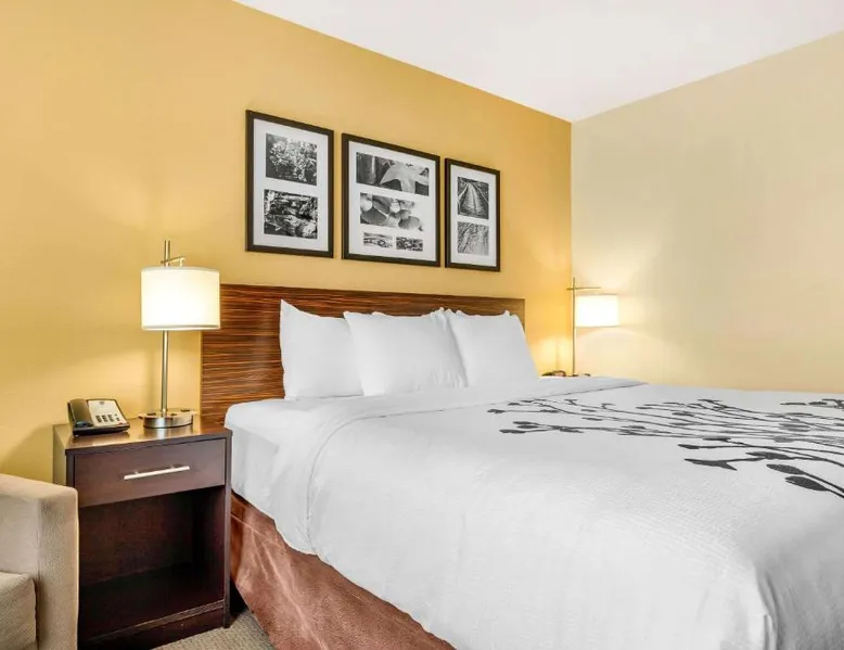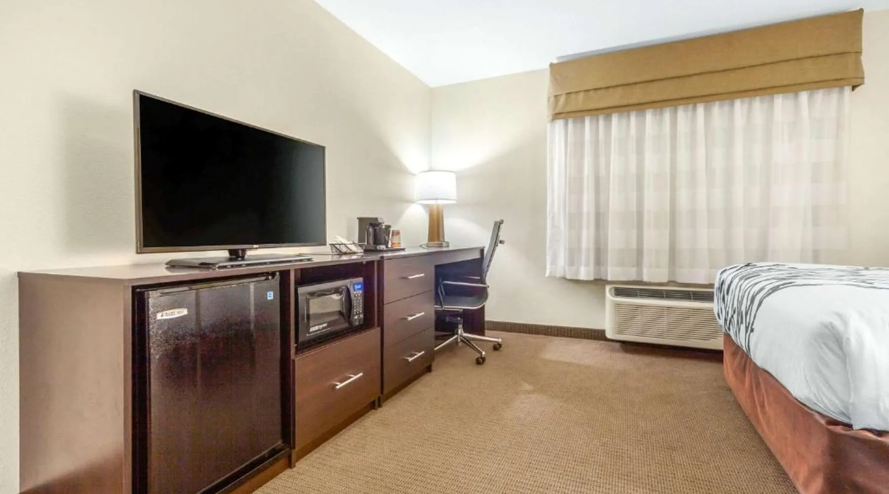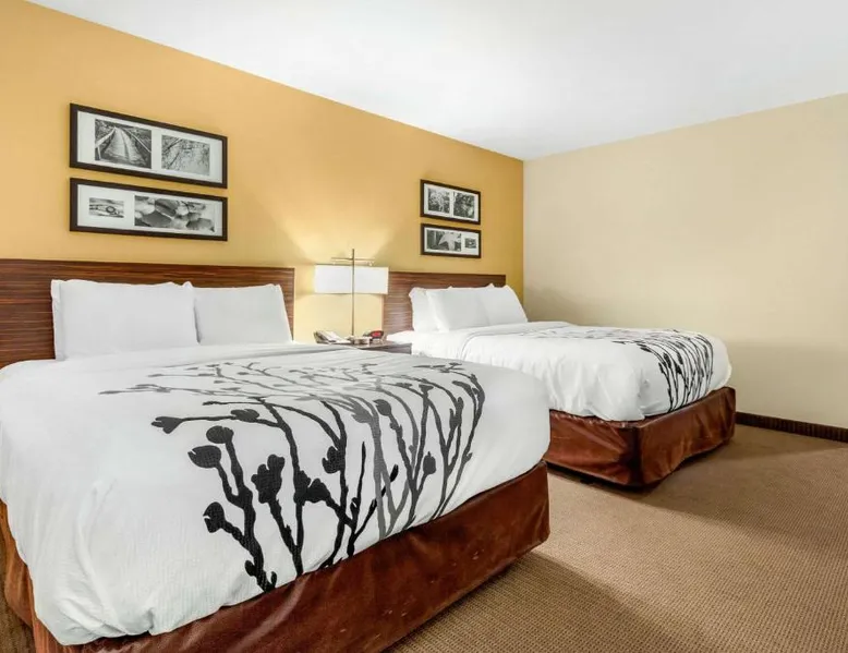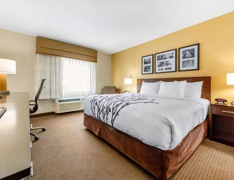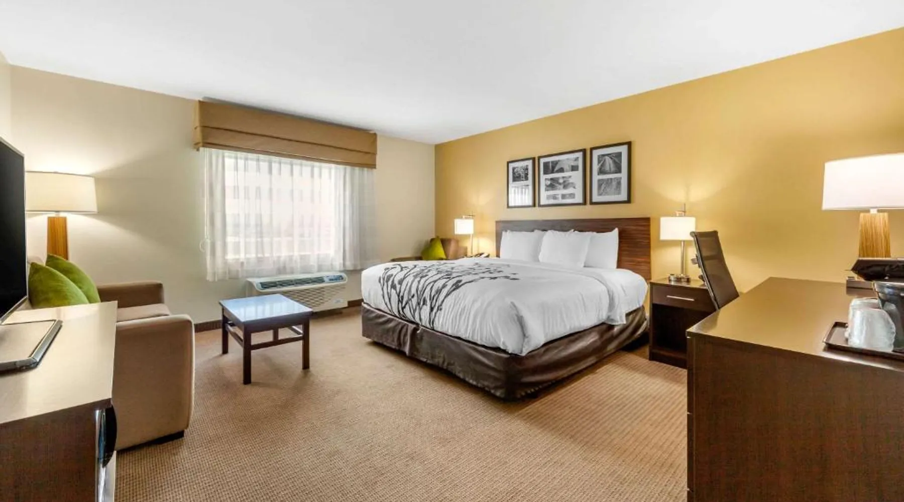 Comfortable Accommodations: Sleep Inn & Suites Lincoln University Area in Lincoln offers comfortable rooms with private bathrooms, tea and coffee makers, and free WiFi. Each room includes a work desk, refrigerator, microwave, and TV. Relaxing Facilities: Guests can enjoy a spa and wellness center, indoor swimming pool, and hot tub. Additional amenities include a elevator, 24-hour front desk, minimarket, and business area. Convenient Location: Located 8.1 mi from Lincoln Airport, the hotel is near attractions such as Lincoln Memorial Stadium (4.3 mi), University of Nebraska State Museum (2.5 mi), and Pinnacle Bank Arena (4.3 mi). Free on-site parking is available. Guest Satisfaction: Highly rated for its attentive staff, excellent breakfast, and immaculate rooms. This suite has a tea and coffee maker, a seating area and a flat-screen TV with cable channels.