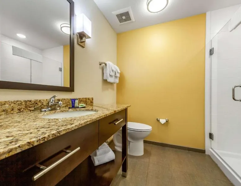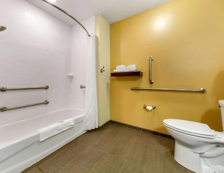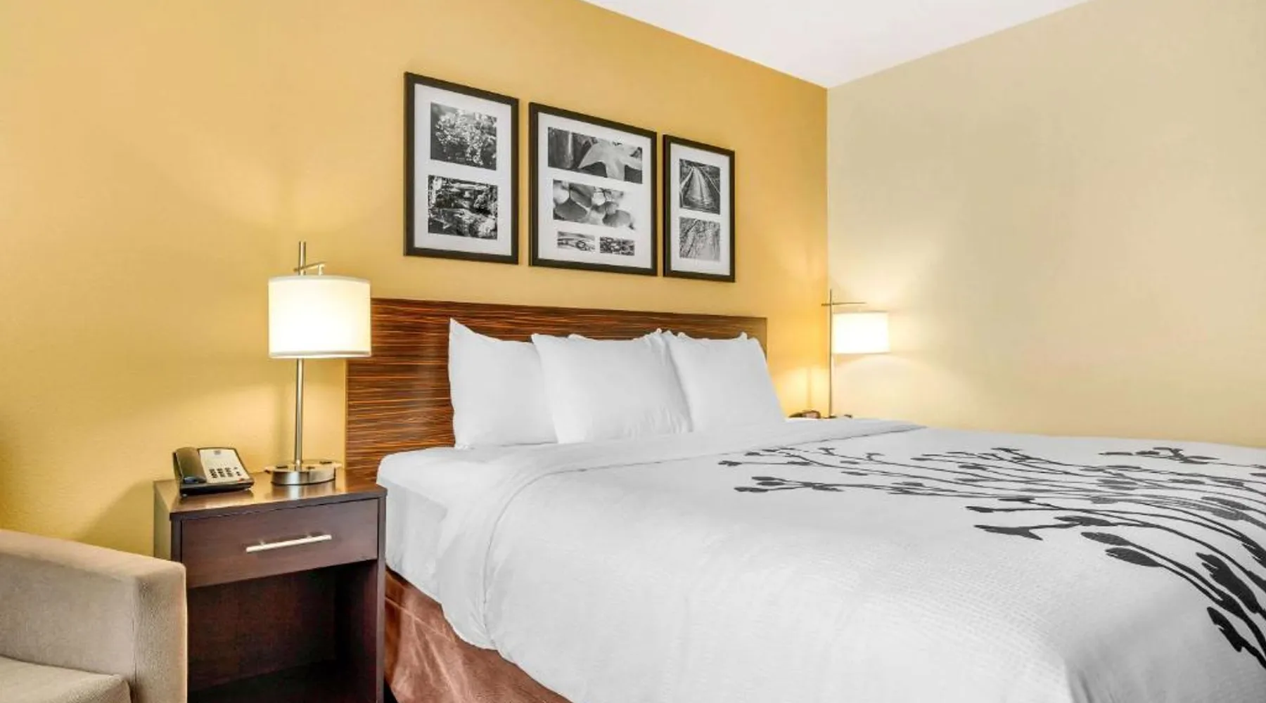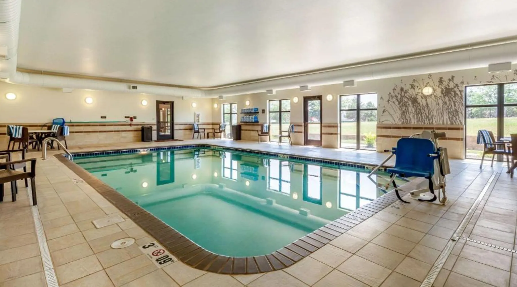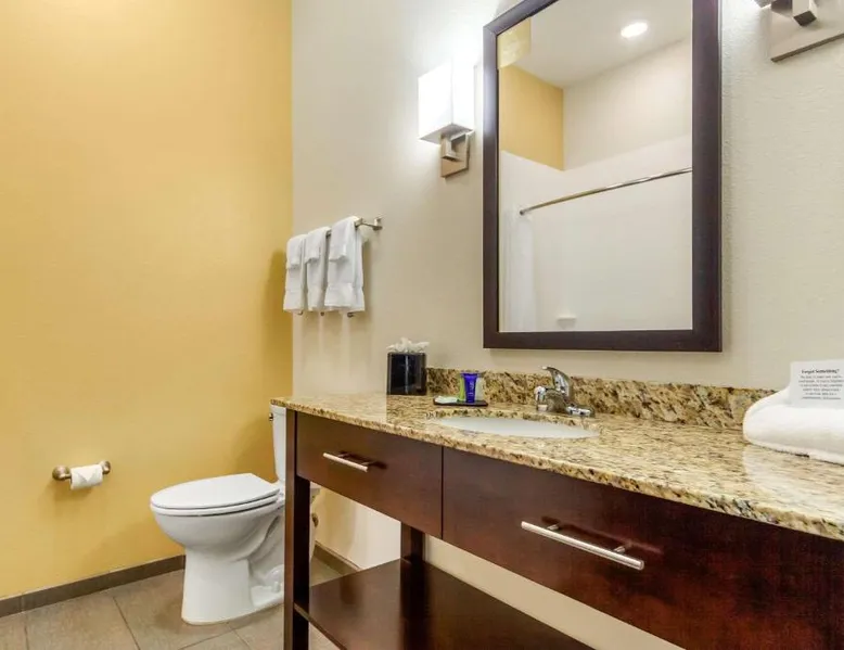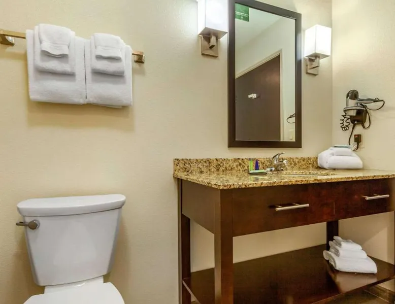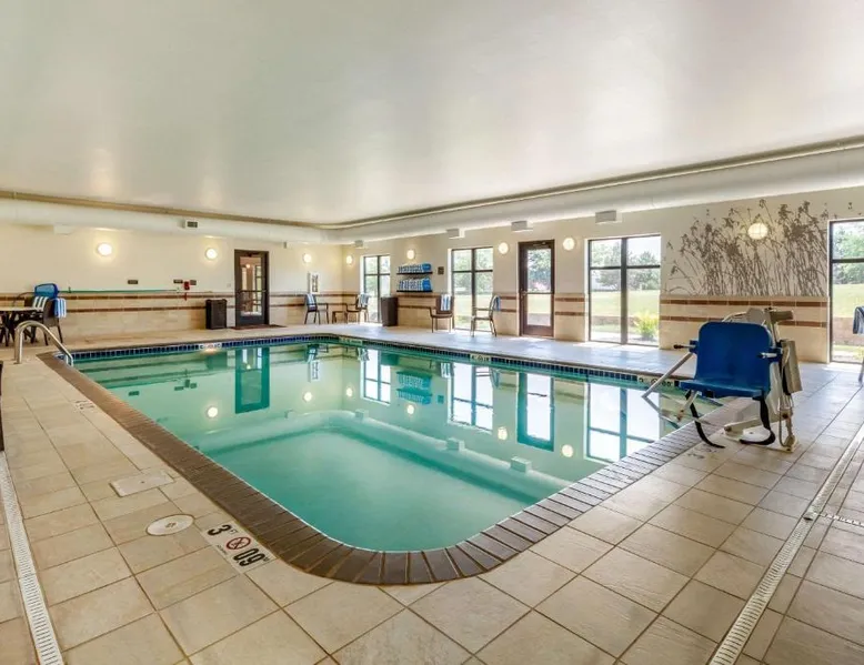 Comfortable Accommodations: Sleep Inn & Suites Lincoln University Area in Lincoln offers comfortable rooms with private bathrooms, tea and coffee makers, and free WiFi. Each room includes a work desk, refrigerator, microwave, and TV. Relaxing Facilities: Guests can enjoy a spa and wellness center, indoor swimming pool, and hot tub. Additional amenities include a elevator, 24-hour front desk, minimarket, and business area. Convenient Location: Located 8.1 mi from Lincoln Airport, the hotel is near attractions such as Lincoln Memorial Stadium (4.3 mi), University of Nebraska State Museum (2.5 mi), and Pinnacle Bank Arena (4.3 mi). Free on-site parking is available. Guest Satisfaction: Highly rated for its attentive staff, excellent breakfast, and immaculate rooms. This suite has a tea and coffee maker, a seating area and a flat-screen TV with cable channels.