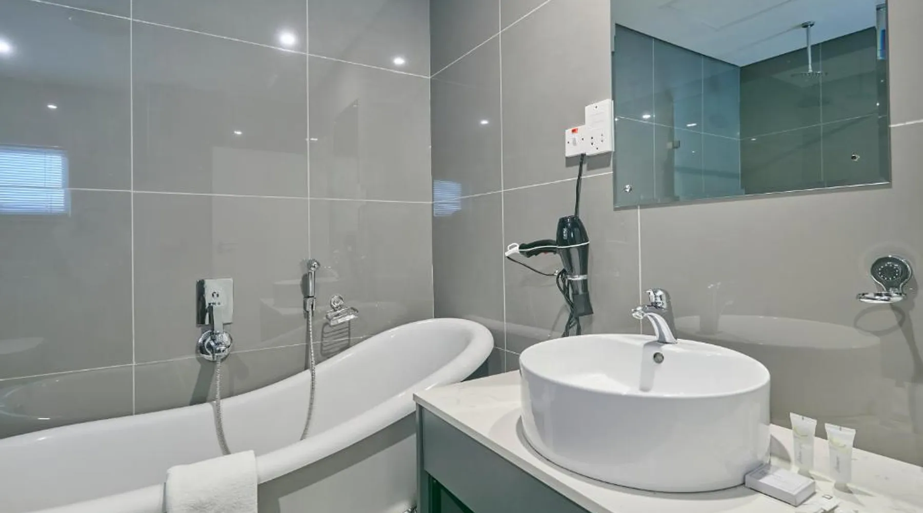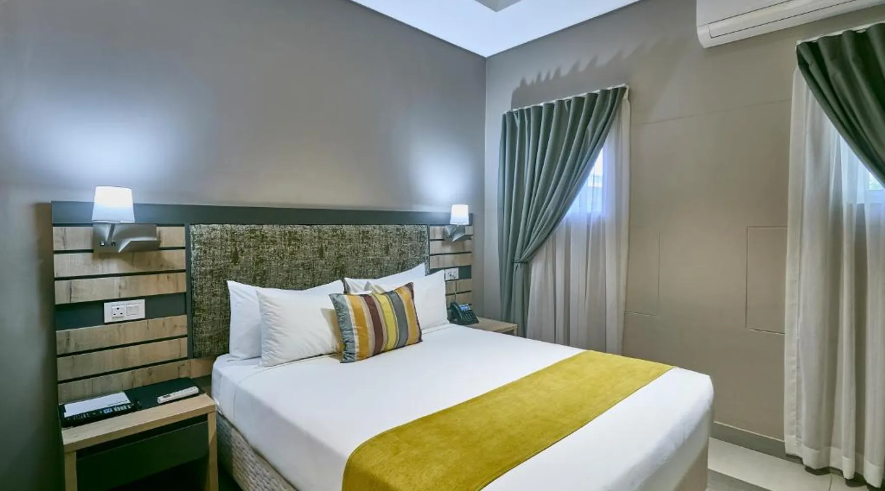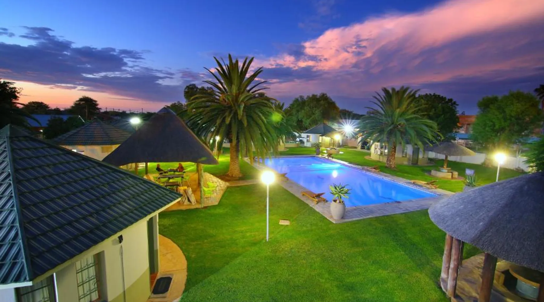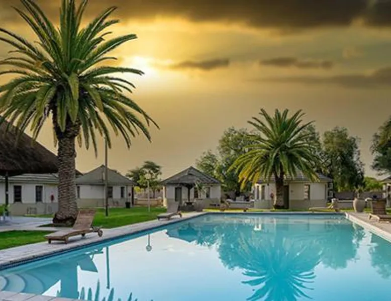 Comfortable Accommodations: Kalahari Arms Hotel in Khemsbok offers family rooms with air-conditioning, private bathrooms, and garden or pool views. Each room includes a work desk, TV, and free WiFi. Exceptional Facilities: Guests can enjoy a swimming pool with a view, a lush garden, and a terrace. The modern restaurant serves African, local, and international cuisines in a family-friendly setting. Additional amenities include a bar, pool bar, outdoor seating area, and barbecue facilities. Convenient Location: Located 24 mi from D'Kar Kuru Bushmen Museum, the hotel provides free on-site private parking and is 25 mi from Khama Rhino Sanctuary. Free WiFi is available throughout the property. Guest Services: The hotel offers a 24-hour front desk, concierge service, housekeeping, room service, and full-day security. Guests appreciate the attentive staff and excellent breakfast. The family room has a private bathroom fitted with a shower and a hairdryer. The air-conditioned family room features a flat-screen TV with satellite channels, a private entrance, a wardrobe, an electric kettle as well as garden views. The unit has 2 beds.