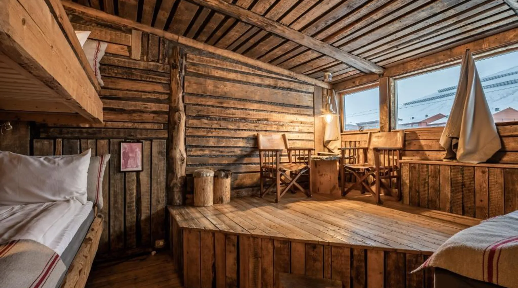 Centrally located in Longyearbyen, Basecamp Hotel is a traditional trapper's lodge-style property just 15 minutes’ drive from Longyearbyen Airport. The airport bus stops right outside. The hotel offers individually decorated rooms with driftwood furniture, fur rugs and free WiFi. Guests can enjoy a drink in the hotel pub, borrow a book in the lobby and soak in the atmosphere of staying in the Arctic Circle. The Cognac Attic has a TV and a glass ceiling, which allows guests to view the famous midnight sun or Northern Lights from the comfort of the hotel. The rooms are decorated in traditional trapper style with driftwood, sealskin and slate. The room is set up with 2 single beds. All rooms have private bathrooms. A double bed can be requested upon availability.