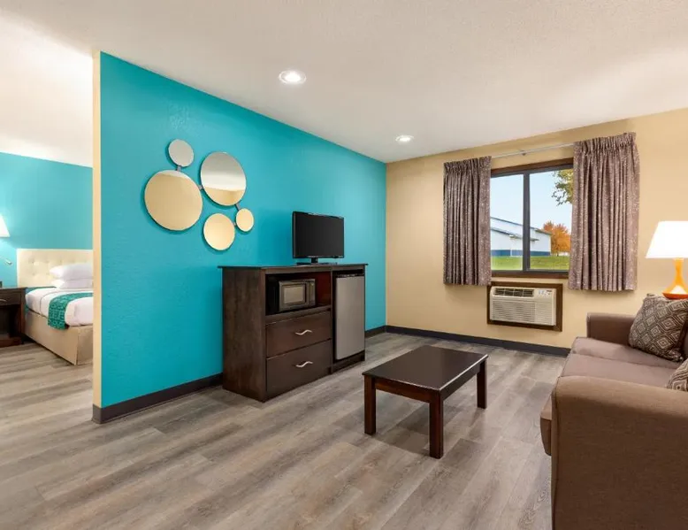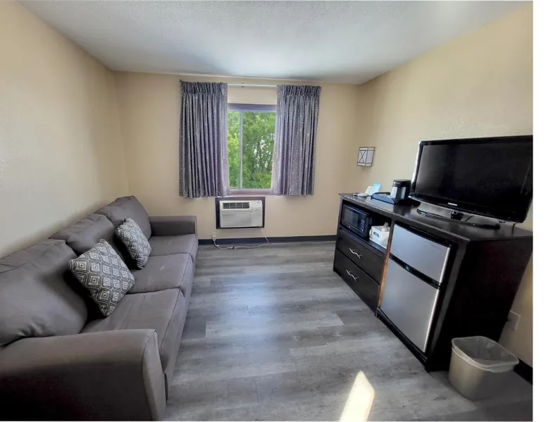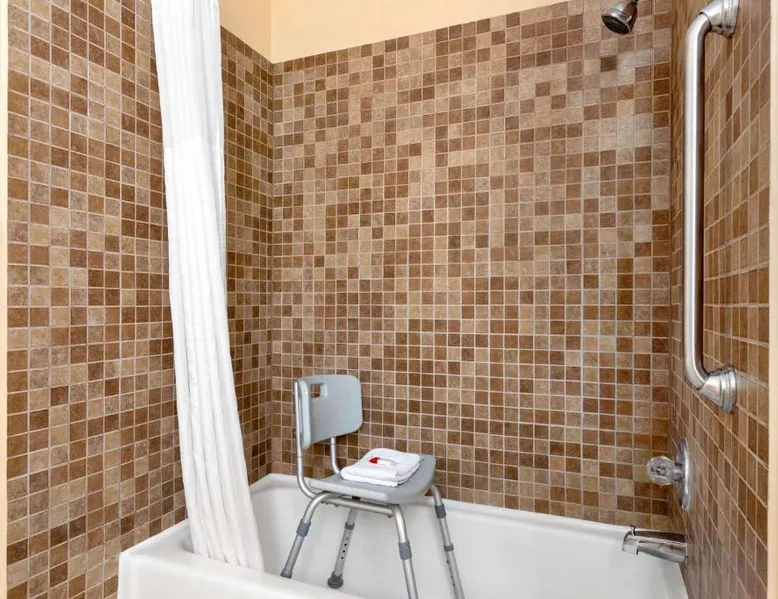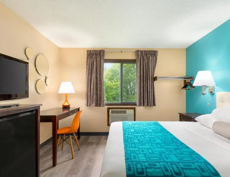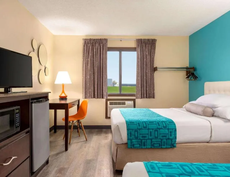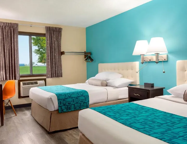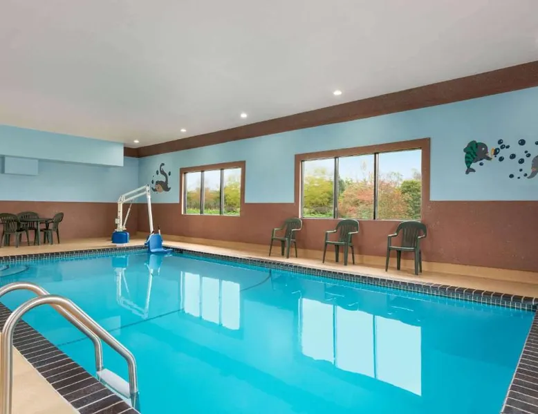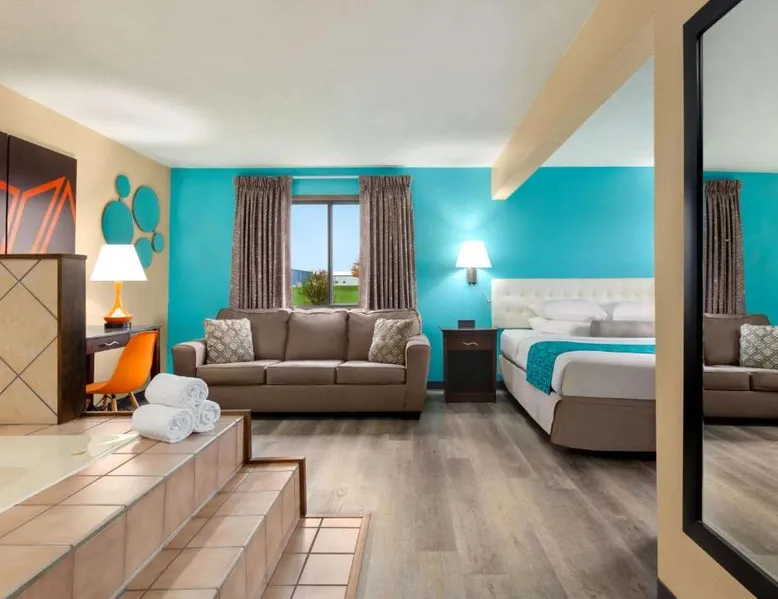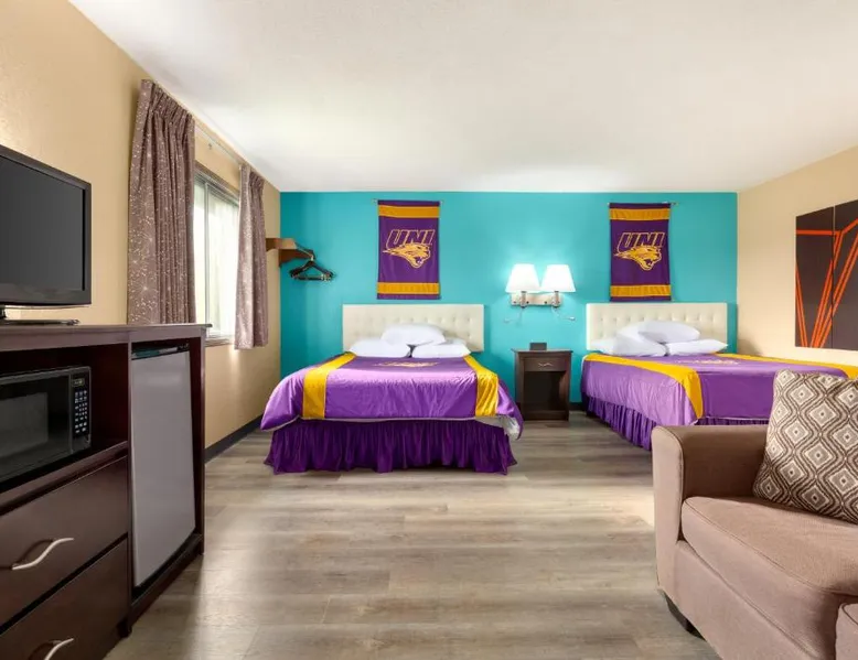 Comfortable Accommodations: Howard Johnson by Wyndham Waterloo/Cedar Falls in Waterloo offers family rooms with air-conditioning, private bathrooms, and free WiFi. Each room includes a tea and coffee maker, hairdryer, and free toiletries. Leisure Facilities: Guests can enjoy an indoor swimming pool, hot tub, and ground-floor units with sofa beds. Additional amenities include a work desk, microwave, and TV. Convenient Services: The hotel provides a 24-hour front desk, daily housekeeping, and a business area. Free on-site parking is available. Local Attractions: Located 6.8 mi from Waterloo Regional Airport and Gallagher Bluedorn Performing Arts Center. The spacious double room provides air conditioning, a tea and coffee maker, as well as a private bathroom featuring a bath and a shower. The double room features a seating area, a wardrobe, a carpeted floor, heating, as well as a flat-screen TV with cable channels. The unit offers 1 bed.