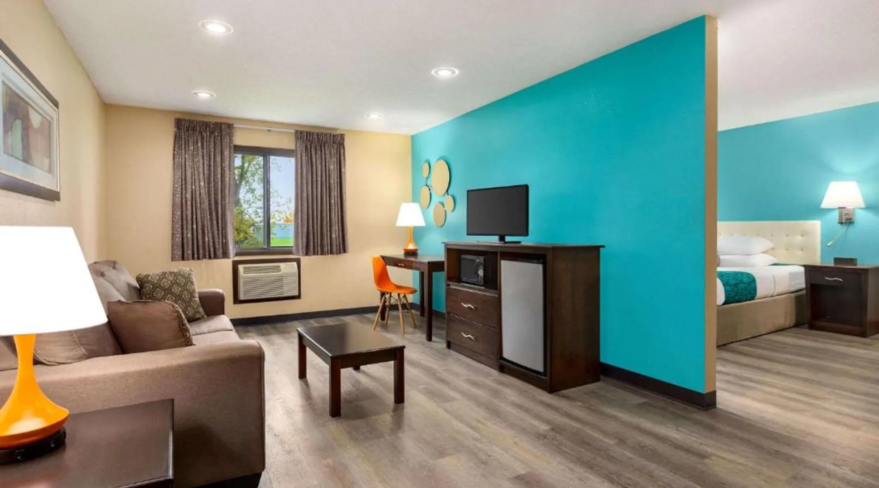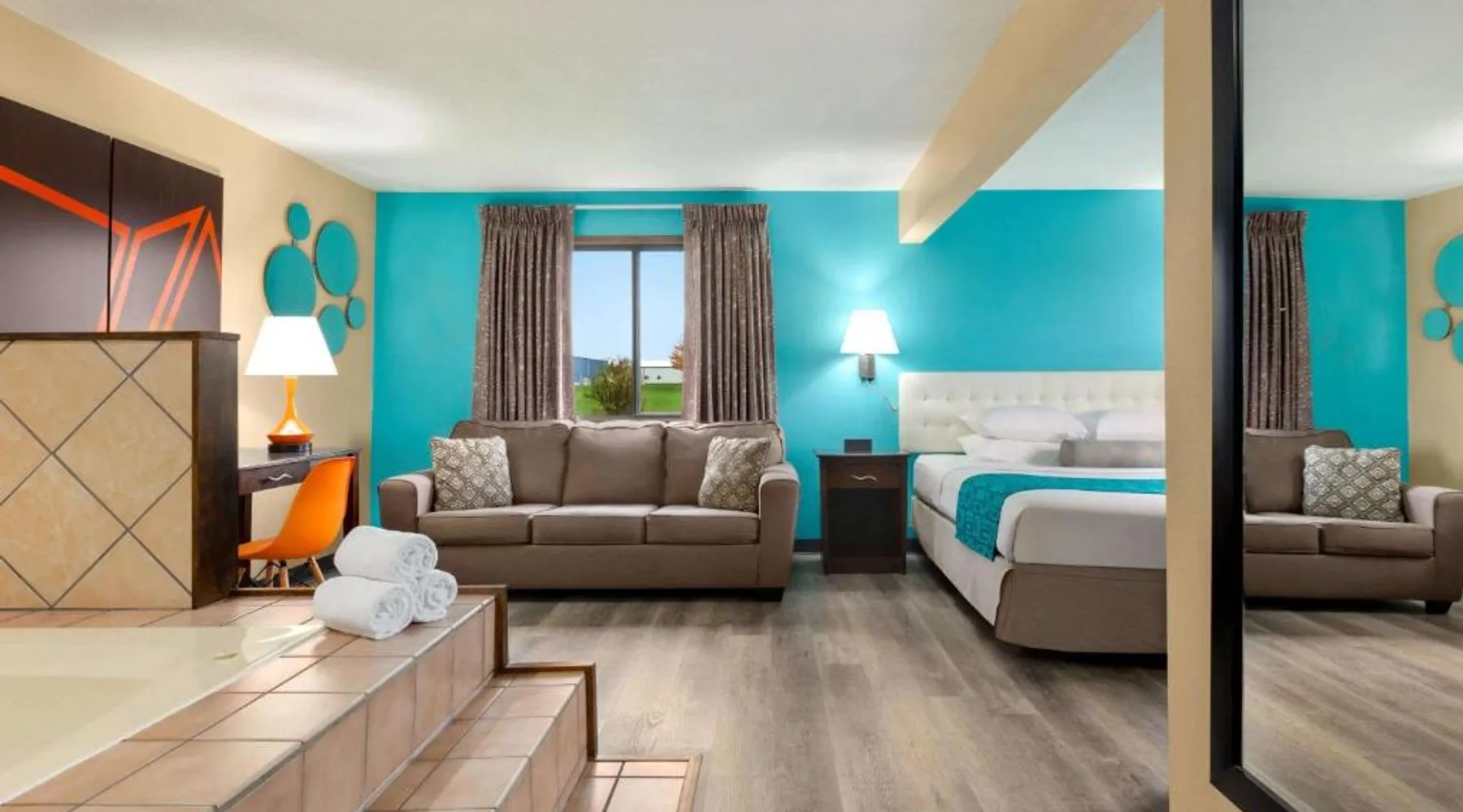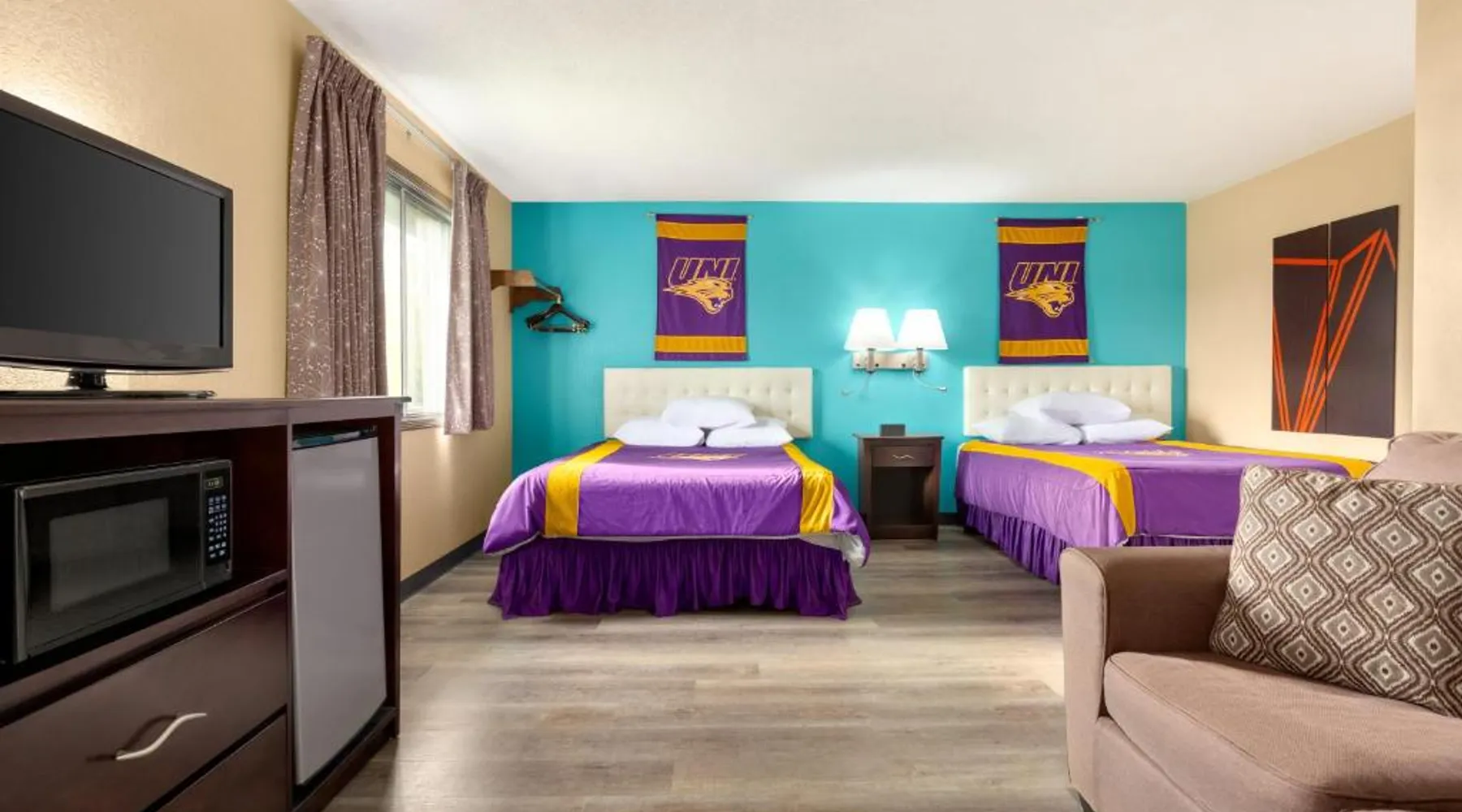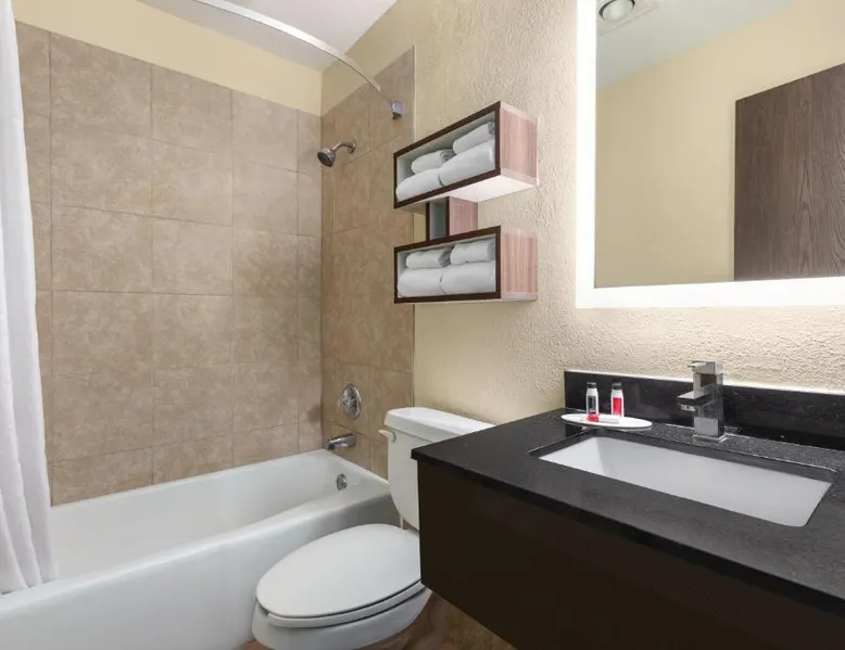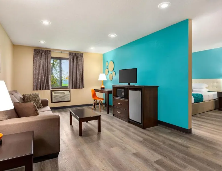 Comfortable Accommodations: Howard Johnson by Wyndham Waterloo/Cedar Falls in Waterloo offers family rooms with air-conditioning, private bathrooms, and free WiFi. Each room includes a tea and coffee maker, hairdryer, and free toiletries. Leisure Facilities: Guests can enjoy an indoor swimming pool, hot tub, and ground-floor units with sofa beds. Additional amenities include a work desk, microwave, and TV. Convenient Services: The hotel provides a 24-hour front desk, daily housekeeping, and a business area. Free on-site parking is available. Local Attractions: Located 6.8 mi from Waterloo Regional Airport and Gallagher Bluedorn Performing Arts Center. The spacious double room provides air conditioning, a tea and coffee maker, as well as a private bathroom featuring a bath and a shower. The double room features a seating area, a wardrobe, a carpeted floor, heating, as well as a flat-screen TV with cable channels. The unit offers 1 bed.
