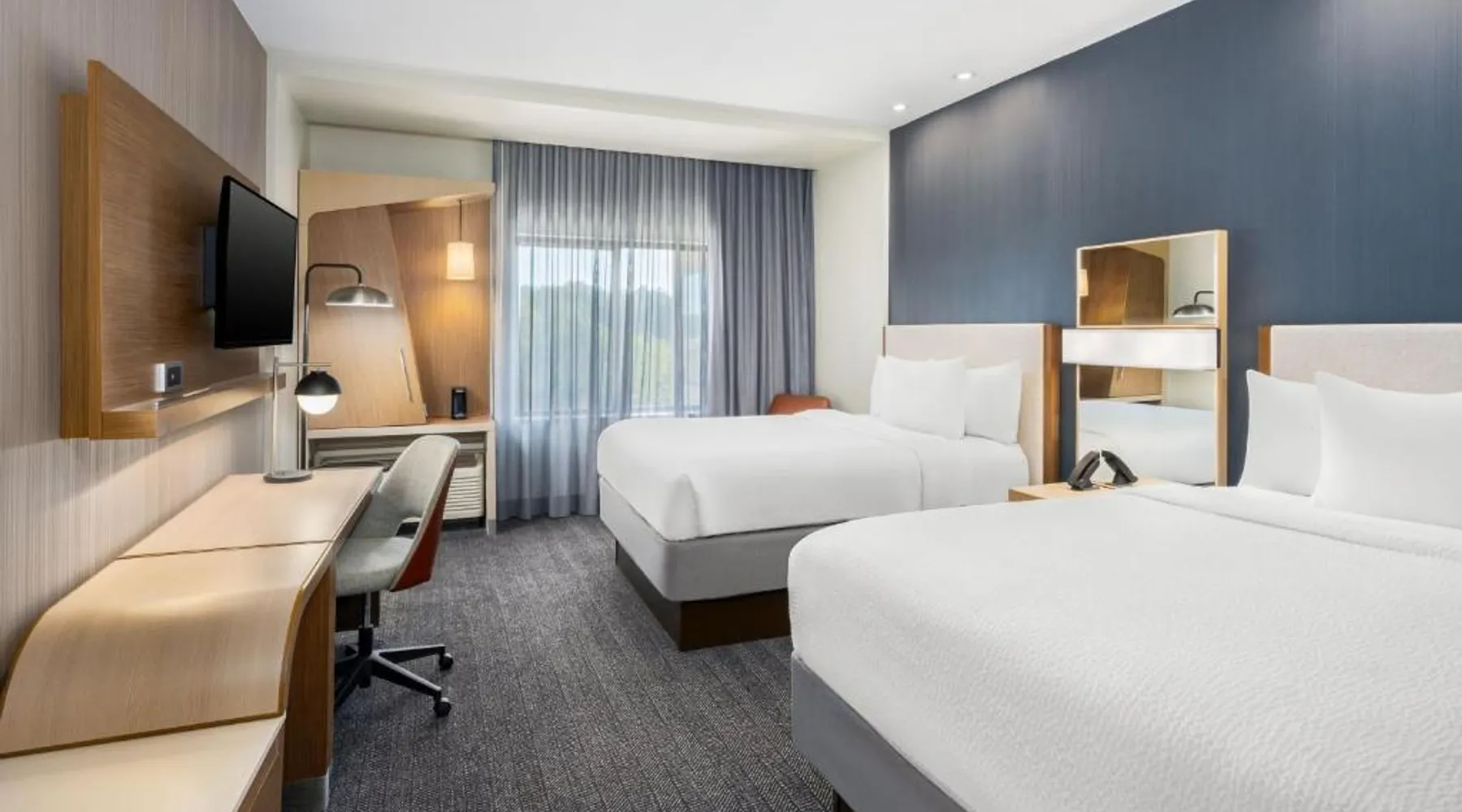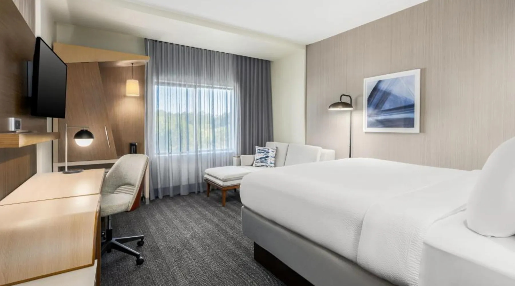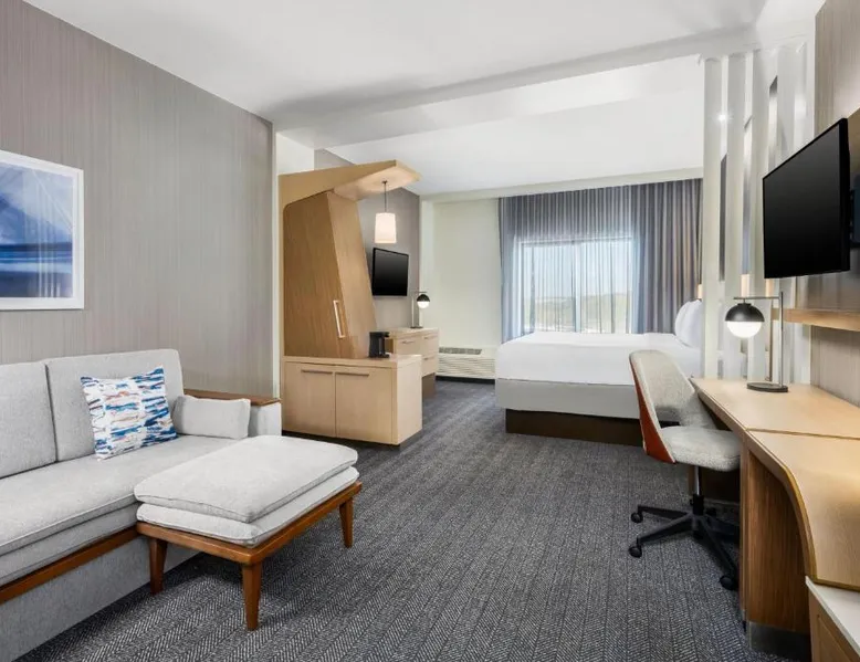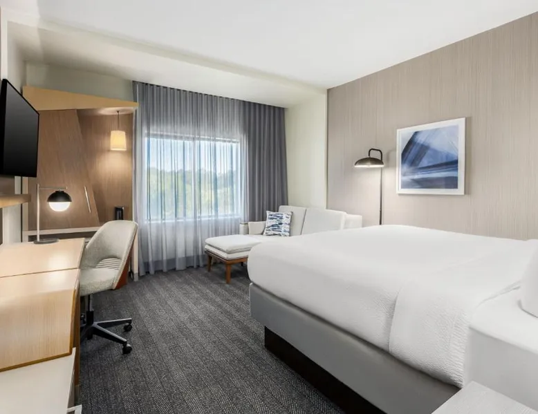Comfortable Accommodations: Courtyard by Marriott Auburn in Auburn offers air-conditioned rooms with private bathrooms, coffee machines, refrigerators, work desks, and TVs. Each room includes a bath or shower and a seating area. Exceptional Facilities: Guests can enjoy a fitness center, sun terrace, outdoor swimming pool, and free WiFi. Additional amenities include a bar, outdoor fireplace, lounge, business area, and free on-site parking. Convenient Location: Located 40 mi from Columbus Airport, the hotel is near Auburn University (3.7 mi), Jordan Hare Stadium (4.3 mi), and Toomers Corner (4.3 mi). Other attractions include the Jule Collins Smith Museum of Fine Art (3.1 mi) and Tuskegee Airmen Museum (15 mi). This nonsmoking room is air conditioned and includes a seating area.
