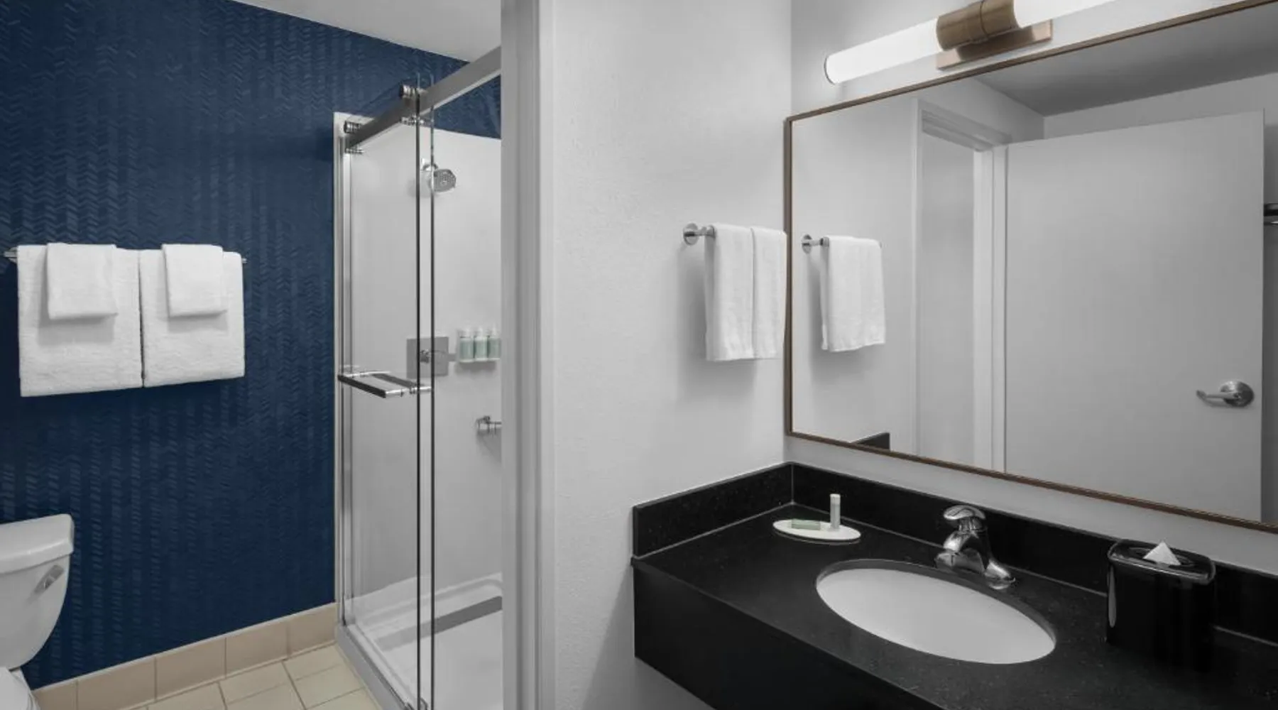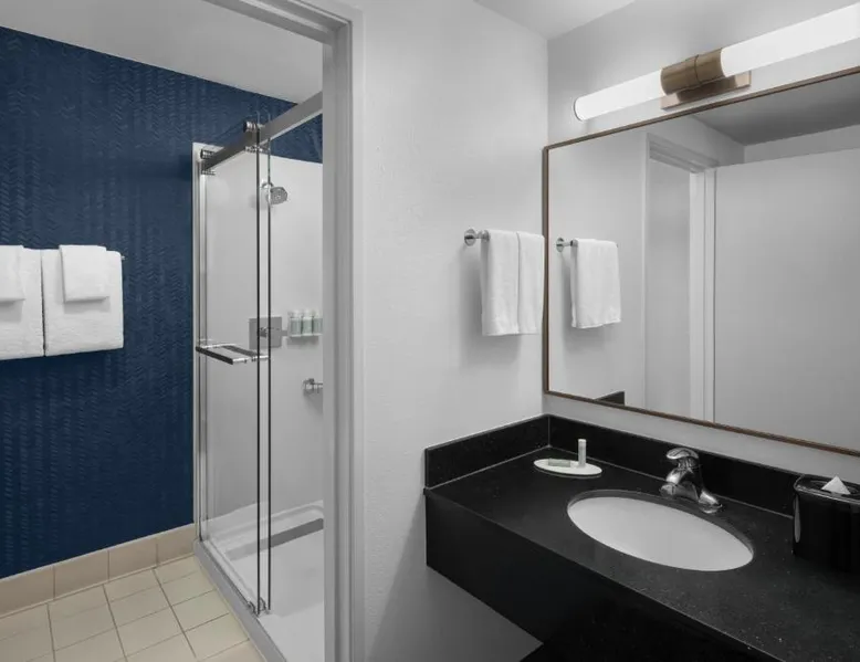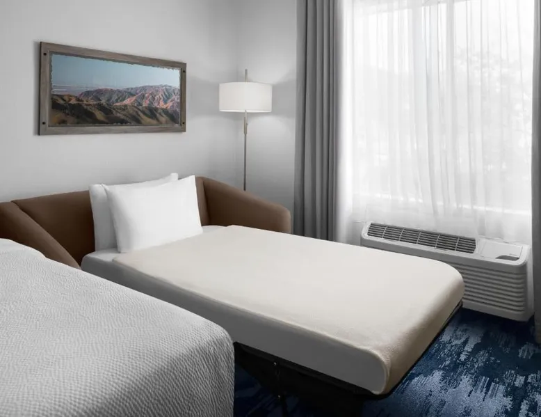 Comfortable Accommodations: Fairfield Inn by Marriott Santa Clarita Valencia in Santa Clarita offers family rooms with private bathrooms, air-conditioning, and free WiFi. Each room includes a work desk, sofa bed, and TV. Exceptional Facilities: Guests can enjoy a fitness center, outdoor swimming pool, and a beautiful garden. Free bicycles are available for exploring the area. Convenient Services: The hotel provides a 24-hour front desk, housekeeping, and free on-site parking. Additional amenities include a elevator, full-day security, and luggage storage. Prime Location: Located 17 mi from Hollywood Burbank Airport, the hotel is near attractions such as Nethercutt Museum (9.3 mi) and Universal Studios Hollywood (22 mi). Guests appreciate the convenient location and excellent breakfast. The family room offers air conditioning, a private entrance, as well as a private bathroom featuring a bath or a shower and a hairdryer. The family room is fitted with a tea and coffee maker, a wardrobe, a sofa as well as heating. The unit offers 3 beds.