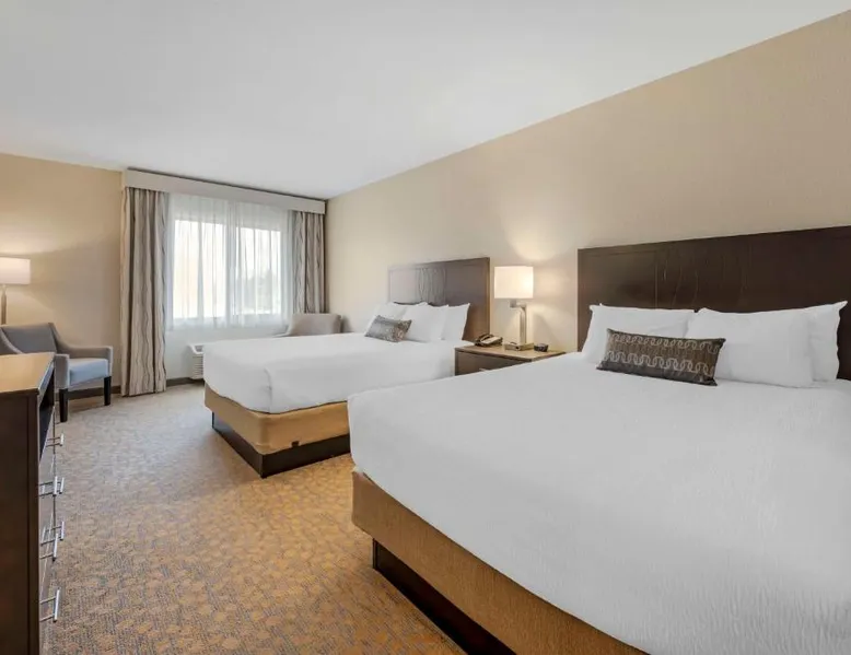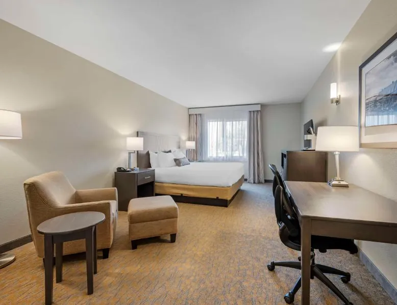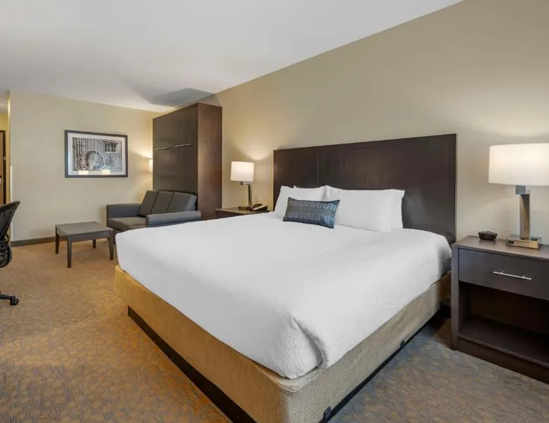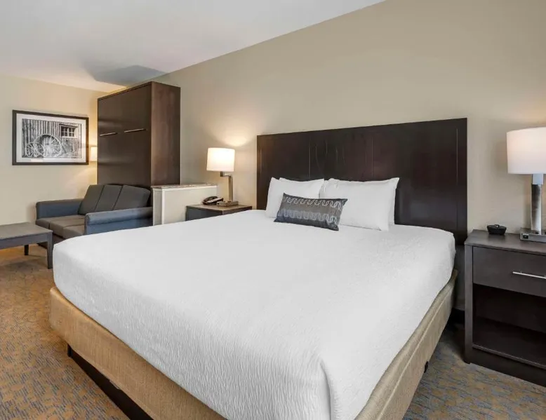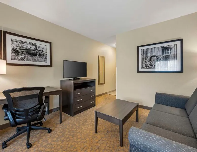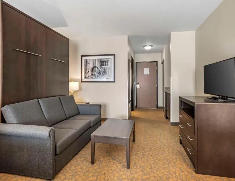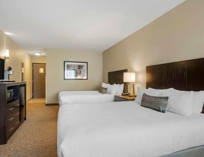 Comfortable Accommodations: Best Western Plus The Inn at Hells Canyon in Clarkston offers family rooms with air-conditioning, microwaves, bath or showers, and TVs. Each room includes a kitchen, refrigerator, and work desk. Exceptional Facilities: Guests enjoy a fitness center, indoor swimming pool, and free WiFi. Additional amenities include a hot tub, elevator, 24-hour front desk, housekeeping service, electric vehicle charging station, and a business area. Delicious Breakfast: A continental and American breakfast is provided each morning. The child-friendly buffet caters to families with young children. Convenient Location: Located 5.6 mi from Lewiston-Nez Perce County Airport, the hotel offers free on-site private parking. Highly rated for its breakfast, room cleanliness, and attentive staff. This suite features air conditioning, heating and a flat-screen TV.