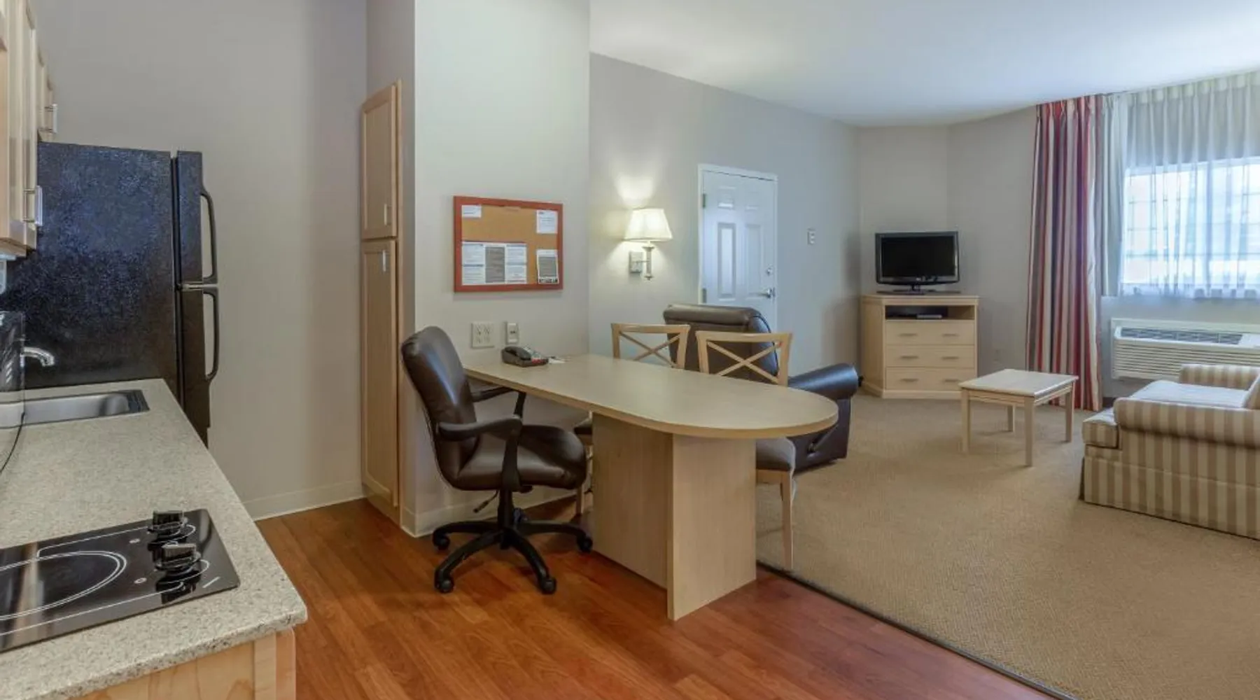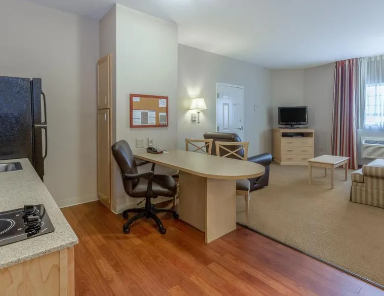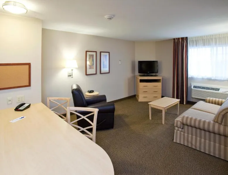 Comfortable Accommodations: Candlewood Suites Minot by IHG in Minot offers air-conditioned rooms with private bathrooms, kitchens, and free WiFi. Each room includes a work desk, seating area, and modern amenities. Facilities and Services: Guests can enjoy a fitness center, 24-hour front desk, minimarket, business area, laundry service, and barbecue facilities. Free on-site parking is available, and the hotel provides free WiFi throughout. Convenient Location: Located 5 mi from Minot International Airport, the hotel is located near attractions such as the Dakota Zoo and the North Dakota Museum of Art. Featuring a full kitchen with a stove and dishwasher, this studio offers a 32-inch flat-screen TV and DVD player. Free Wi-Fi is also provided.