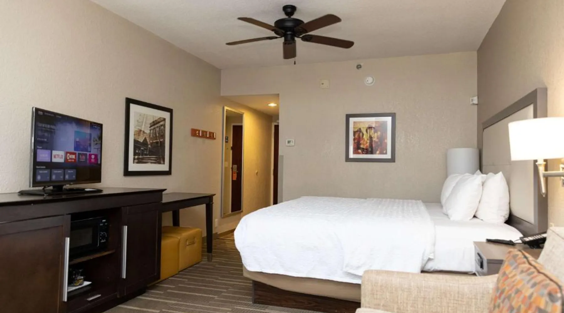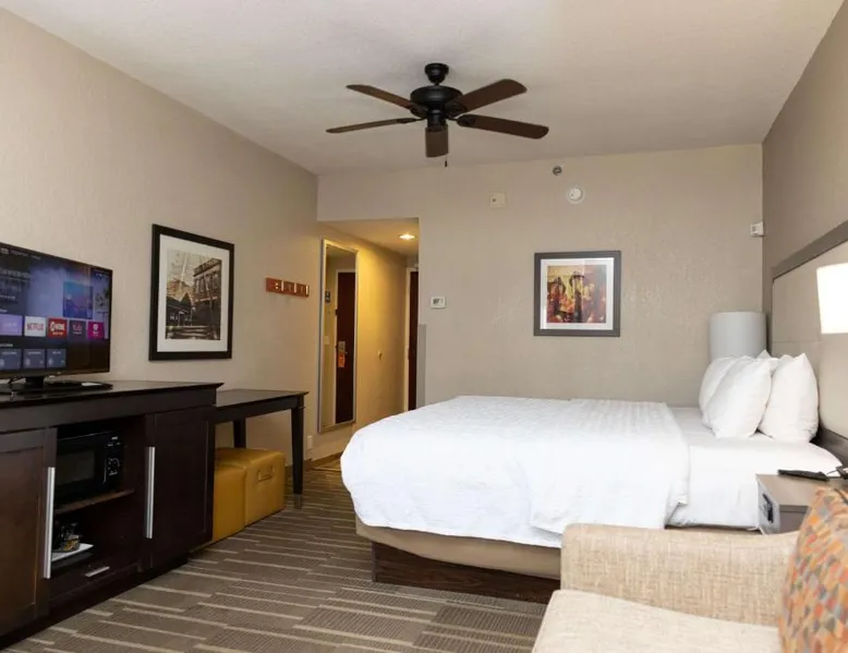 Comfortable Accommodations: Hampton Inn Hammond in Hammond offers family rooms with free WiFi, a fitness room, and a elevator. Guests enjoy a year-round outdoor swimming pool and a 24-hour front desk. Delicious Breakfast: A buffet breakfast is served daily, featuring warm dishes, fresh pastries, and fruits. The property staff provide excellent service and maintain high standards of room cleanliness. Convenient Location: Located 45 mi from Louis Armstrong New Orleans International Airport, the hotel is 3.1 mi from University Center. Free on-site parking is available for guests. This room includes free Wi-Fi and cable TV. A microwave and a fridge are also available.