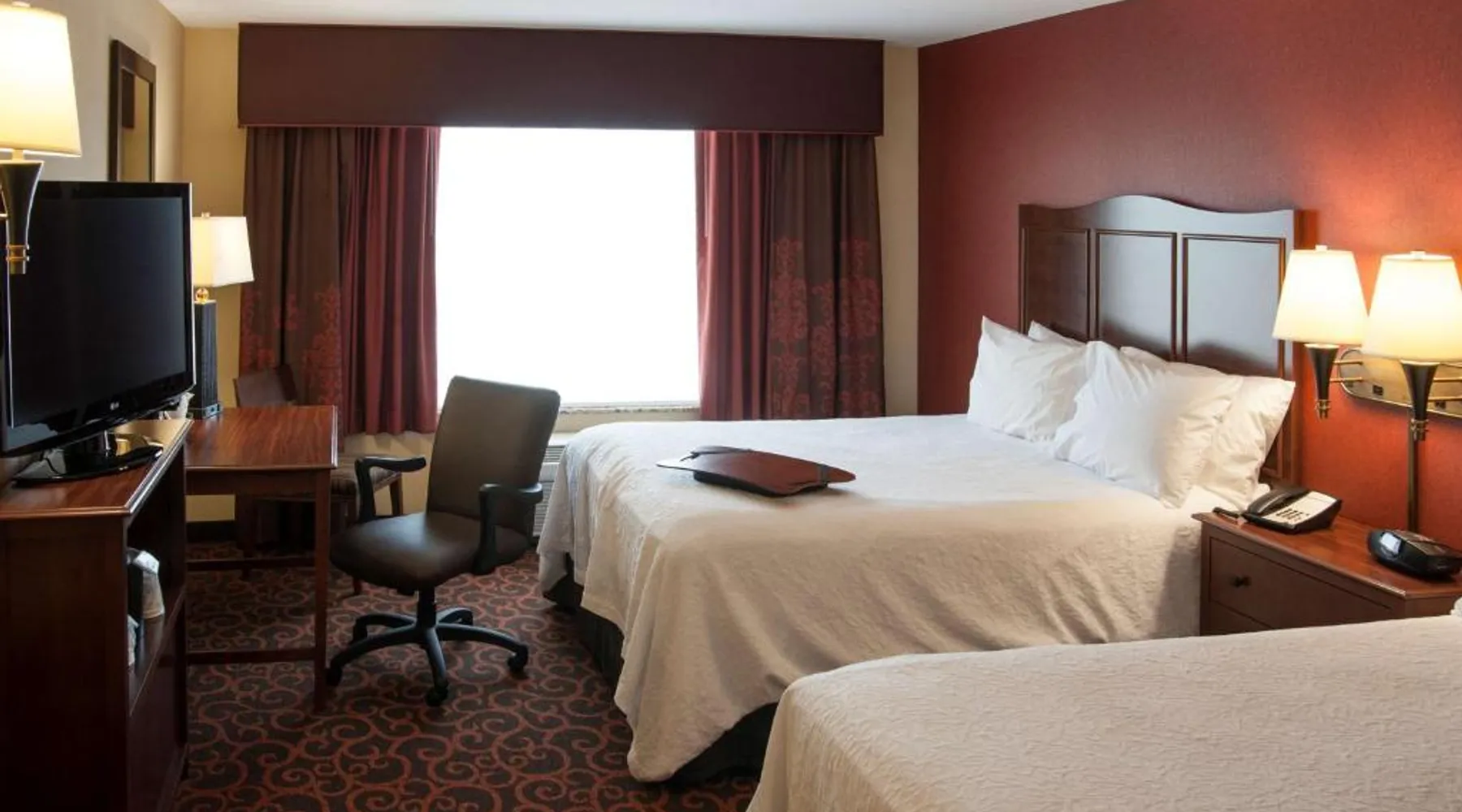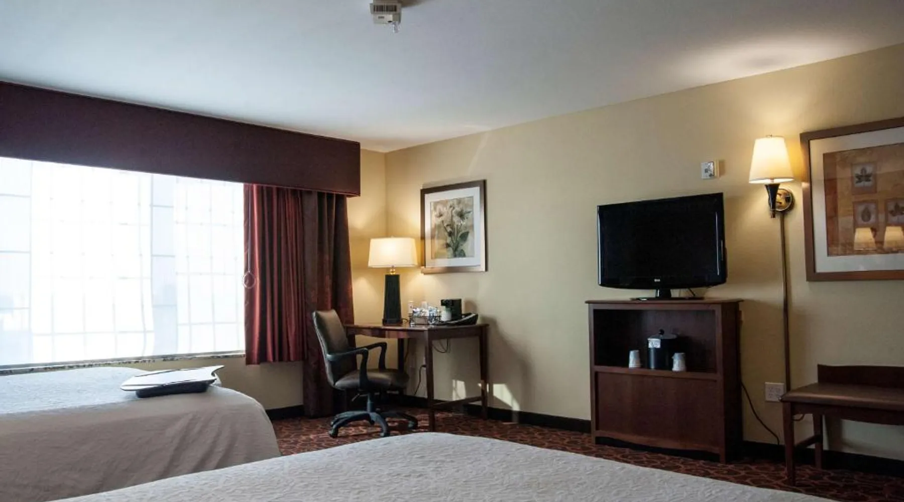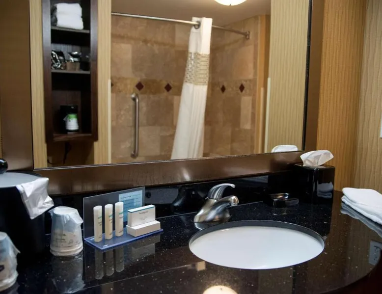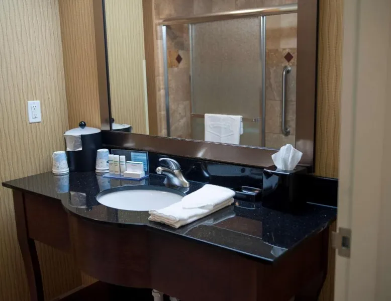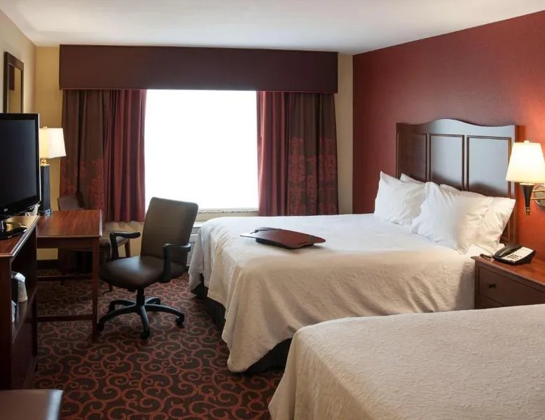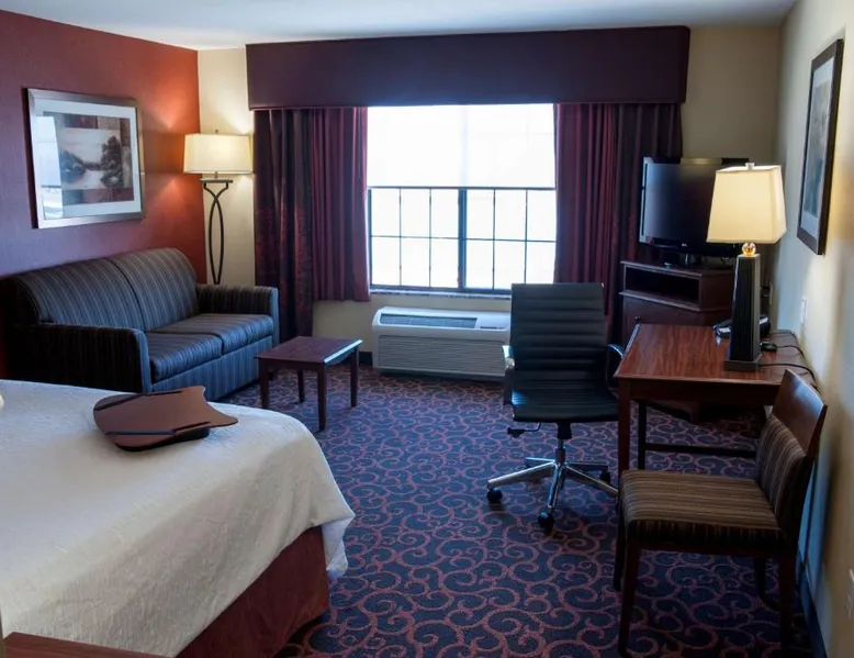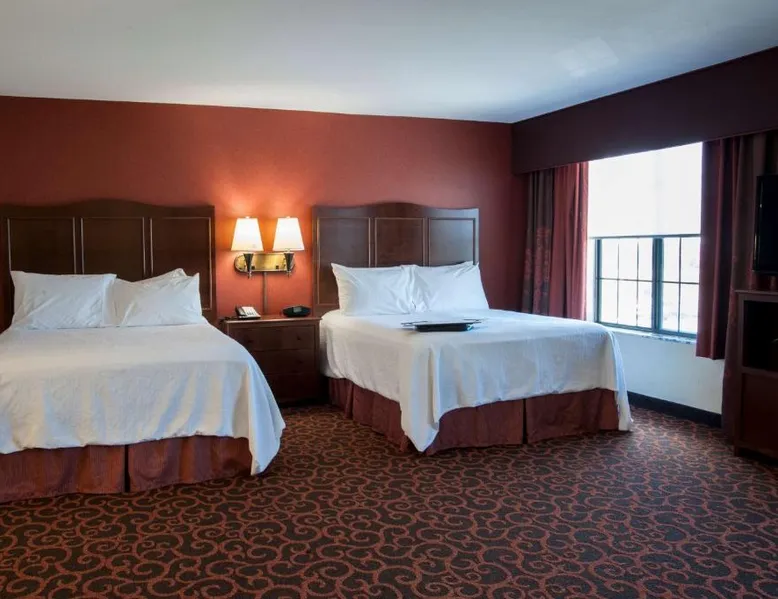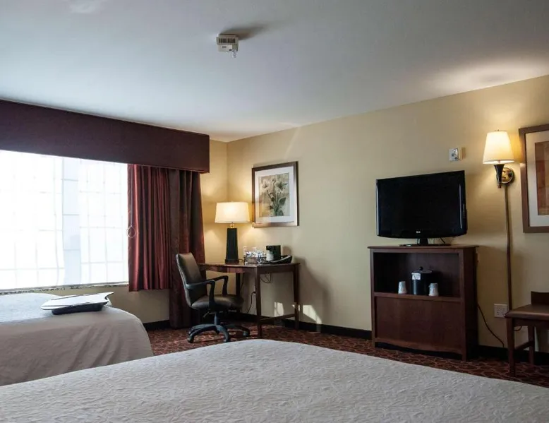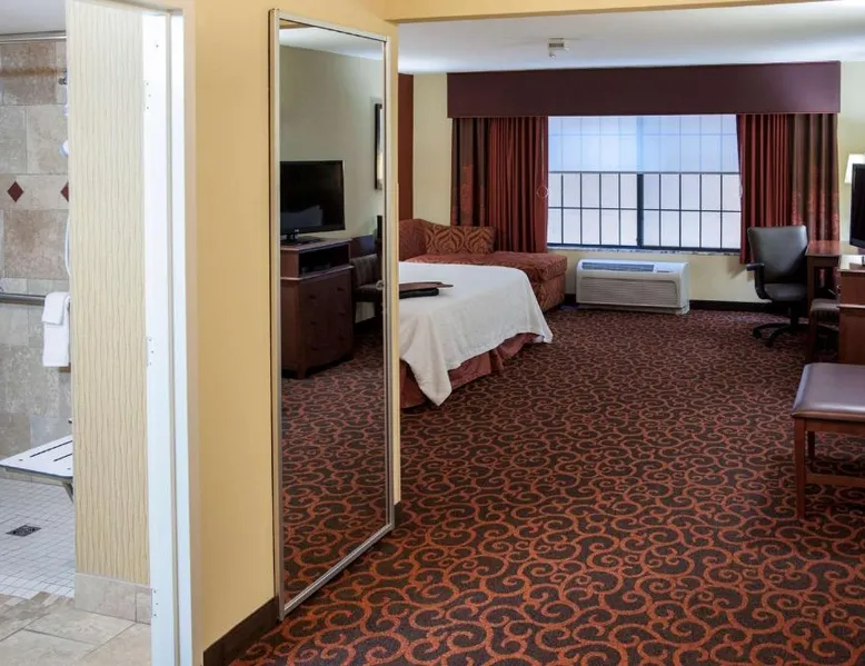 Comfortable Accommodations: Hampton Inn & Suites Watertown in Watertown offers family rooms with air-conditioning, free WiFi, and amenities such as a tea and coffee maker, refrigerator, and TV. Each room includes a bath, sofa bed, and seating area. Leisure Facilities: Guests can enjoy a fitness center, indoor swimming pool, and hot tub. Additional facilities include a lounge, fitness room, elevator, minimarket, and child-friendly buffet. Free on-site parking is available. Dining Experience: A complimentary American buffet breakfast is served daily, featuring warm dishes, fresh pastries, cheese, and fruits. The property also offers a business area and 24-hour front desk. Location and Services: Located 4.3 mi from Watertown Regional Airport, the hotel provides free WiFi, a fitness center, and an indoor swimming pool. Guests appreciate the breakfast, room cleanliness, and attentive staff. Offering free Wi-Fi and large flat-screen TV, this room comes equipped with tea and coffee-making facilities.