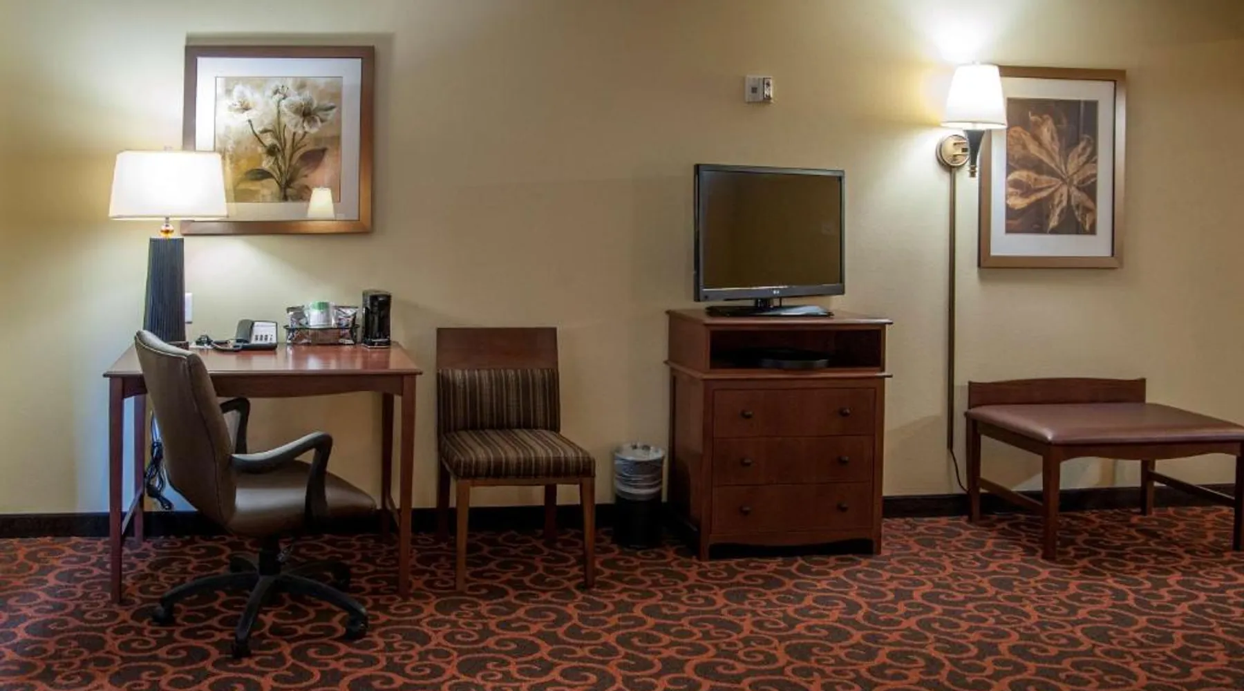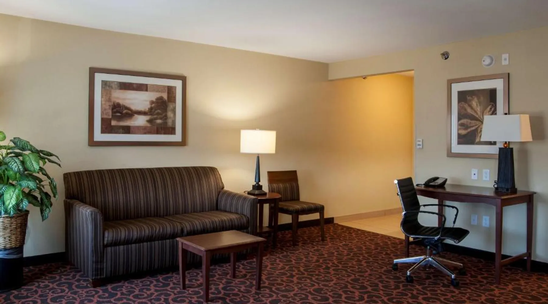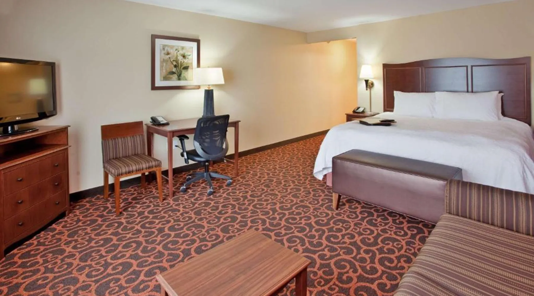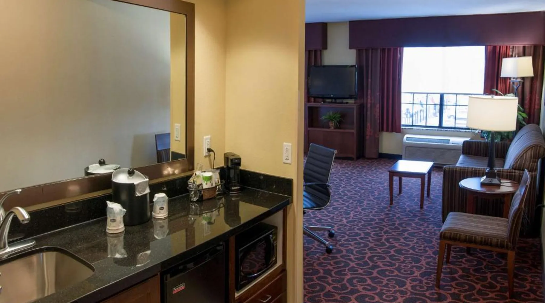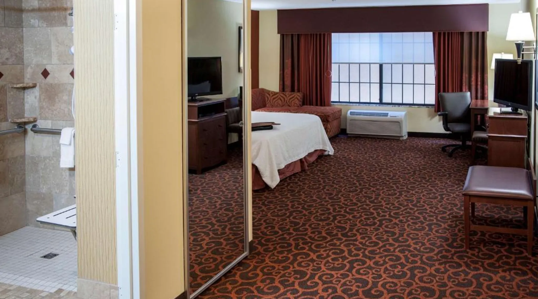 Comfortable Accommodations: Hampton Inn & Suites Watertown in Watertown offers family rooms with air-conditioning, free WiFi, and amenities such as a tea and coffee maker, refrigerator, and TV. Each room includes a bath, sofa bed, and seating area. Leisure Facilities: Guests can enjoy a fitness center, indoor swimming pool, and hot tub. Additional facilities include a lounge, fitness room, elevator, minimarket, and child-friendly buffet. Free on-site parking is available. Dining Experience: A complimentary American buffet breakfast is served daily, featuring warm dishes, fresh pastries, cheese, and fruits. The property also offers a business area and 24-hour front desk. Location and Services: Located 4.3 mi from Watertown Regional Airport, the hotel provides free WiFi, a fitness center, and an indoor swimming pool. Guests appreciate the breakfast, room cleanliness, and attentive staff. Offering free Wi-Fi and large flat-screen TV, this room comes equipped with tea and coffee-making facilities.