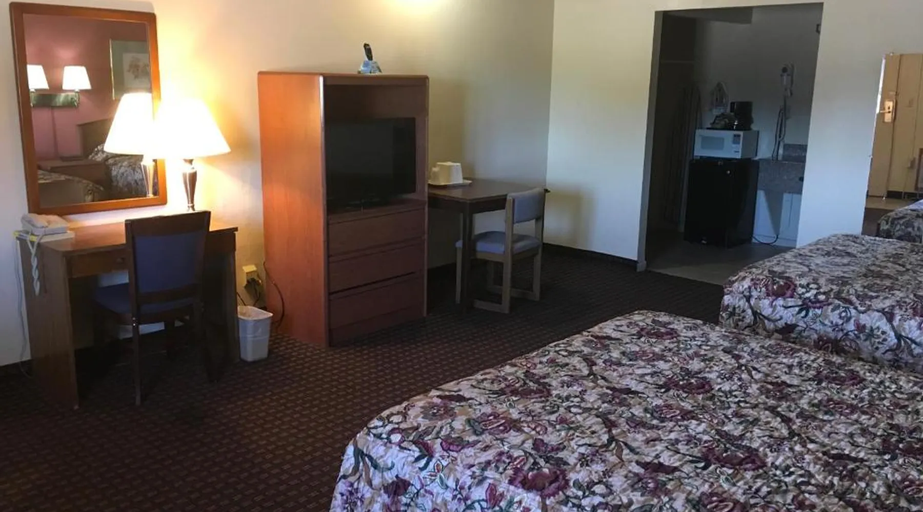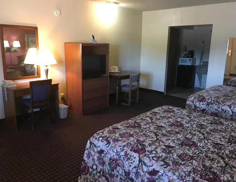 Comfortable Accommodations: Budget Inn Lafonda Motel in Liberal offers family rooms with private bathrooms, air-conditioning, and free WiFi. Each room includes a work desk, TV, and seating area. Dining and Services: Guests can enjoy American and Latin American cuisines at the on-site restaurant. The motel provides a free airport shuttle service, a 24-hour front desk, and free on-site parking. Additional services include private check-in and check-out, housekeeping, and full-day security. Convenient Location: Located 1.9 mi from Liberal Mid-America Regional Airport, the motel offers easy access to local attractions. This air-conditioned quadruple room includes a flat-screen TV with cable channels and a private bathroom. The unit offers 2 beds.