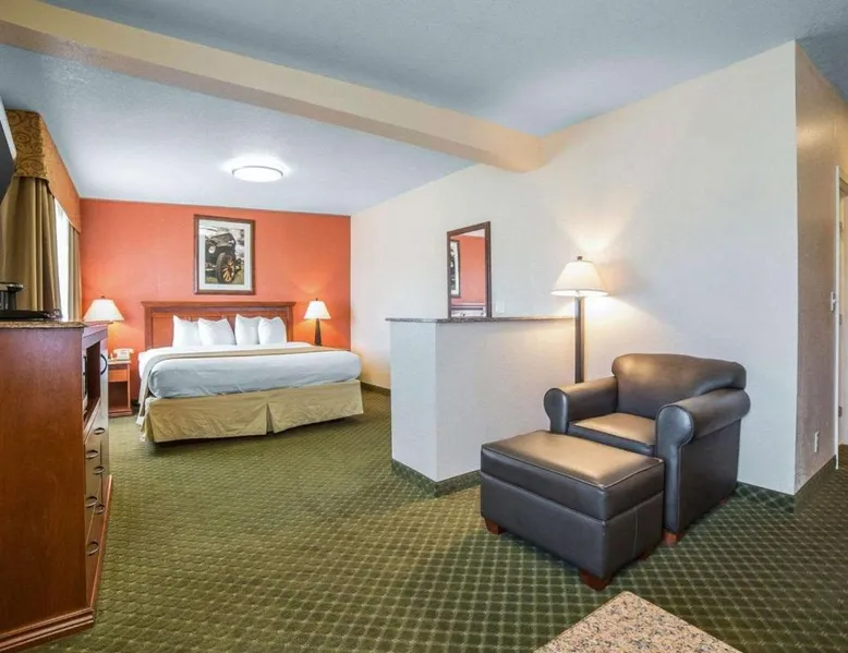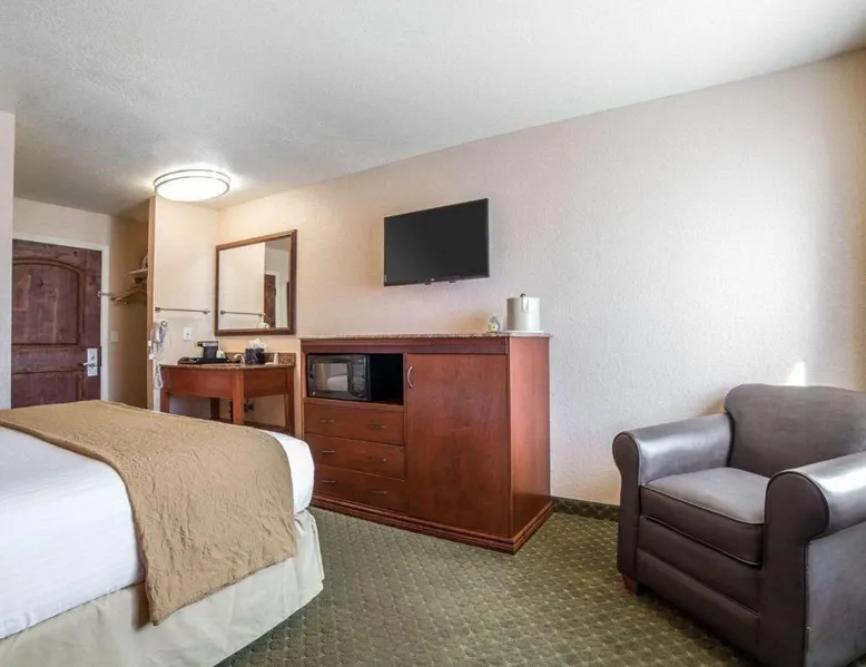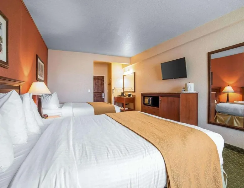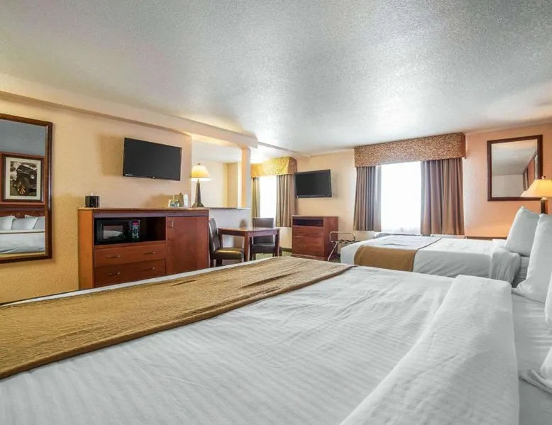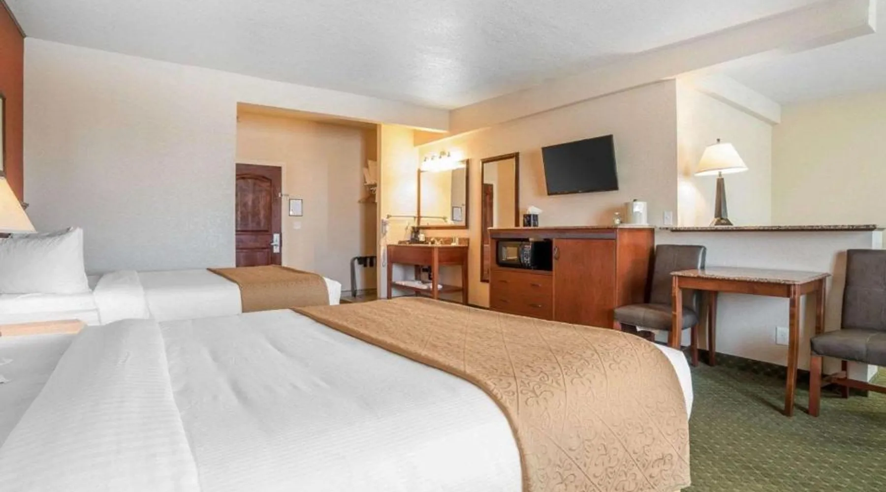 Comfortable Accommodations: Quality Inn Winnemucca - Model T Casino in Winnemucca offers family rooms with private bathrooms, featuring tea and coffee makers, hairdryers, baths, refrigerators, microwaves, and showers. Dining and Leisure: The inn includes a restaurant and bar, a seasonal outdoor swimming pool, and free WiFi. Guests can enjoy a casino, games room, and outdoor seating area. Convenient Services: The property provides private check-in and check-out, a 24-hour front desk, housekeeping, and a business area. Free on-site parking is available. Guest Favorites: Guests appreciate the restaurant, bed comfort, and breakfast provided by the property. Free Wi-Fi and a coffee machine are included in this room.