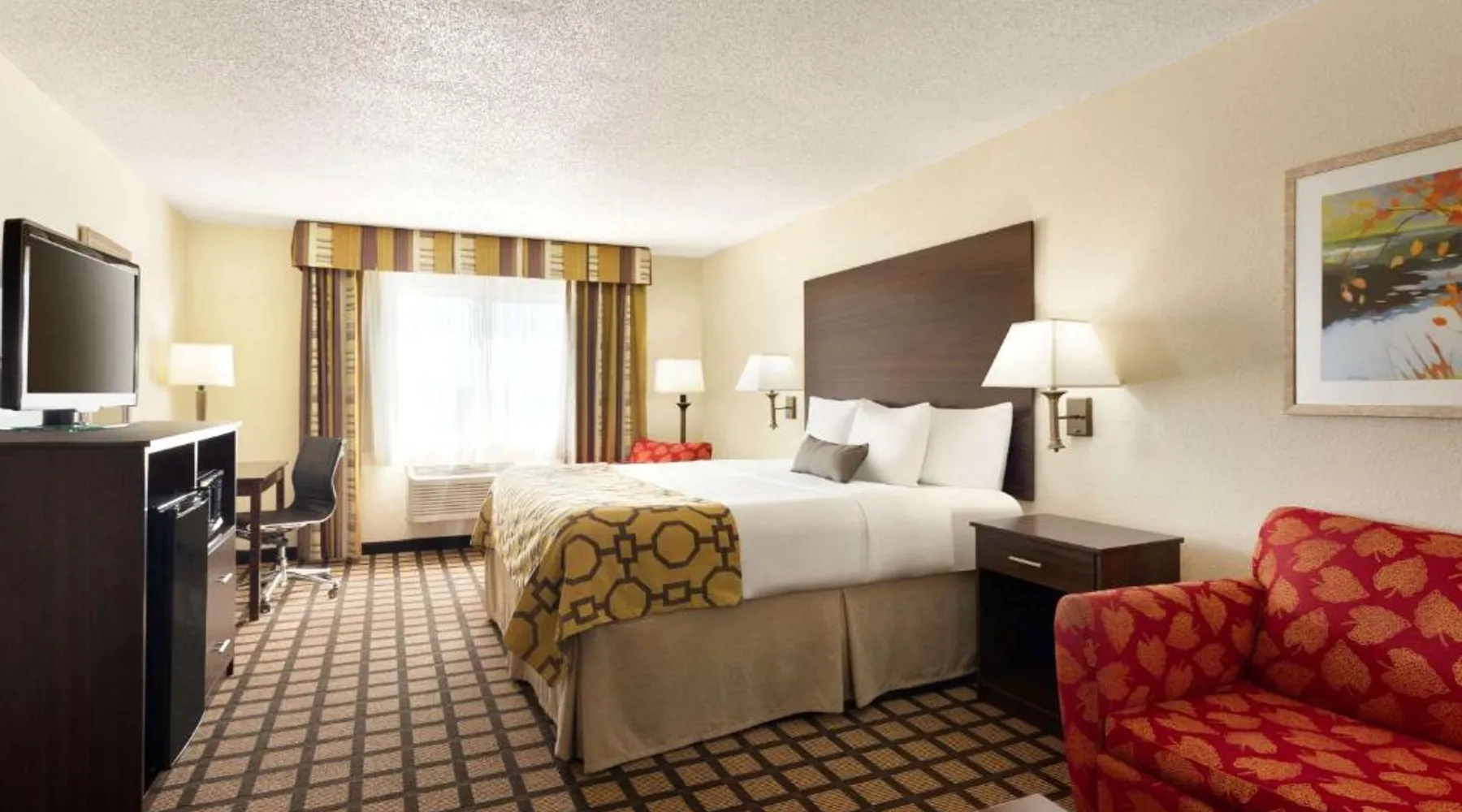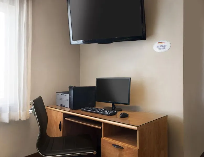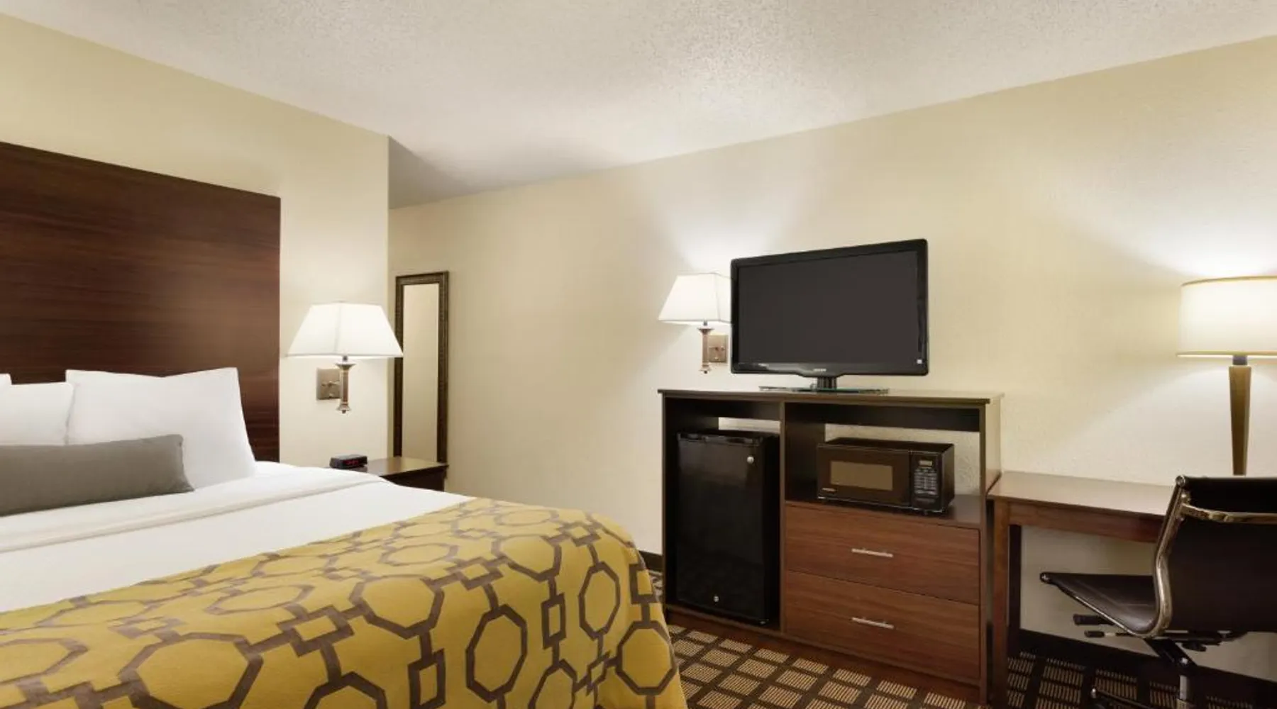 Just off Interstate 135 and less than a 5-minute drive from the center of Salina, this Kansas hotel features guest rooms with free Wi-Fi and a 37-inch flat-screen cable TV. A complimentary continental breakfast is served daily. A small refrigerator and a microwave are included in every room at Baymont Inn and Suites Salina. Ironing facilities and a work desk are also provided in each guest room. Guests can swim in the indoor pool or relax in the hot tub at Salina Baymont Inn and Suites. A fitness center is also available on site. The Salina Municipal Airport is less than 3 miles from the hotel. The Stiefel Theatre for Performing Arts, Salina Art Center and Salina Municipal Golf Course are within a 5-minute drive of the property. This room features a microwave, fridge and flat-screen TV with cable channels.
