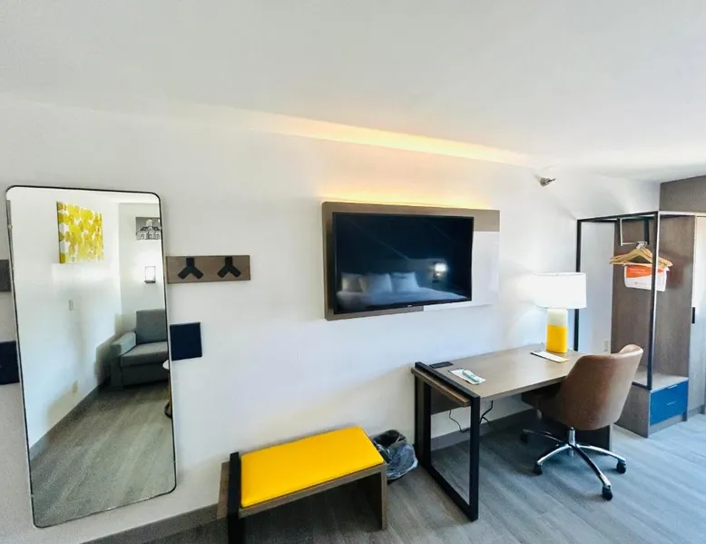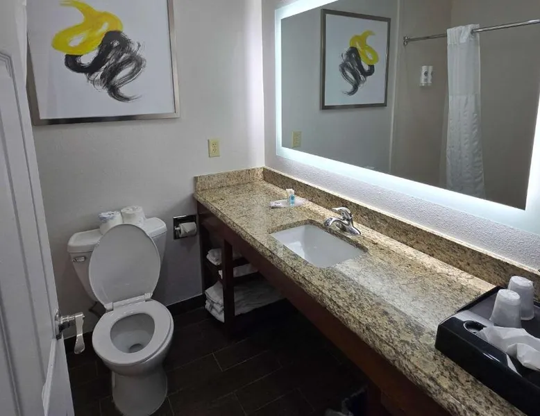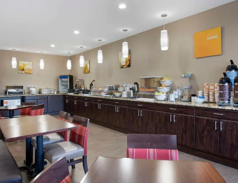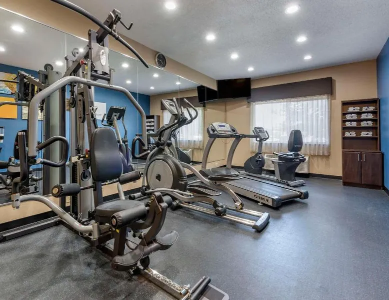 Comfortable Accommodations: Comfort Suites Terre Haute University Area in Terre Haute offers comfortable rooms with air-conditioning, free WiFi, and modern amenities. Guests enjoy amenities such as a fitness center, indoor swimming pool, and a saltwater swimming pool. Convenient Facilities: The hotel features a fitness room, elevator, 24-hour front desk, minimarket, housekeeping service, business area, and full-day security. Free on-site private parking is available for guests. Delicious Breakfast: A continental breakfast is served daily, including warm dishes, juice, cheese, and fruits. Guests appreciate the quality of the breakfast and the room cleanliness. Prime Location: Located 65 mi from Indianapolis International Airport, the hotel is near Indiana State University and Isu Hulman Center, both 2.5 mi away. Boasting free Wi-Fi and a cable TV, this suite is equipped with tea and coffee-making facilities, a refrigerator and a microwave.