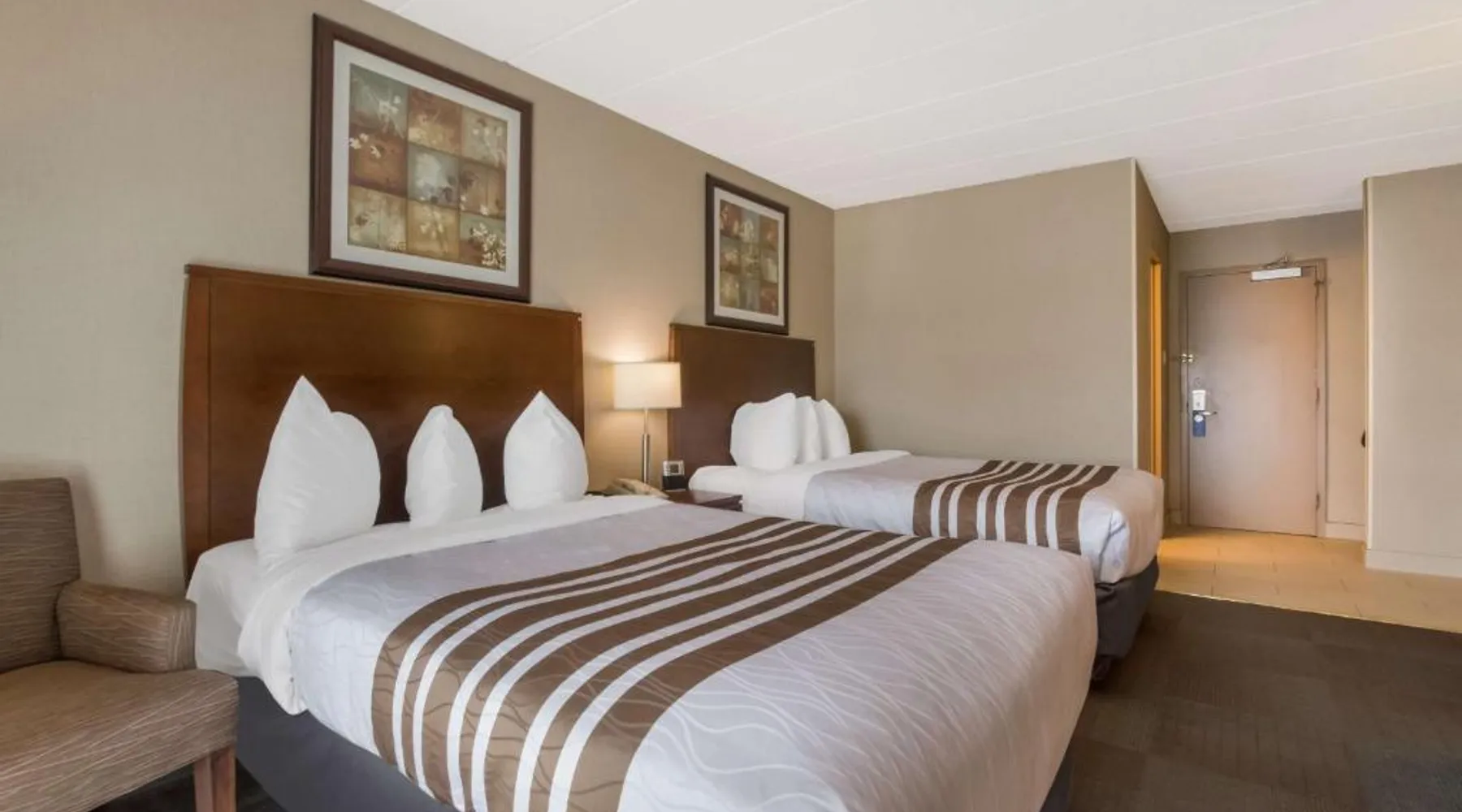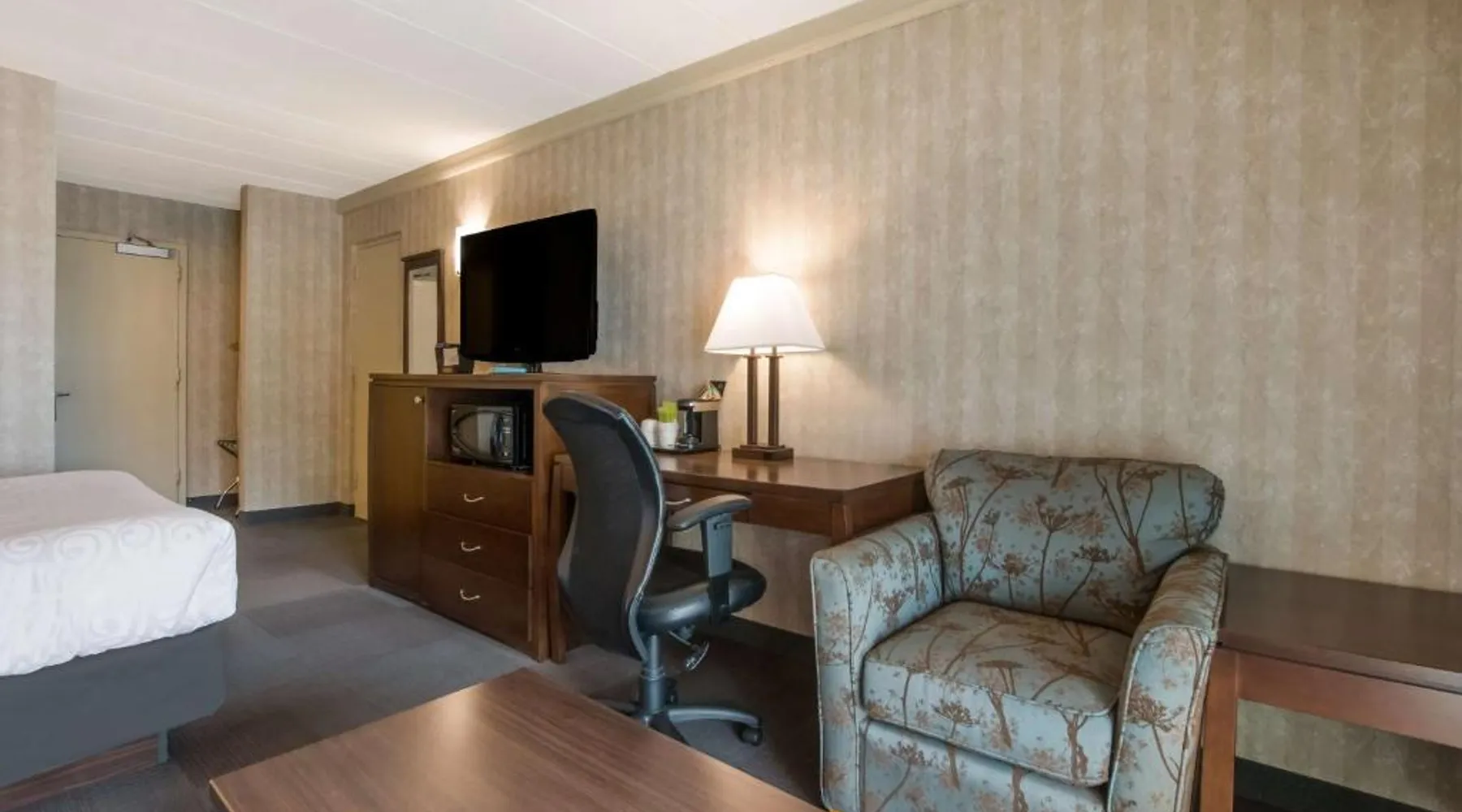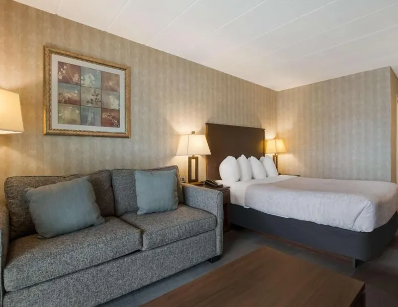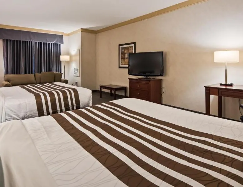 Best Western Brantford Hotel and Conference Center features an indoor swimming pool and an on-site bar and restaurant. It is located just off Highway 403. Free WiFi is offered. Guest rooms at Best Western Brantford Hotel and Conference Center offer a cable TV and work desk. A refrigerator and coffee machine are also provided. An on-site fitness center is accessible to all guests at Best Western Brantford Hotel and Conference Center. Meeting and banquet facilities are offered for conferences and events. Room service is available. Myra's Bar & Grill is located onsite. Lynden Park mall is 5 minutes’ drive away. Sanderson Center for Performing Arts is 2.5 miles from the hotel. This spacious room is located in the Walter Gretzky Wing of the hotel. It contains two queen beds, a mini fridge, microwave and comfortable seating area. It is fully wheelchair accessible and has a roll-in shower.