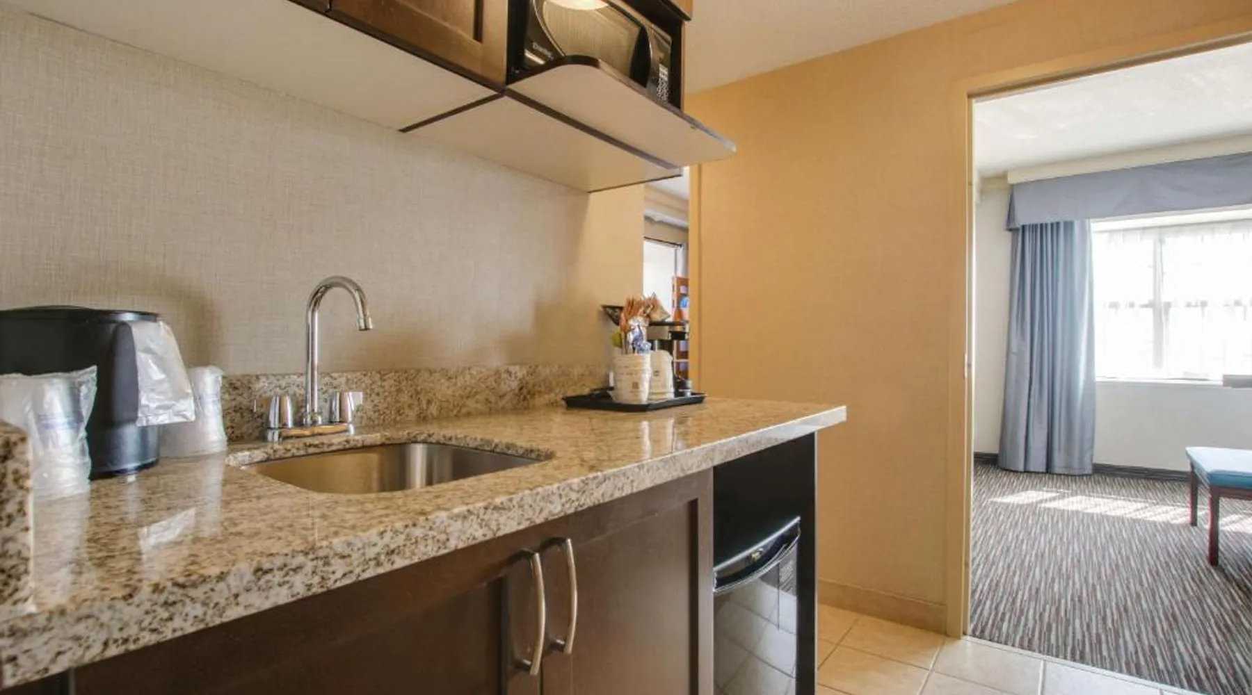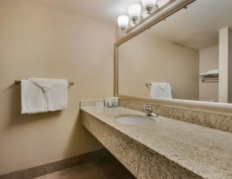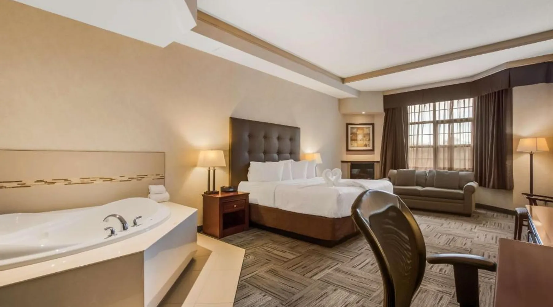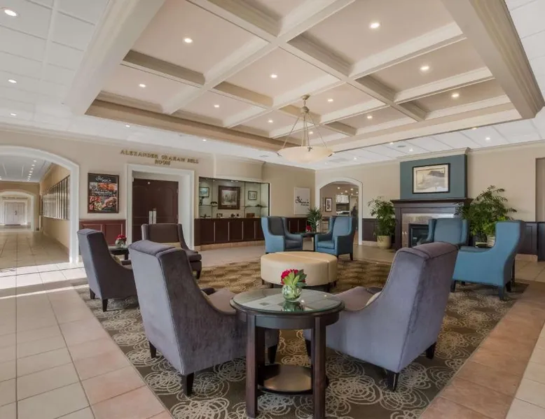 Best Western Brantford Hotel and Conference Center features an indoor swimming pool and an on-site bar and restaurant. It is located just off Highway 403. Free WiFi is offered. Guest rooms at Best Western Brantford Hotel and Conference Center offer a cable TV and work desk. A refrigerator and coffee machine are also provided. An on-site fitness center is accessible to all guests at Best Western Brantford Hotel and Conference Center. Meeting and banquet facilities are offered for conferences and events. Room service is available. Myra's Bar & Grill is located onsite. Lynden Park mall is 5 minutes’ drive away. Sanderson Center for Performing Arts is 2.5 miles from the hotel. This spacious room is located in the Walter Gretzky Wing of the hotel. It contains two queen beds, a mini fridge, microwave and comfortable seating area. It is fully wheelchair accessible and has a roll-in shower.