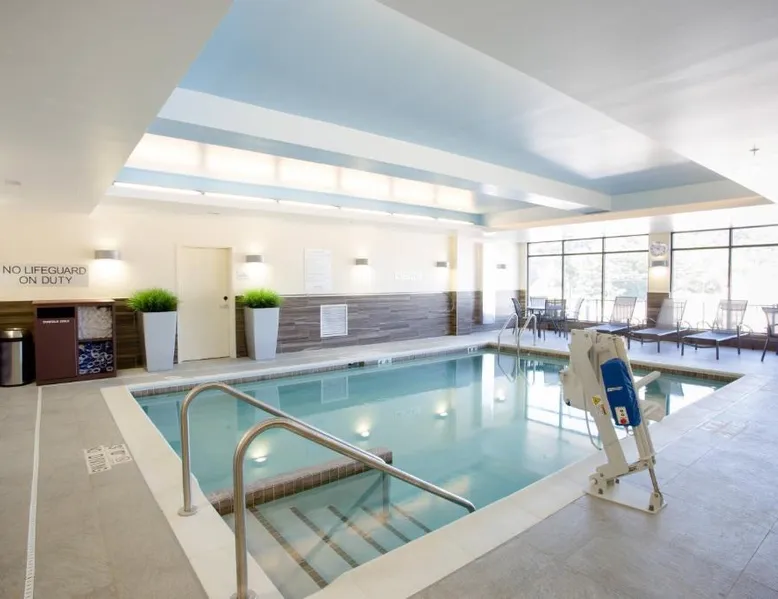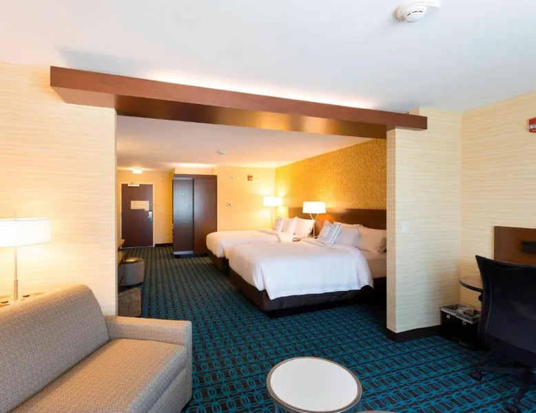 Comfortable Accommodations: Fairfield Inn & Suites by Marriott Decorah in Decorah offers rooms with air-conditioning, free WiFi, and modern amenities including a work desk, sofa bed, and TV. Each room features a bathroom with a shower and complimentary toiletries. Exceptional Facilities: Guests can enjoy a fitness center, indoor swimming pool, and free use of bicycles. Additional facilities include a lounge, elevator, 24-hour front desk, concierge service, minimarket, and electric vehicle charging station. Free on-site parking is available. Delightful Breakfast: A complimentary breakfast is provided by the property, highly appreciated by guests for its quality and variety. Convenient Location: Located 63 mi from La Crosse Municipal Airport, the hotel offers easy access to local attractions such as the Decorah Fish Hatchery and the Upper Iowa River. The suite features air conditioning, a seating area, a wardrobe, heating and a flat-screen TV with cable channels. The unit has 2 beds.