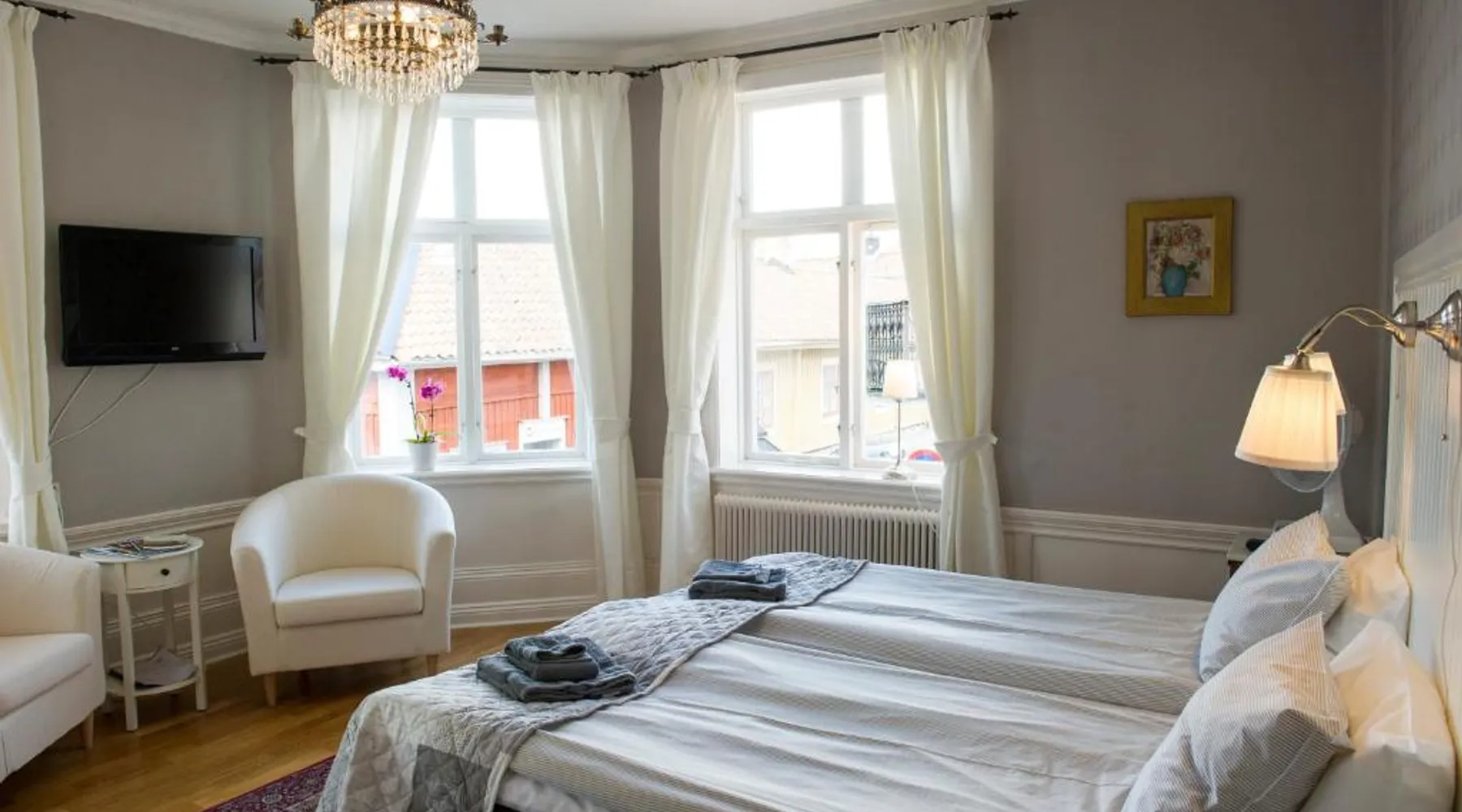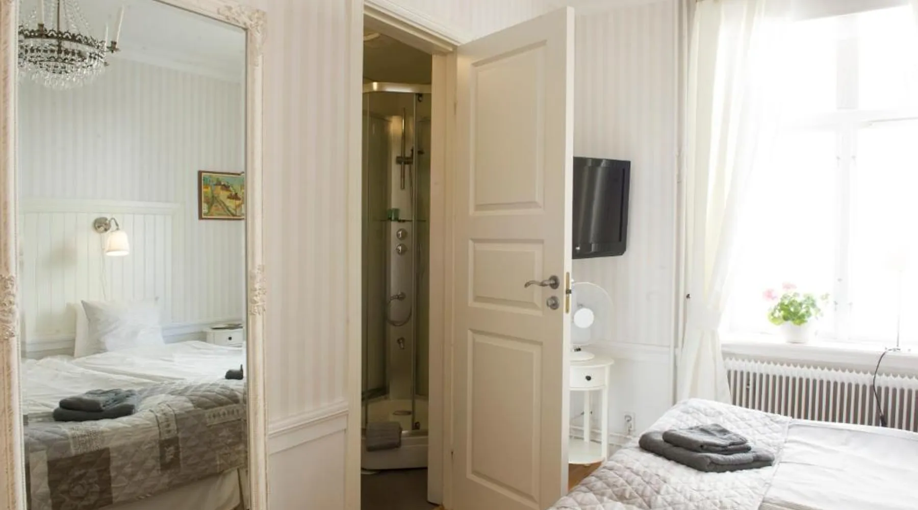 Set in a building from 1912, this hotel is just 328 feet from Nora Train Station. It provides free WiFi and a daily breakfast buffet served in the bright and fresh dining room. A flat-screen TV and seating area are offered in all rooms at Lilla Hotellet i Nora. Each also has a private bathroom with a shower. During nice weather, guests can enjoy Lilla Hotellet’s enclosed courtyard with garden furniture. Free parking is possible on site. Several restaurants and cafes are found in the picturesque surroundings of this wooden town of Nora. Central Örebro is about 30 minutes’ drive from the property. The double room features parquet floors and heating, as well as a private bathroom boasting a walk-in shower. The unit has 2 beds.