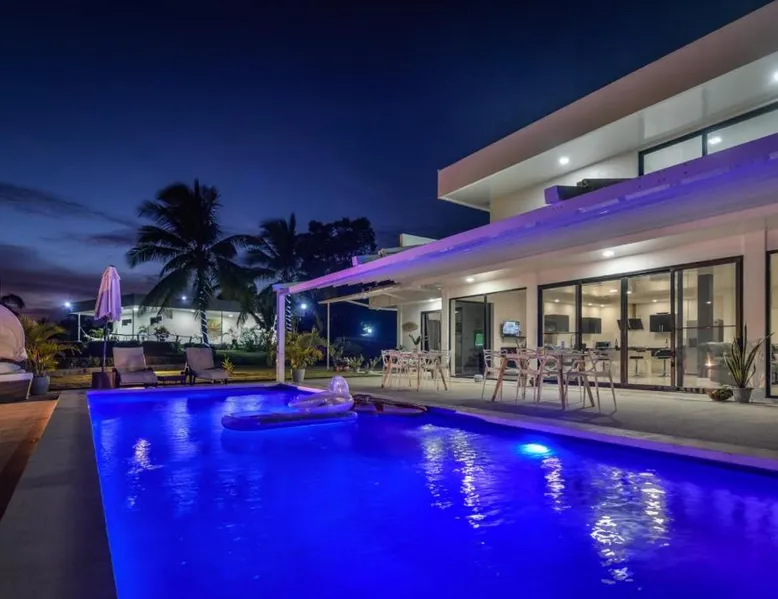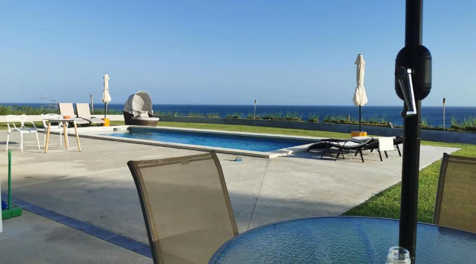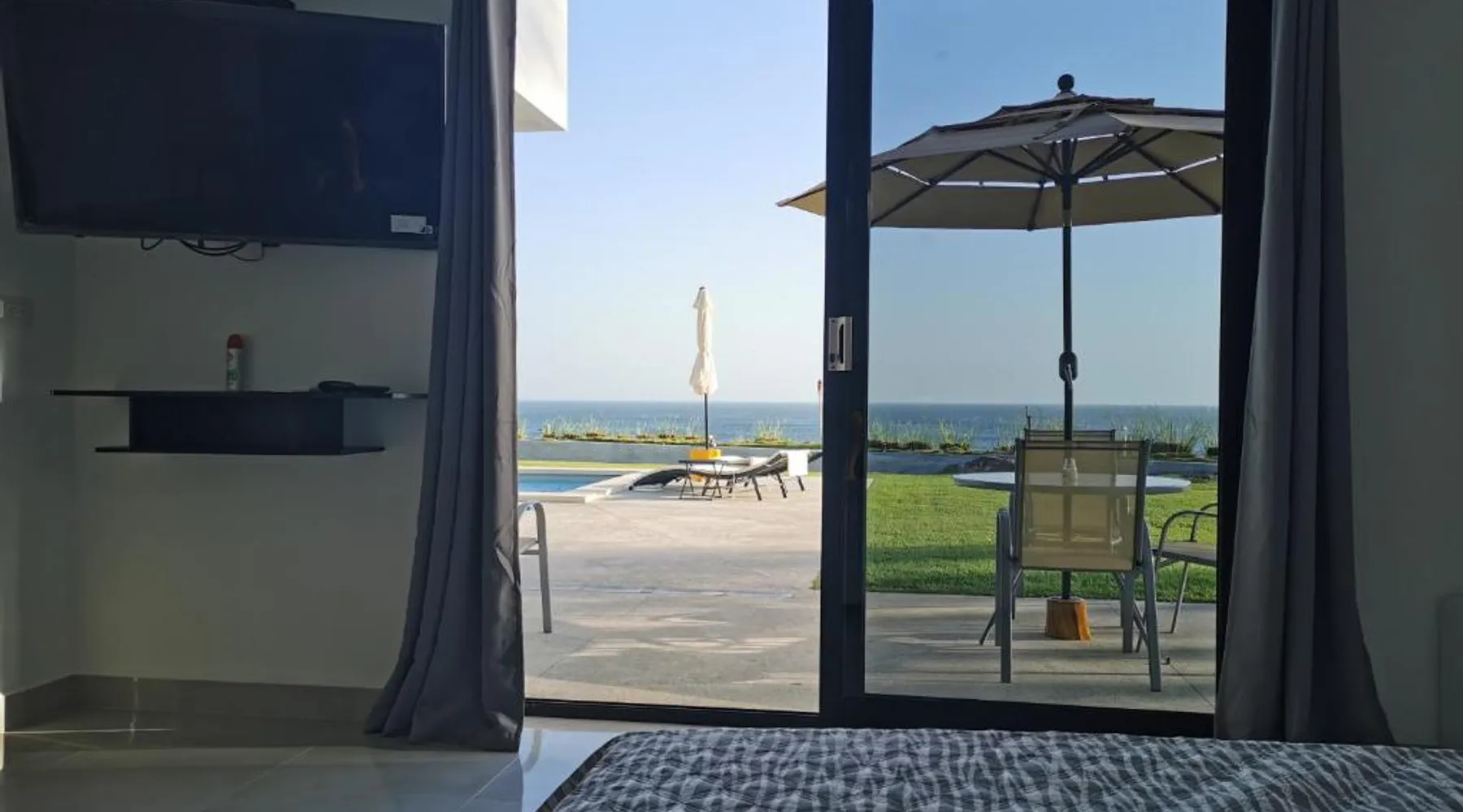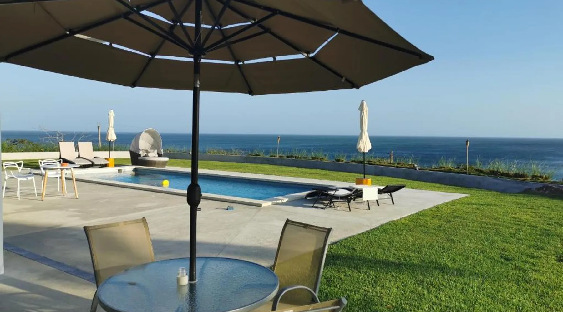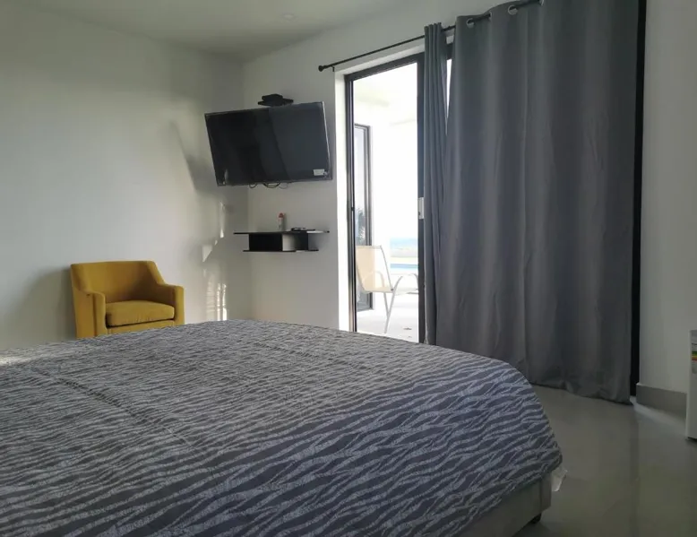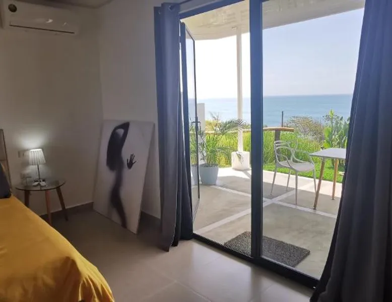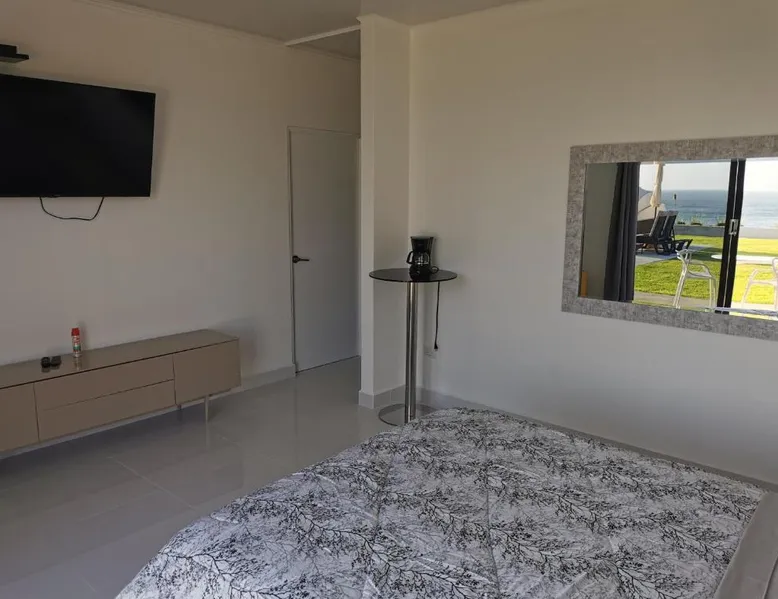 Elegant Accommodations: Ocean Breeze Cove - Luxury Retreat in Pedasí Town offers an adults-only bed and breakfast experience with a swimming pool, sun terrace, and lush garden. Guests enjoy free WiFi, a bar, and private check-in and check-out services. Comfortable Amenities: The property features air-conditioning, private bathrooms, and sea views. Additional amenities include a coffee shop, outdoor seating area, and free on-site private parking. Free toiletries, a mini-bar, and a TV enhance the stay. Prime Location: Located 6.8 mi from Pedasí Airport, the retreat is steps from Los Destiladeros Beach. Guests appreciate the scenic views, beach access, and attentive staff. Highly rated for its location and excellent service. This double room's special feature is the pool with a view. Providing free toiletries, this double room includes a private bathroom with a bath, a shower and a hairdryer. The spacious air-conditioned double room provides a flat-screen TV with satellite channels, a private entrance, a mini-bar, a tea and coffee maker as well as sea views. The unit offers 1 bed.