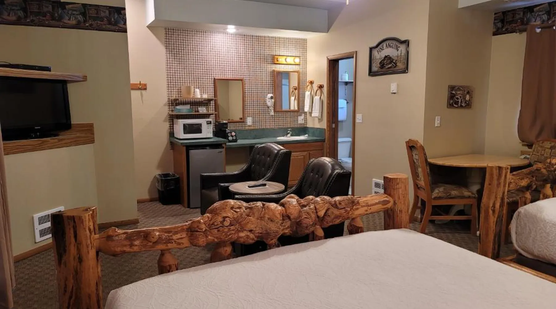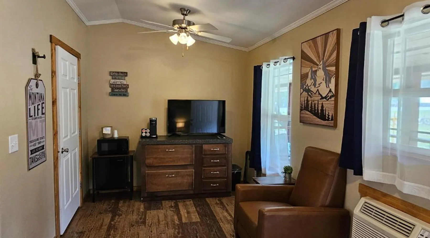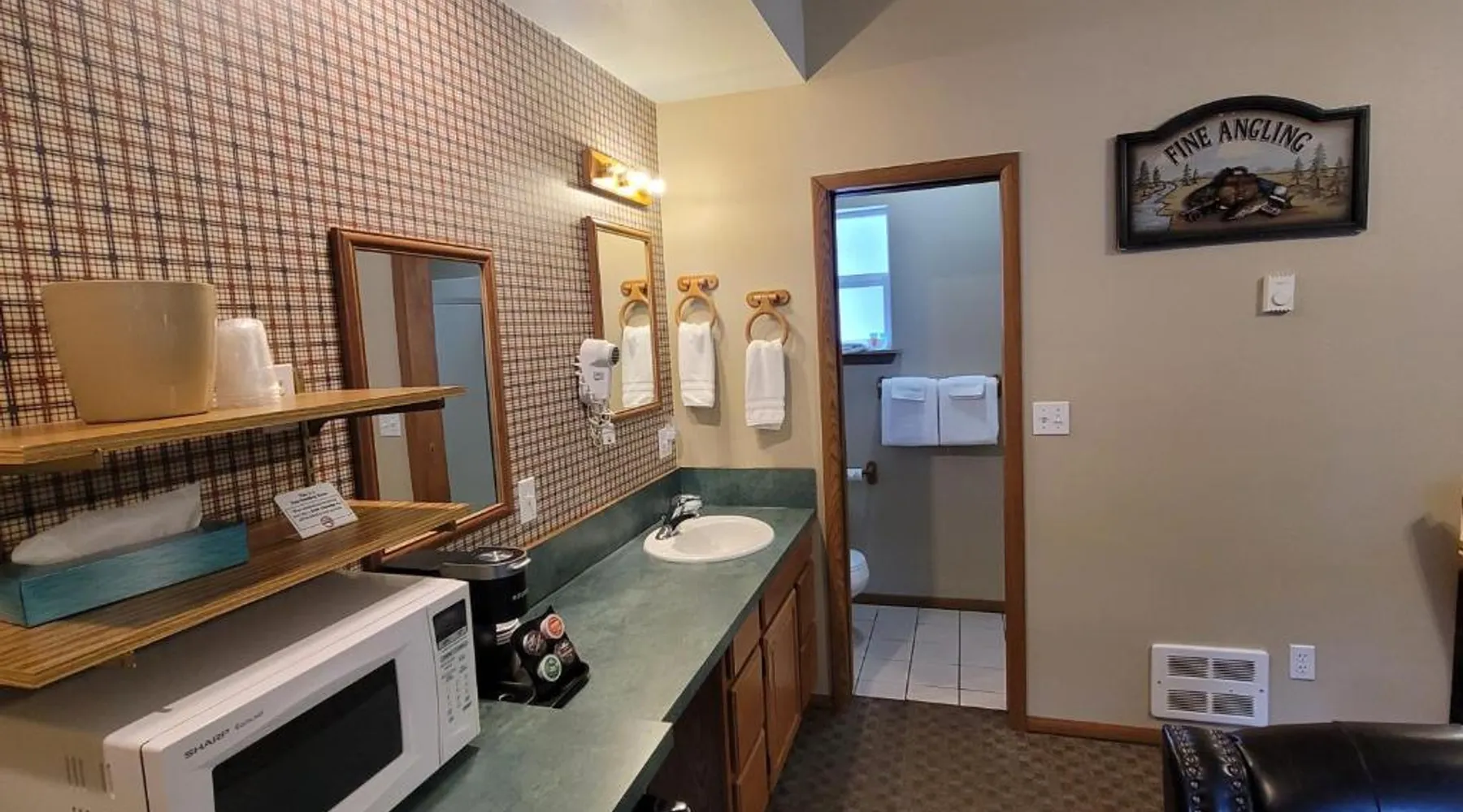 Set along the banks of the Clark Fork River, this Thompson Falls motel features a number of outdoor activities, such as fishing, canoeing, and hiking on nature trails. Free WiFi access is available at the Riverfront Motel & Cabins. Rooms here will provide guests with a satellite flat-screen TV, a seating area, and air conditioning. A microwave, refrigerator, and tea/coffee maker is provided in each room, and upgraded units feature a full kitchen or kitchenette. For extra convenience, vending machines and laundry facilities can be found on site. Kids will enjoy the motel’s playground, and outdoor barbecue facilities are available for guests’ use. The center of Thompson Falls is just 3 minutes’ drive from the Riverfront Motel & Cabins. Missoula International Airport is 98 mi away. Guests will find a refrigerator and a microwave in the kitchenette. The double room also includes a barbecue. The spacious double room features air conditioning, a tea and coffee maker, a balcony with mountain views as well as a private bathroom boasting a bath. The unit has 2 beds.