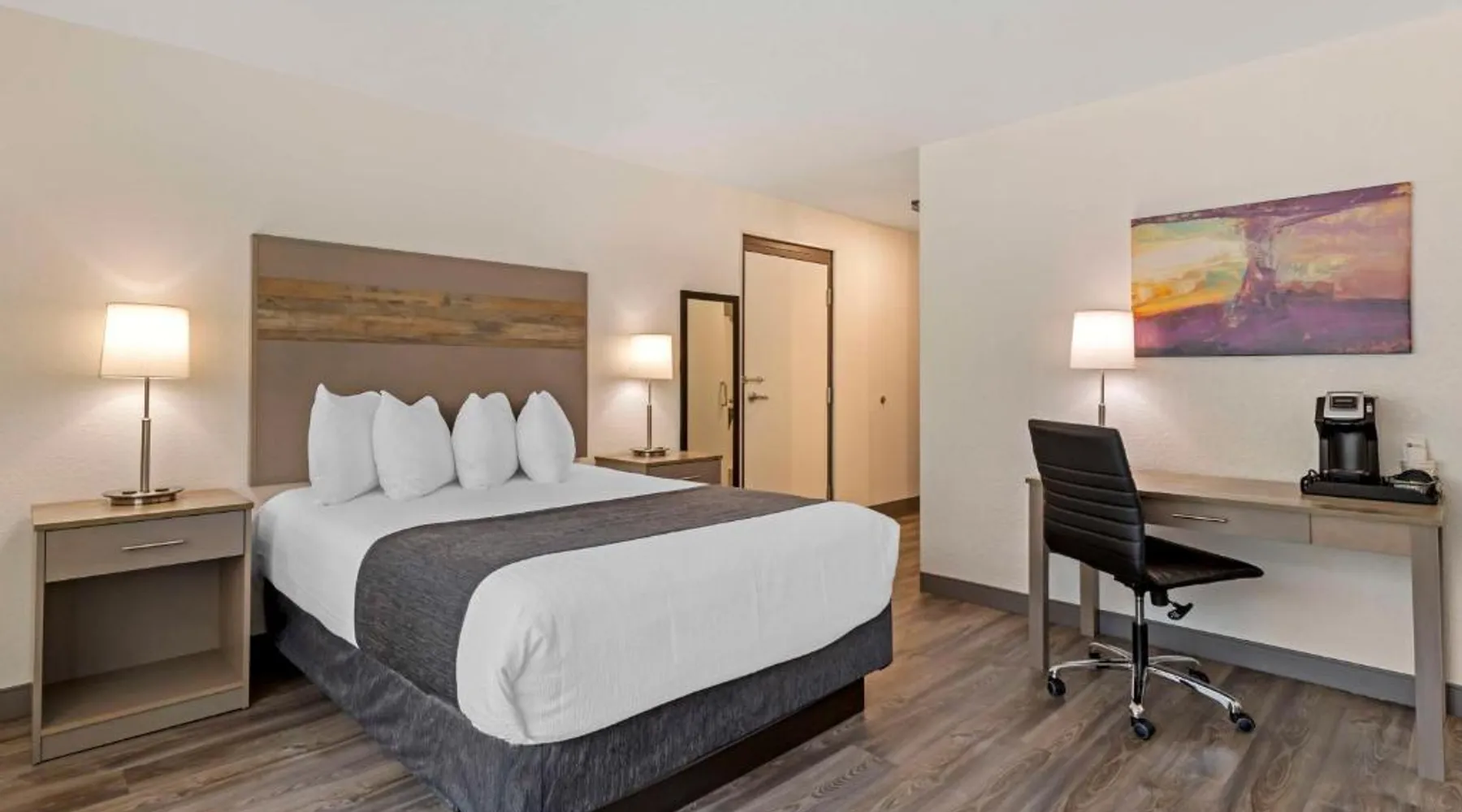 Comfortable Accommodations: Best Western Plus Waterloo & Cedar Falls in Waterloo offers family rooms with air-conditioning, private bathrooms, and modern amenities. Each room includes a work desk, free toiletries, and a TV. Exceptional Facilities: Guests enjoy a fitness center, indoor swimming pool, and free WiFi. Additional facilities include a restaurant, bar, lounge, and games room. Dining Experience: The family-friendly restaurant serves American cuisine with vegetarian options. Breakfast includes continental, American, buffet, and gluten-free selections. Convenient Location: Located 5 mi from Waterloo Regional Airport and 6.8 mi from Gallagher Bluedorn Performing Arts Center. Highly rated for breakfast, staff, and nearby options. The spacious double room provides air conditioning, a tea and coffee maker, as well as a private bathroom featuring a walk-in shower and a hairdryer. The unit offers 1 bed.