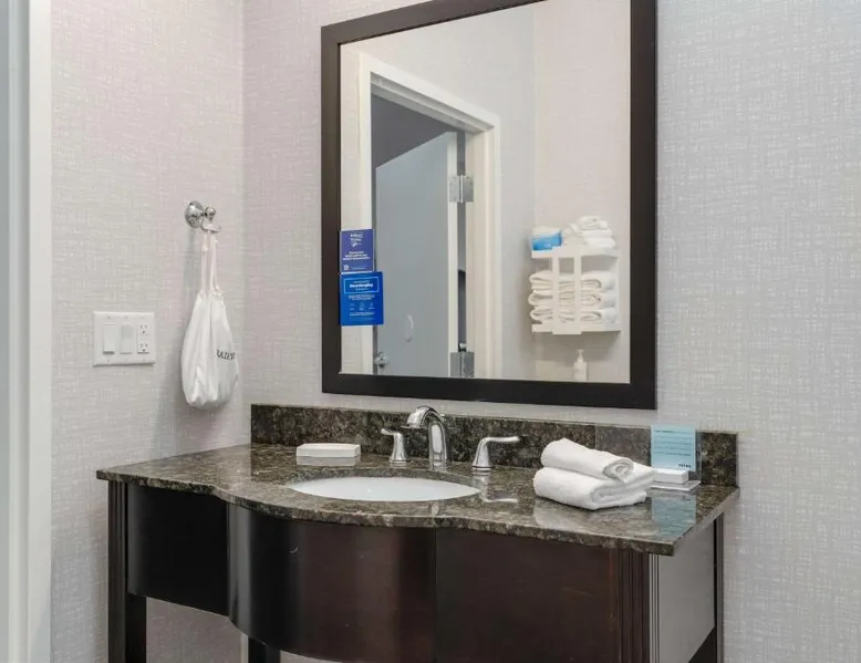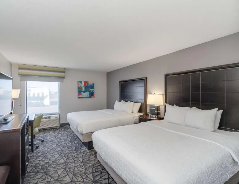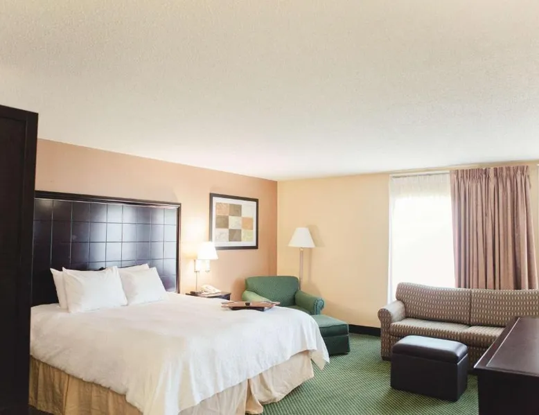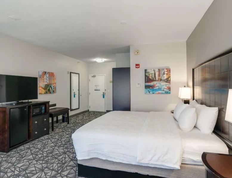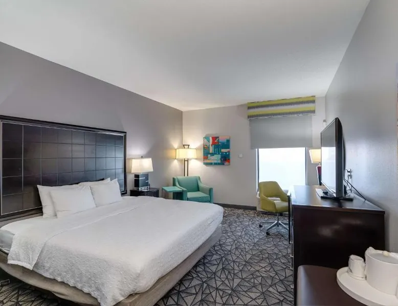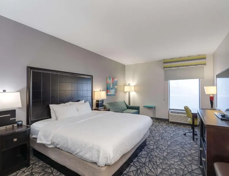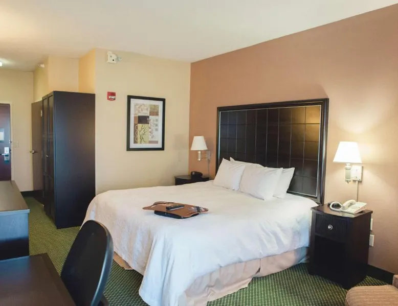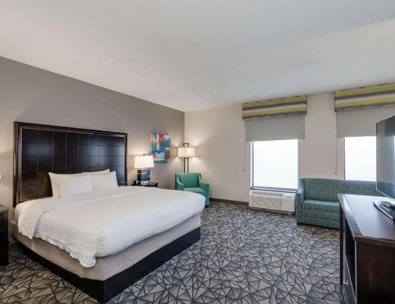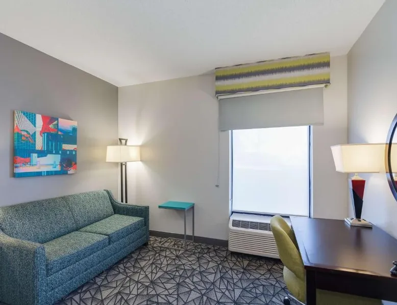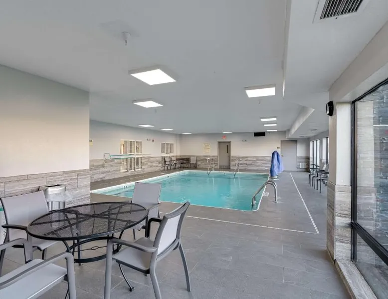 Comfortable Accommodations: Hampton Inn Bloomington West in Bloomington offers family rooms with free WiFi, ensuring a pleasant stay. Guests enjoy amenities such as a fitness room, elevator, 24-hour front desk, and free on-site parking. Leisure Facilities: The hotel features an indoor swimming pool and a relaxing hot tub. Additional amenities include a refrigerator, microwave, tea and coffee maker, hairdryer, sofa bed, shower, and TV. Convenient Location: Located 5.6 mi from Central Illinois Regional Airport, the hotel is near attractions like David Davis Mansion (3.7 mi), Milner Library (4.3 mi), and an ice-skating rink. Guests appreciate the bed comfort, room cleanliness, and attentive staff. This studio features a tea and coffee maker and a TV. The unit has 1 bed.