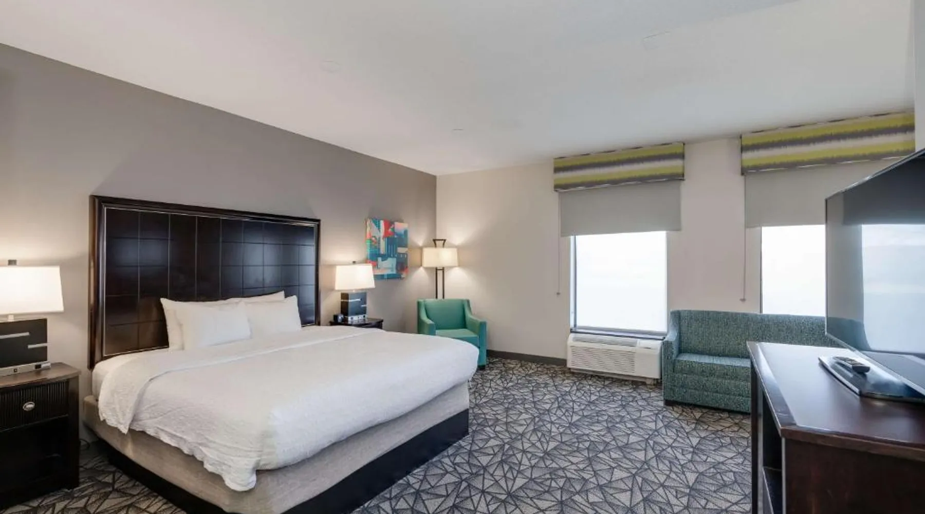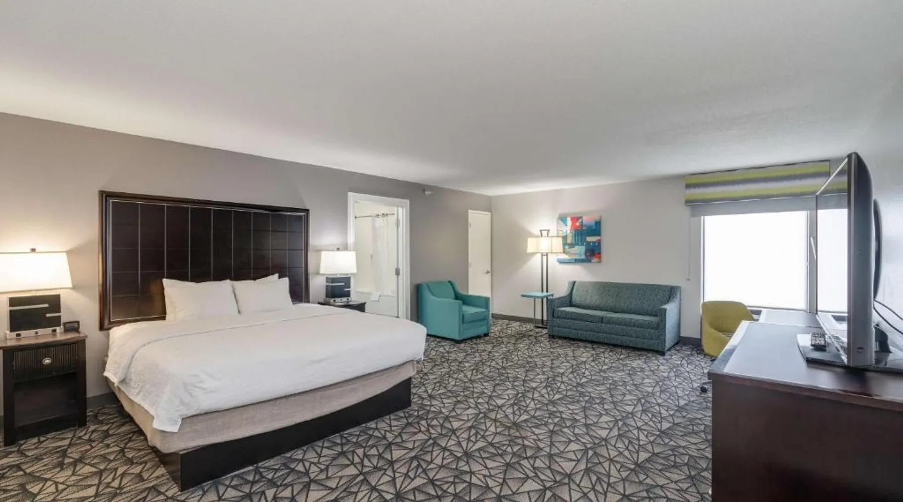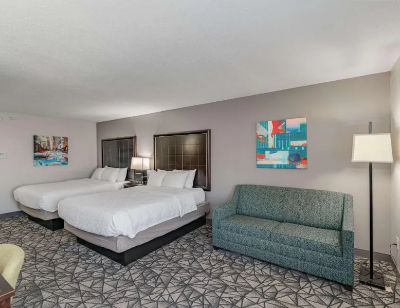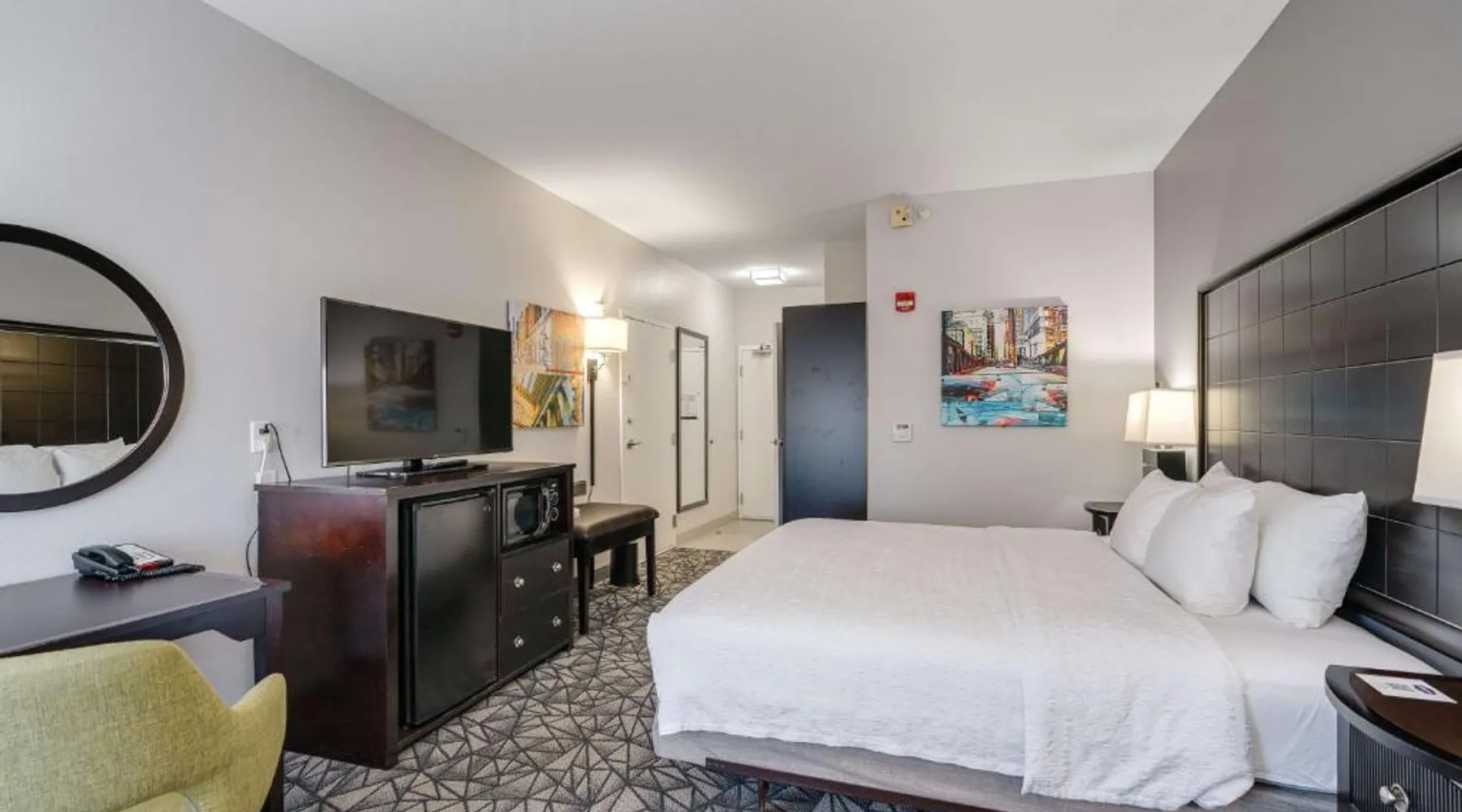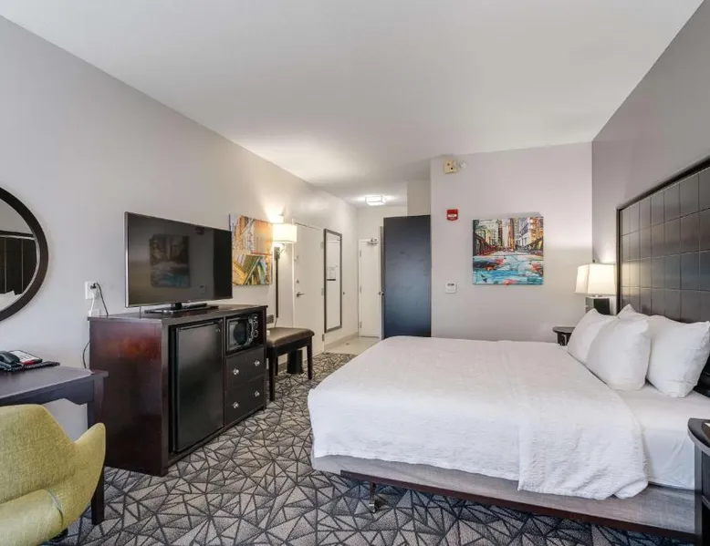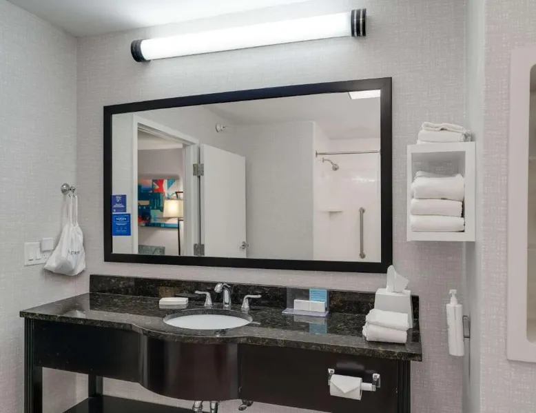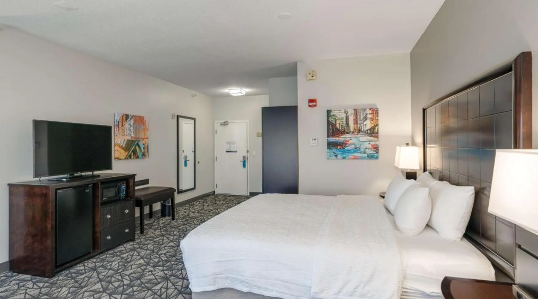 Comfortable Accommodations: Hampton Inn Bloomington West in Bloomington offers family rooms with free WiFi, ensuring a pleasant stay. Guests enjoy amenities such as a fitness room, elevator, 24-hour front desk, and free on-site parking. Leisure Facilities: The hotel features an indoor swimming pool and a relaxing hot tub. Additional amenities include a refrigerator, microwave, tea and coffee maker, hairdryer, sofa bed, shower, and TV. Convenient Location: Located 5.6 mi from Central Illinois Regional Airport, the hotel is near attractions like David Davis Mansion (3.7 mi), Milner Library (4.3 mi), and an ice-skating rink. Guests appreciate the bed comfort, room cleanliness, and attentive staff. This studio features a tea and coffee maker and a TV. The unit has 1 bed.