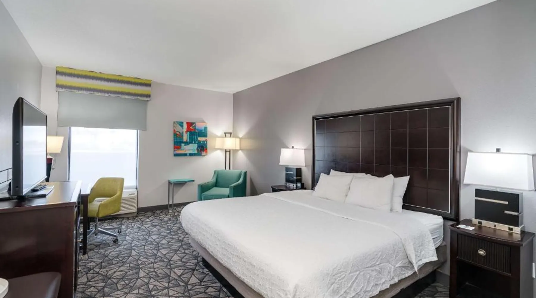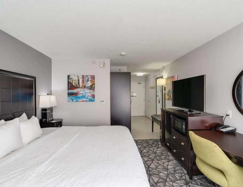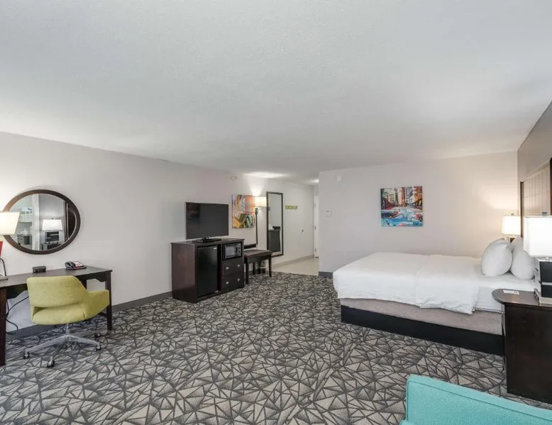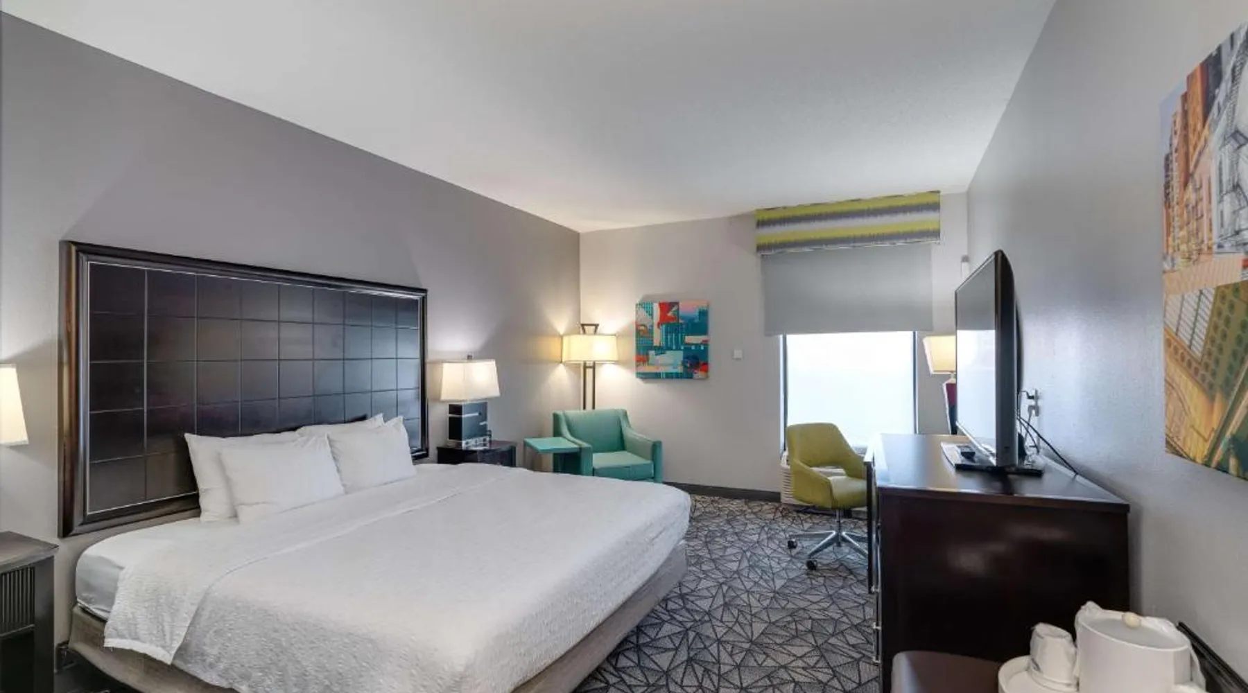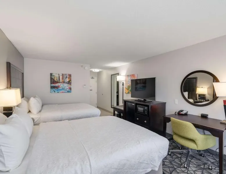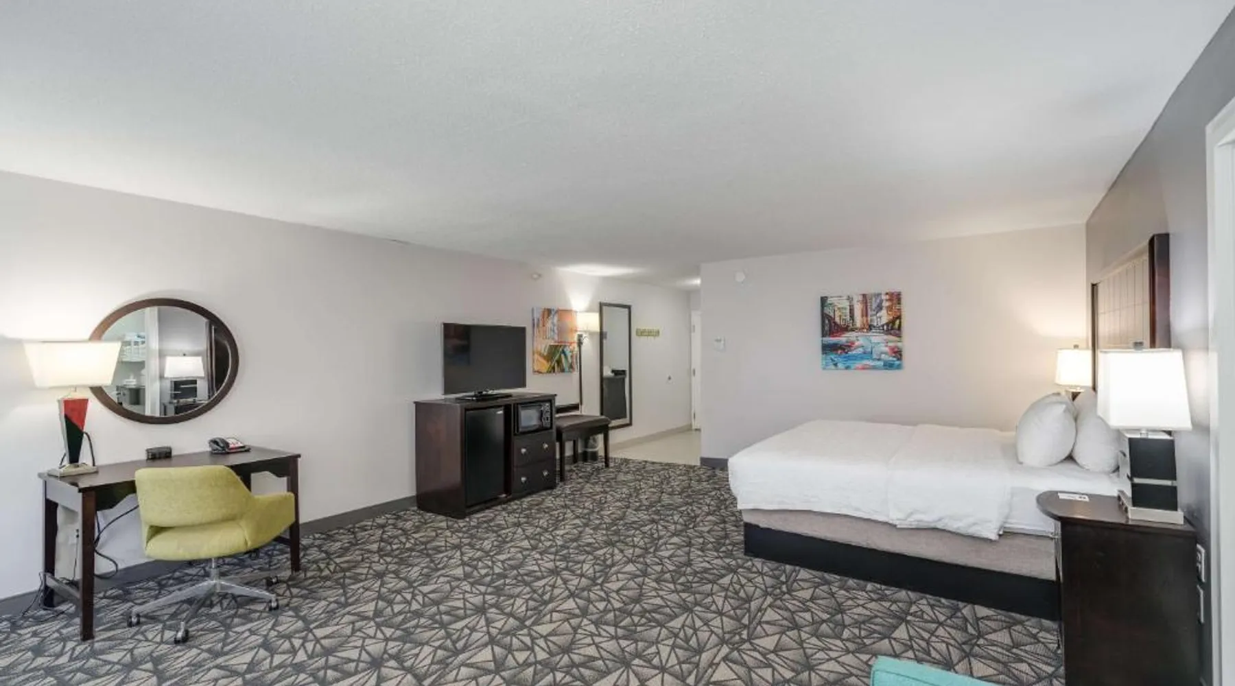 Comfortable Accommodations: Hampton Inn Bloomington West in Bloomington offers family rooms with free WiFi, ensuring a pleasant stay. Guests enjoy amenities such as a fitness room, elevator, 24-hour front desk, and free on-site parking. Leisure Facilities: The hotel features an indoor swimming pool and a relaxing hot tub. Additional amenities include a refrigerator, microwave, tea and coffee maker, hairdryer, sofa bed, shower, and TV. Convenient Location: Located 5.6 mi from Central Illinois Regional Airport, the hotel is near attractions like David Davis Mansion (3.7 mi), Milner Library (4.3 mi), and an ice-skating rink. Guests appreciate the bed comfort, room cleanliness, and attentive staff. This studio features a tea and coffee maker and a TV. The unit has 1 bed.