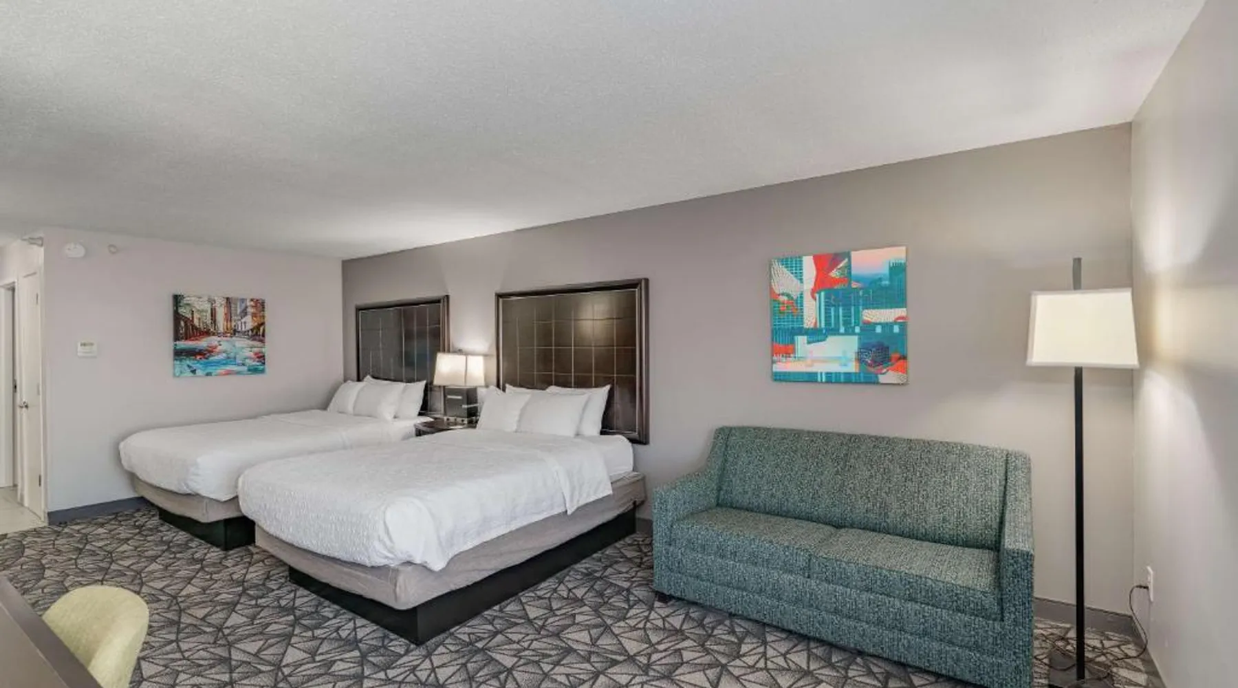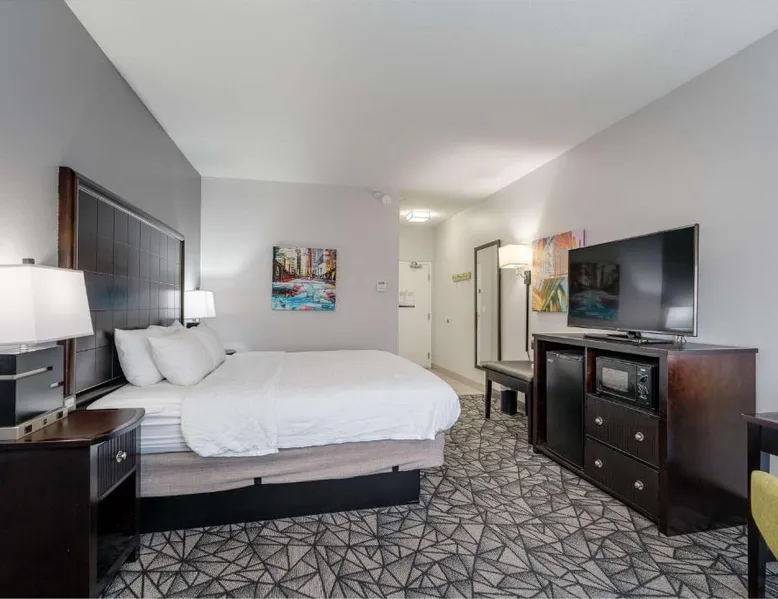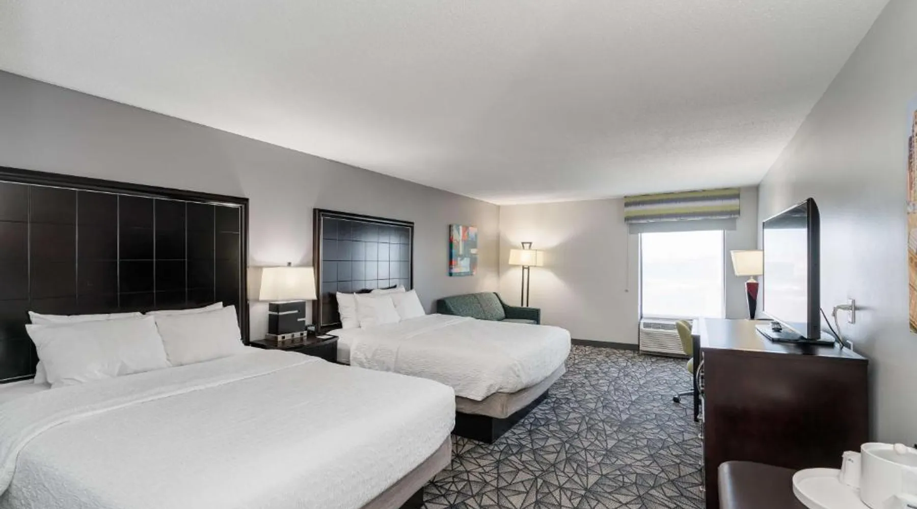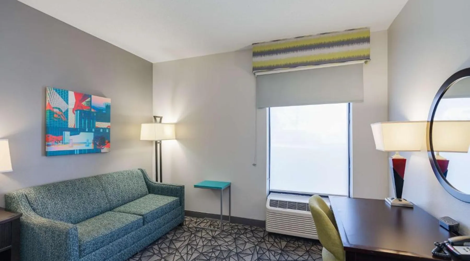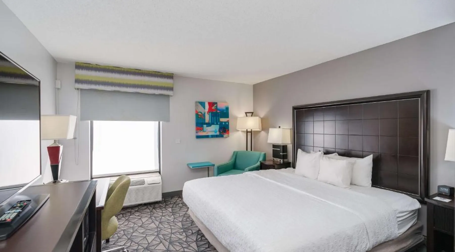 Comfortable Accommodations: Hampton Inn Bloomington West in Bloomington offers family rooms with free WiFi, ensuring a pleasant stay. Guests enjoy amenities such as a fitness room, elevator, 24-hour front desk, and free on-site parking. Leisure Facilities: The hotel features an indoor swimming pool and a relaxing hot tub. Additional amenities include a refrigerator, microwave, tea and coffee maker, hairdryer, sofa bed, shower, and TV. Convenient Location: Located 5.6 mi from Central Illinois Regional Airport, the hotel is near attractions like David Davis Mansion (3.7 mi), Milner Library (4.3 mi), and an ice-skating rink. Guests appreciate the bed comfort, room cleanliness, and attentive staff. This studio features a tea and coffee maker and a TV. The unit has 1 bed.