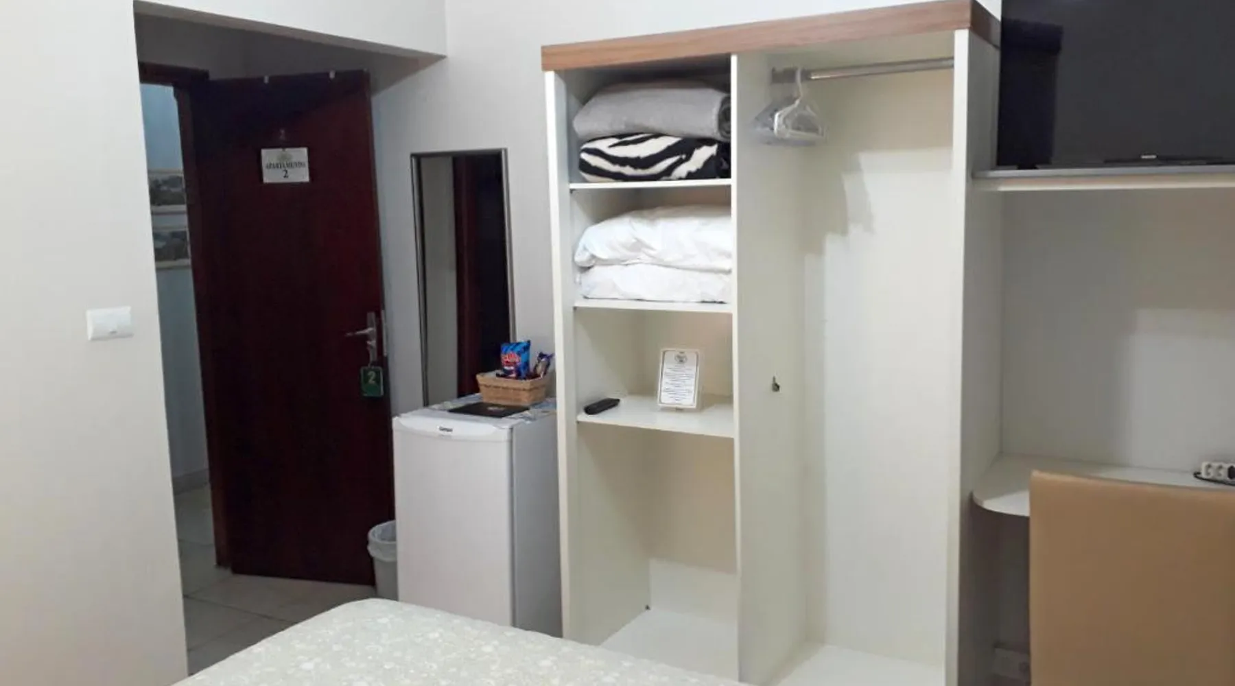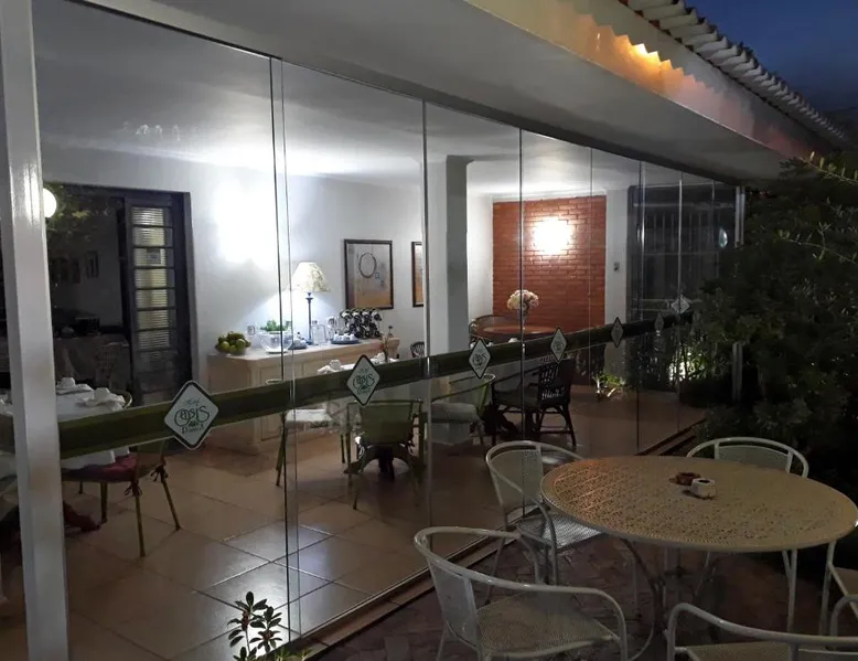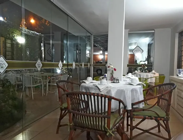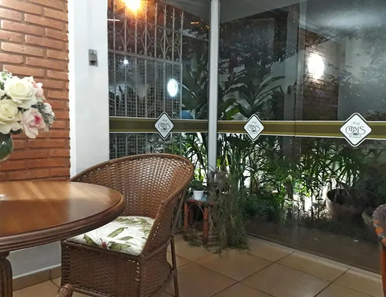 Comfortable Accommodations: Hotel Pousada Oasis Park in Jaboticabal offers family rooms with air-conditioning, private bathrooms, and garden or city views. Each room includes a work desk, TV, and free WiFi. Exceptional Facilities: Guests can relax on the sun terrace or in the garden. The property features a lounge, coffee shop, and outdoor seating area. Free on-site private parking is available. Comprehensive Services: The inn provides a 24-hour front desk, concierge service, and daily housekeeping. Additional amenities include a child-friendly buffet, room service, and luggage storage. Prime Location: Located 40 mi from Dr. Leite Lopes–Ribeirão Preto State Airport, the inn is highly rated for its breakfast, attentive staff, and comfortable rooms. This air-conditioned room features a small balcony, TV, mini-bar and private bathroom with a hot shower and hairdryer. Wi-Fi and parking are free.