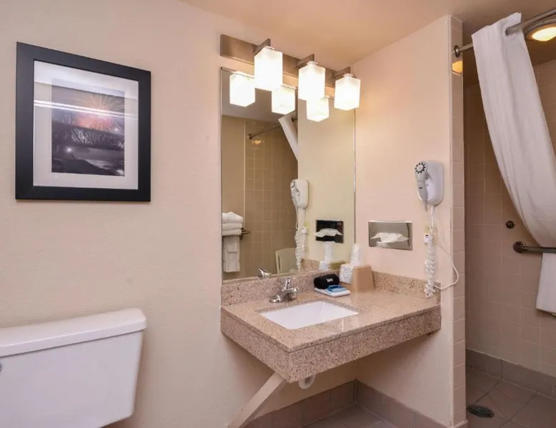 Comfortable Accommodations: Best Western Kelly Inn - Yankton in Yankton offers family rooms with air-conditioning, private bathrooms, and modern amenities. Each room includes a work desk, free WiFi, and a seating area. Exceptional Facilities: Guests can enjoy an indoor swimming pool, fitness center, hot tub, and free on-site parking. Additional services include a 24-hour front desk, housekeeping, and room service. Dining Experience: The family-friendly restaurant serves American cuisine in a modern ambiance. Breakfast options include continental and American styles. Convenient Location: Located 75 mi from Sioux Gateway Airport, the hotel is pet-friendly and welcomes guests with pets. The spacious suite has 1 separate bedroom and 1 bathroom with a bath or a shower and a hairdryer. The air-conditioned suite features a flat-screen TV with cable channels, a coffee machine, a sofa, a carpeted floor as well as pool views. The unit has 2 beds.