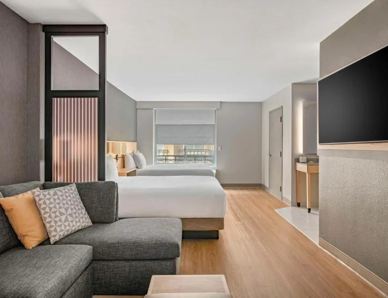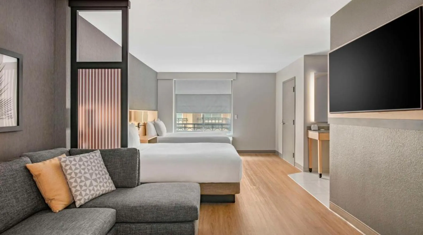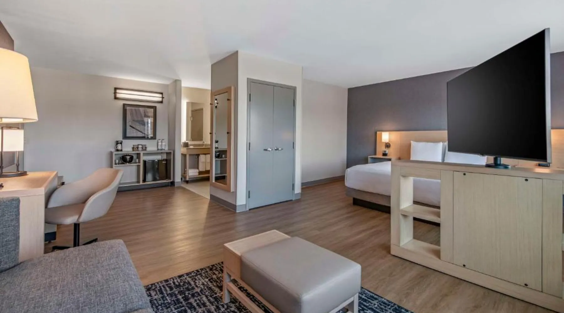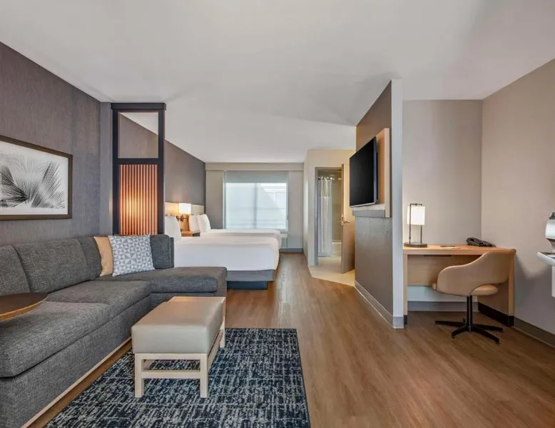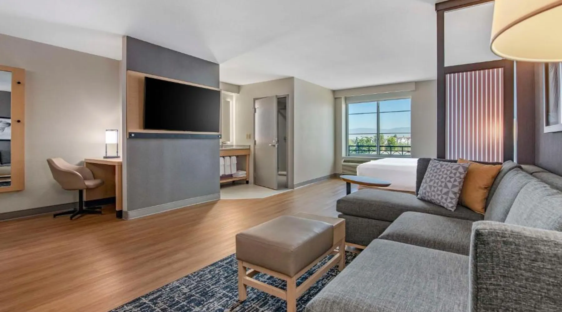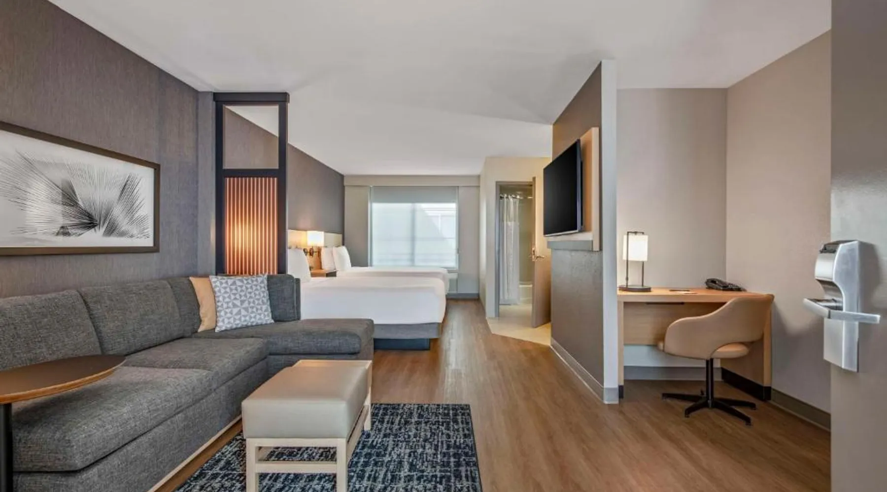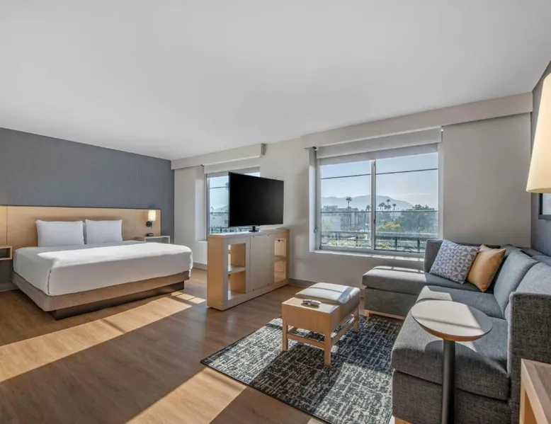 Located in Riverside in the Inland Empire region of Southern California, Hyatt Place Riverside Downtown offers an outdoor swimming pool and contemporary rooms with free WiFi. Each air-conditioned room at this pet-friendly hotel features an HDTV, a refrigerator and a coffee machine. The private bathrooms include free toiletries and a hairdryer. A happy hour is offered at the onsite Coffee to Cocktails Bar and guests can stop by the 24/7 Gallery Menu & Market. Guests of Hyatt Place Riverside Downtown have access to a 24-hour StayFit gym and a 24-hour front desk. A business center is also available. The Riverside Art Museum is 8 minutes’ walk from the property. California Citrus State Historic Park is 9.9 mi away from Hyatt Place Riverside Downtown. This air-conditioned room features a sofa bed, an HDTV and a coffee machine. The private bathroom includes a hairdryer.