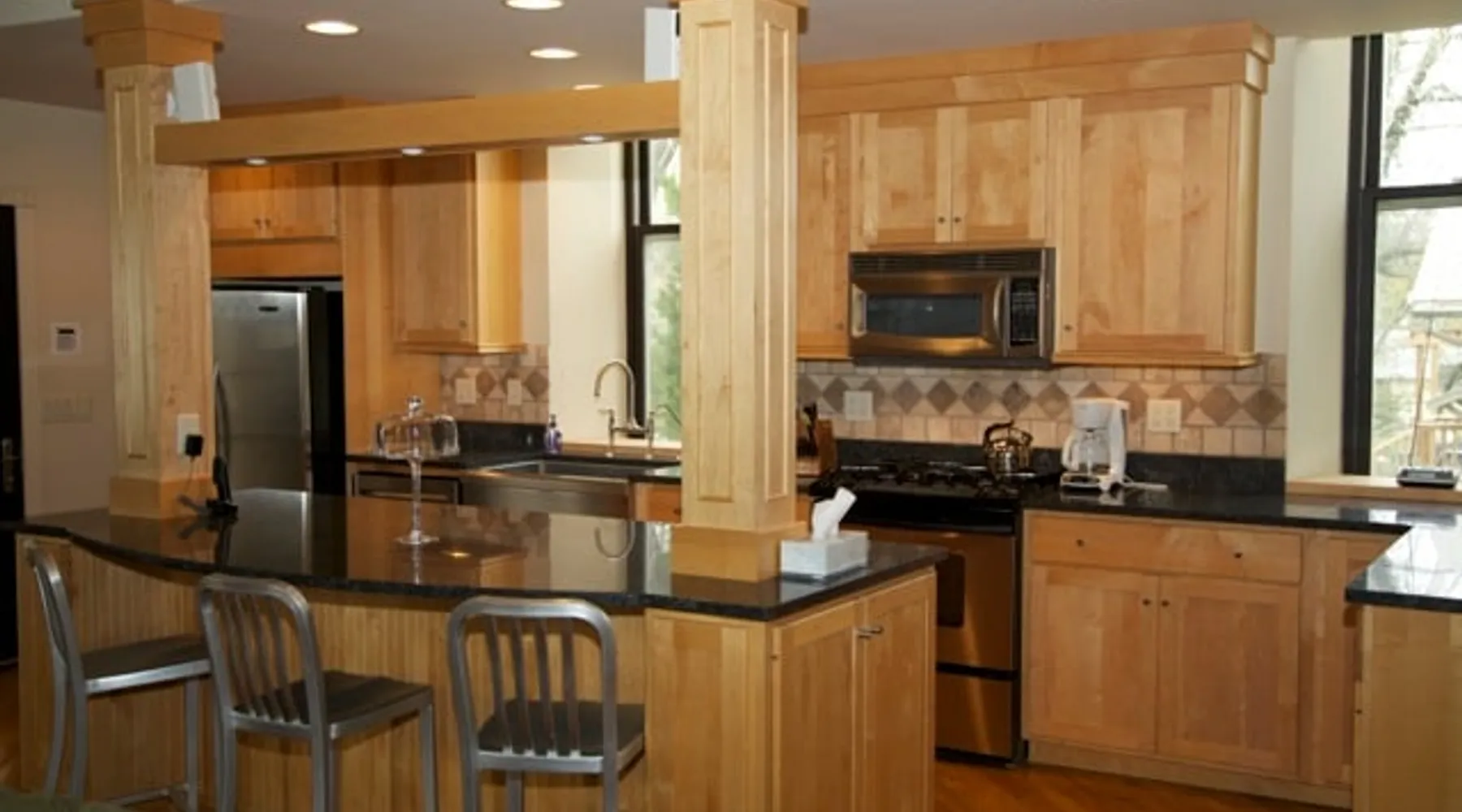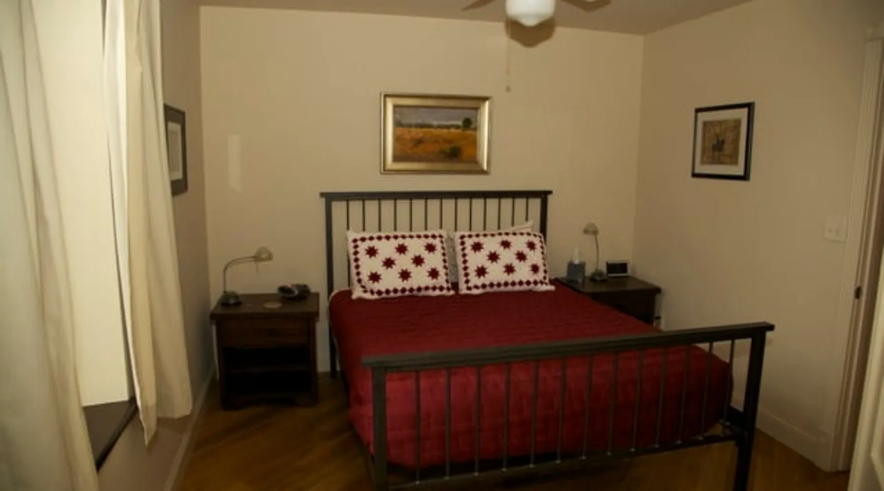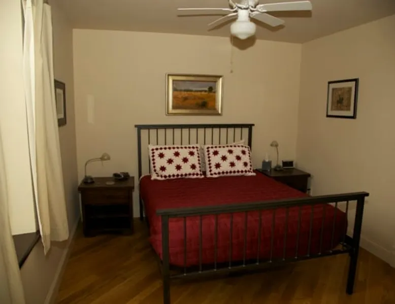 Come to church this weekend . . . The Church Guesthouse in Cottonwood Falls that is! The Church is an artfully revitalized Presbyterian Church built in 1885 which now has four bedrooms and 2-1/2 baths and will sleep up to 10 adults. Two of the bedrooms ( with queen beds) are downstairs along with a bath and a half downstairs. 2 bedrooms are upstairs (two twins and one with a full size bed) the loft has two twins with a full bath upstairs. Parties and events are not allowed. The space Come to church this weekend . . . The Church Guesthouse in Cottonwood Falls that is! The Church is an artfully revitalized Presbyterian Church built in 1885 which now has four bedrooms and 2-1/2 baths and will sleep up to 10 adults. Two of the bedrooms ( each with a queen bed) are downstairs along with one full bath and a half bath downstairs. 2 bedrooms are upstairs (two twins and one with a full size bed) the loft has two twins with a full bath upstairs. Parties and events are not allowed. The "Church" started out as a Presbyterian church in 1885. Used as many things throughout its history it was converted to a home in 2005. It is a wonderful open space that accommodates 10 for sleeping . Guests have access to the whole building which includes the kitchen and two living areas as well as a large deck with two grills and a table. When the guests estimate that they are 20 to 30 minutes away we ask that they call us so that we can go unlock the property. If they end up coming in later than anticipated,they can just let us know. We can leave the property unlocked so that in the event they arrive before we do, they can go ahead and start setting up shop and begin enjoying their time at The Lark Inn. The Church is literally just steps from the historic Chase County Courthouse which is situated at the end of the quaint, brick-paved historic shopping district of Cottonwood Falls. At sunset, you can see the golden sunlight illuminating the clock tower and flag of the Courthouse from the front porch of The Church. The property is appointed with a large open kitchen which includes a gas oven and stove, microwave, ice maker in addition to a large side by side fridge. The downstairs bedrooms have queen size beds, one of the upstairs bedrooms has a full-size bed and the other bedroom has a twin and a trundle bed. Large bathrooms with a shower downstairs as well as a half bath ; the upstairs bath has a tub/shower. Guest access The entire house Other things to note The back deck is great for gathering and you can step from the kitchen onto the back deck for eating in the wonderful peaceful surroundings. It has two charcoal grills on the back porch. We have a designated area for working with a desk and a computer monitor. no events or parties please