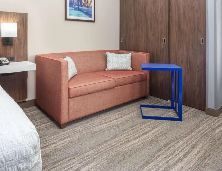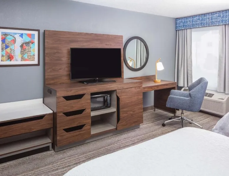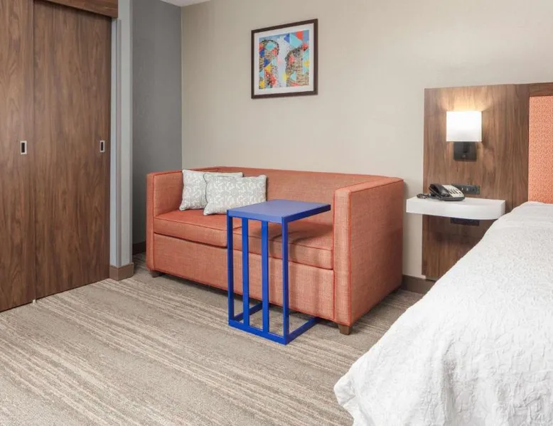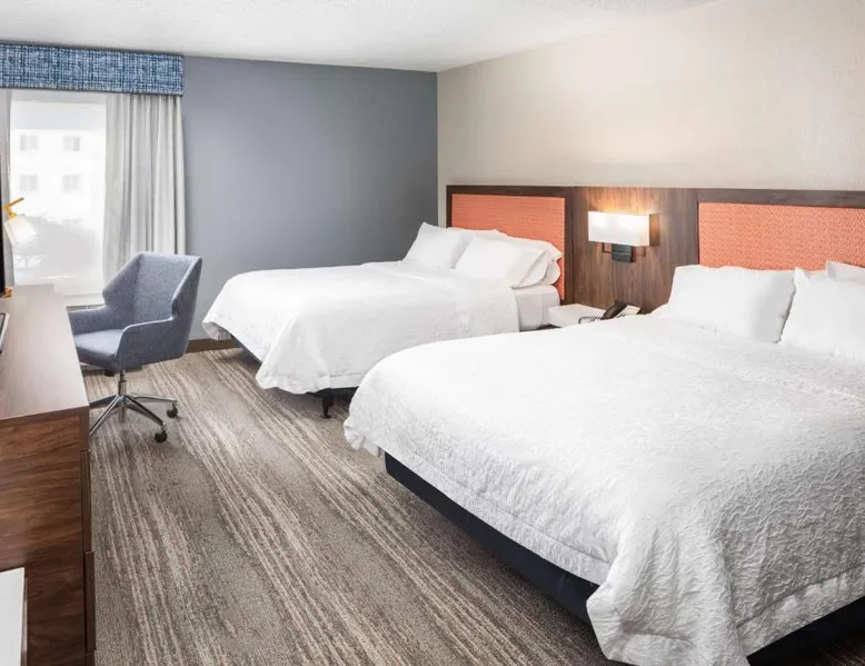 Comfortable Accommodations: Hampton Inn Joliet-Plainfield I-55 in Joliet offers family rooms with sofa beds, free WiFi, and amenities such as tea and coffee makers, hairdryers, refrigerators, free toiletries, microwaves, showers, and TVs. Facilities and Services: Guests enjoy an indoor swimming pool, fitness center, and free on-site parking. Additional services include a 24-hour front desk, daily housekeeping, business area, and barbecue facilities. Dining and Location: A buffet breakfast is served each morning. The hotel is 30 mi from Midway International Airport and near attractions like Joliet Area Historical Museum (6.2 mi) and Chicagoland Speedway (12 mi). Highly rated for staff, cleanliness, and comfort. This quadruple room features a tea and coffee maker and a TV. The unit has 2 beds.