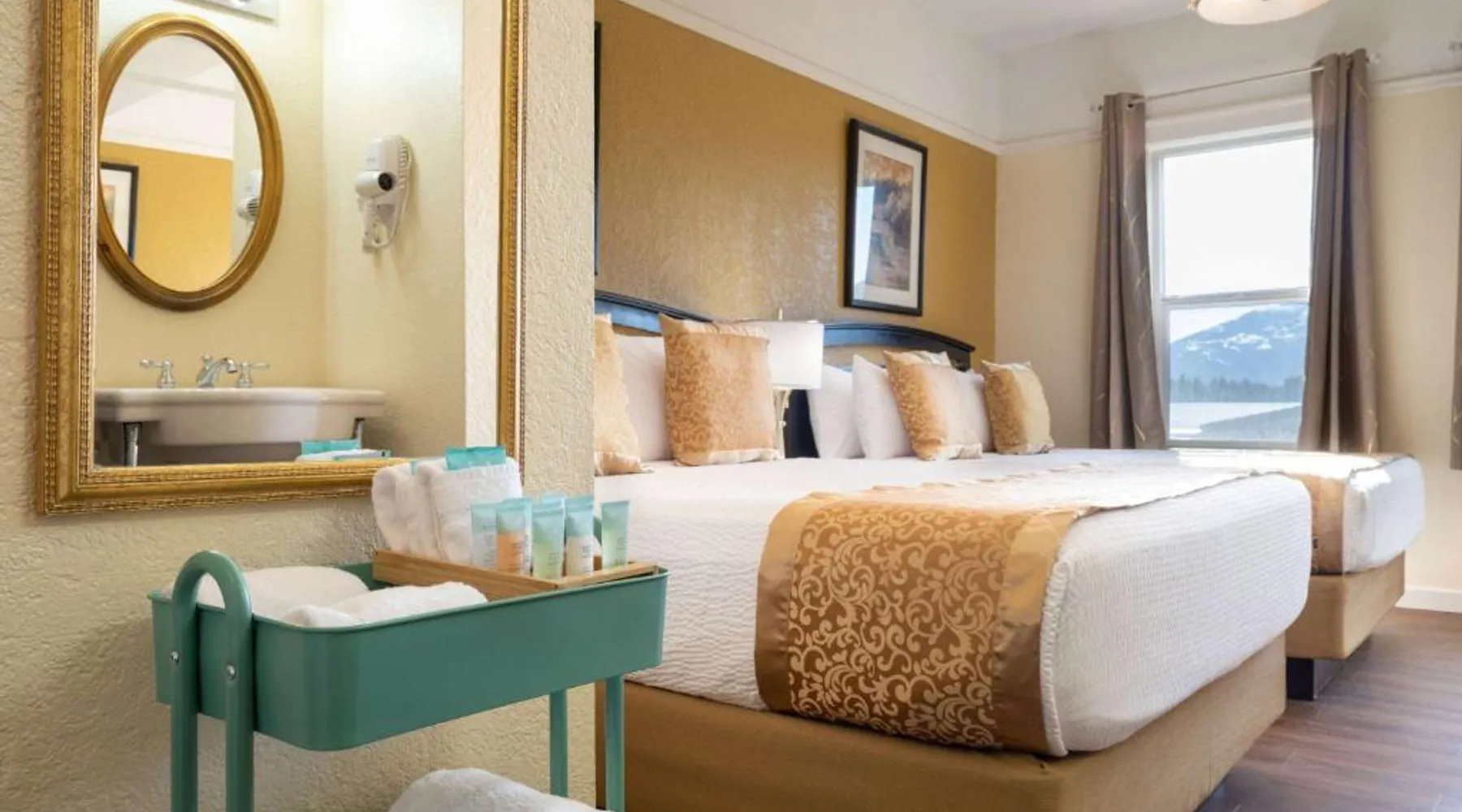 Located in downtown Ketchikan, this boutique hotel is a 5-minutes’ walk to the Great Alaskan Lumberjack Show. It offers freezer space for guests’ freshly-caught fish and an on-site seafood restaurant. The guest rooms at Gilmore Hotel, Trademark Collection by Wyndham are equipped with flat-screen TVs and free Wi-Fi. Room service is available. Annabelle’s Restaurant is located inside the Gilmore Hotel, Trademark Collection by Wyndham and specializes in Alaskan seafood dishes and desserts. It includes a full bar and is open for lunch and dinner. A business center is part of Gilmore Hotel, Trademark Collection by Wyndham. The property also offers laundry and dry cleaning services. A free courtesy van goes to and from the Alaska Marine Highway Ferry System and the Ketchikan side of the Ketchikan International Airport. Family Air Tours is half a mile from this property. The Alaska Rain Forest Sanctuary is 15 minutes away. Offering free toiletries, this double room includes a private bathroom with a shower and a hairdryer. This double room offers a wardrobe and a flat-screen TV.