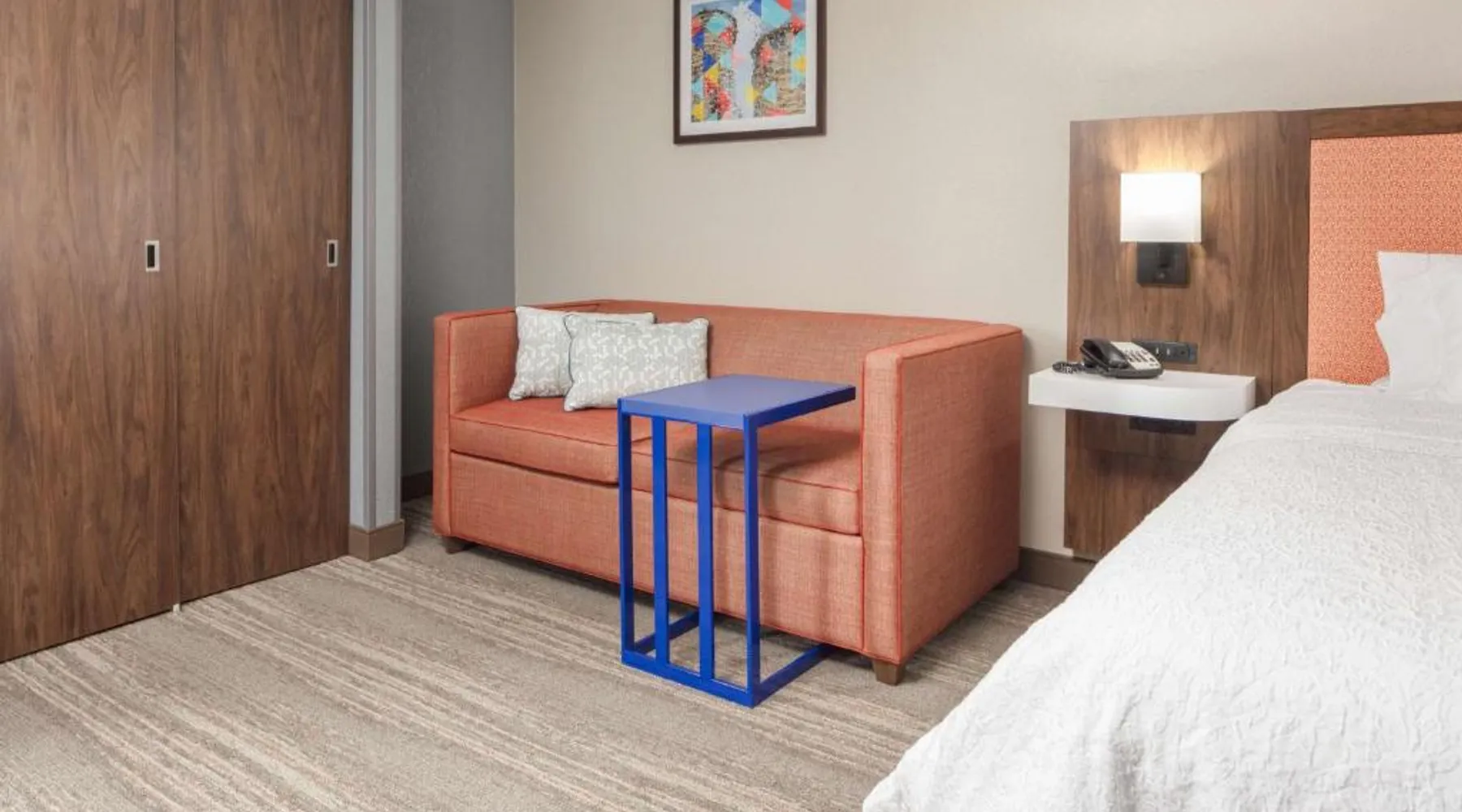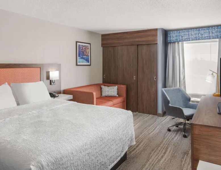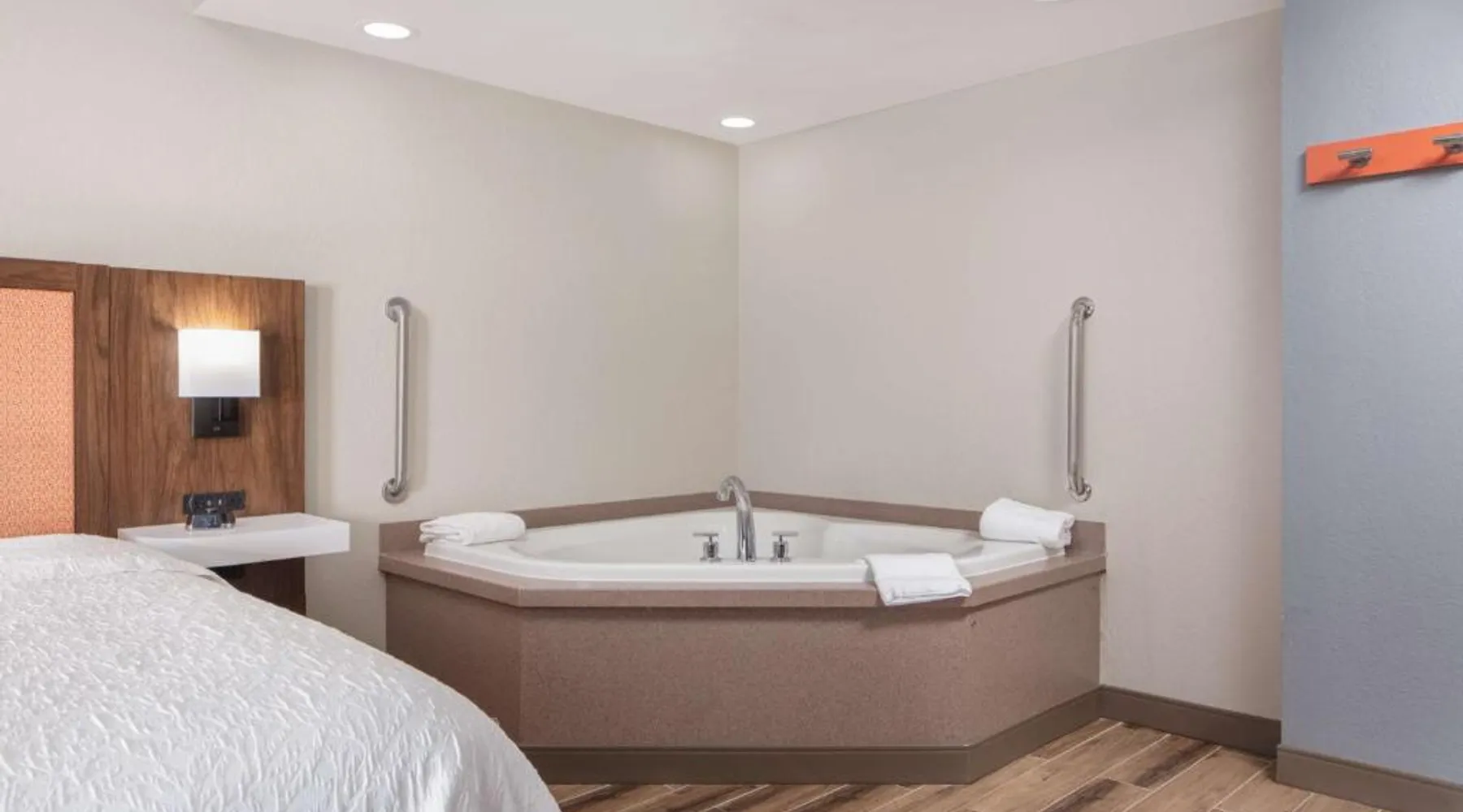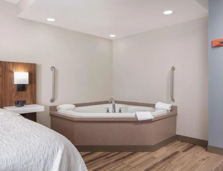 Comfortable Accommodations: Hampton Inn Joliet-Plainfield I-55 in Joliet offers family rooms with sofa beds, free WiFi, and amenities such as tea and coffee makers, hairdryers, refrigerators, free toiletries, microwaves, showers, and TVs. Facilities and Services: Guests enjoy an indoor swimming pool, fitness center, and free on-site parking. Additional services include a 24-hour front desk, daily housekeeping, business area, and barbecue facilities. Dining and Location: A buffet breakfast is served each morning. The hotel is 30 mi from Midway International Airport and near attractions like Joliet Area Historical Museum (6.2 mi) and Chicagoland Speedway (12 mi). Highly rated for staff, cleanliness, and comfort. Boasting free Wi-Fi and a flat-screen TV with cable channels, this room is equipped with tea and coffee-making facilities, a refrigerator and a microwave.