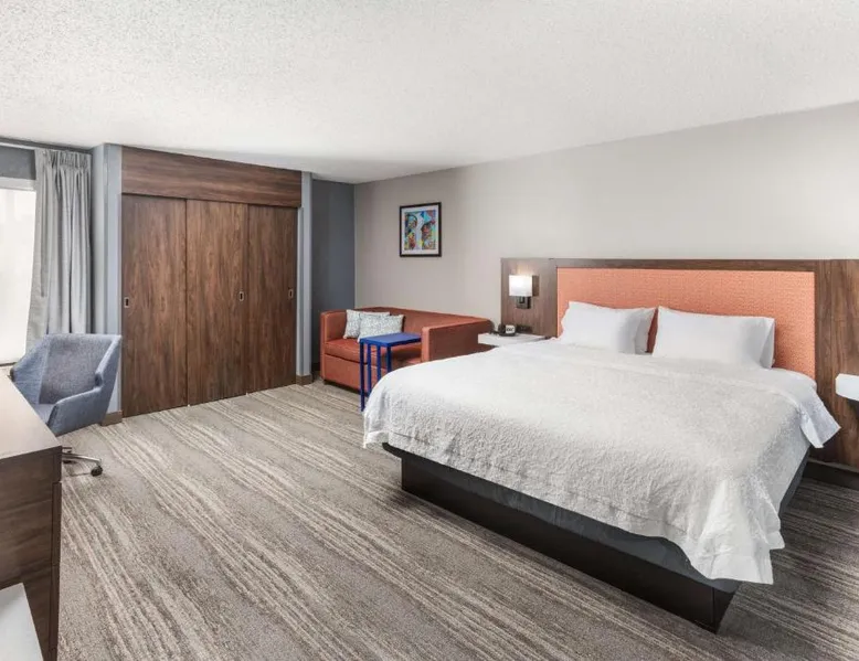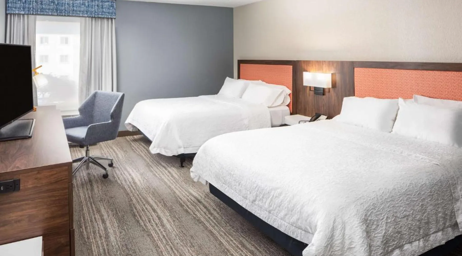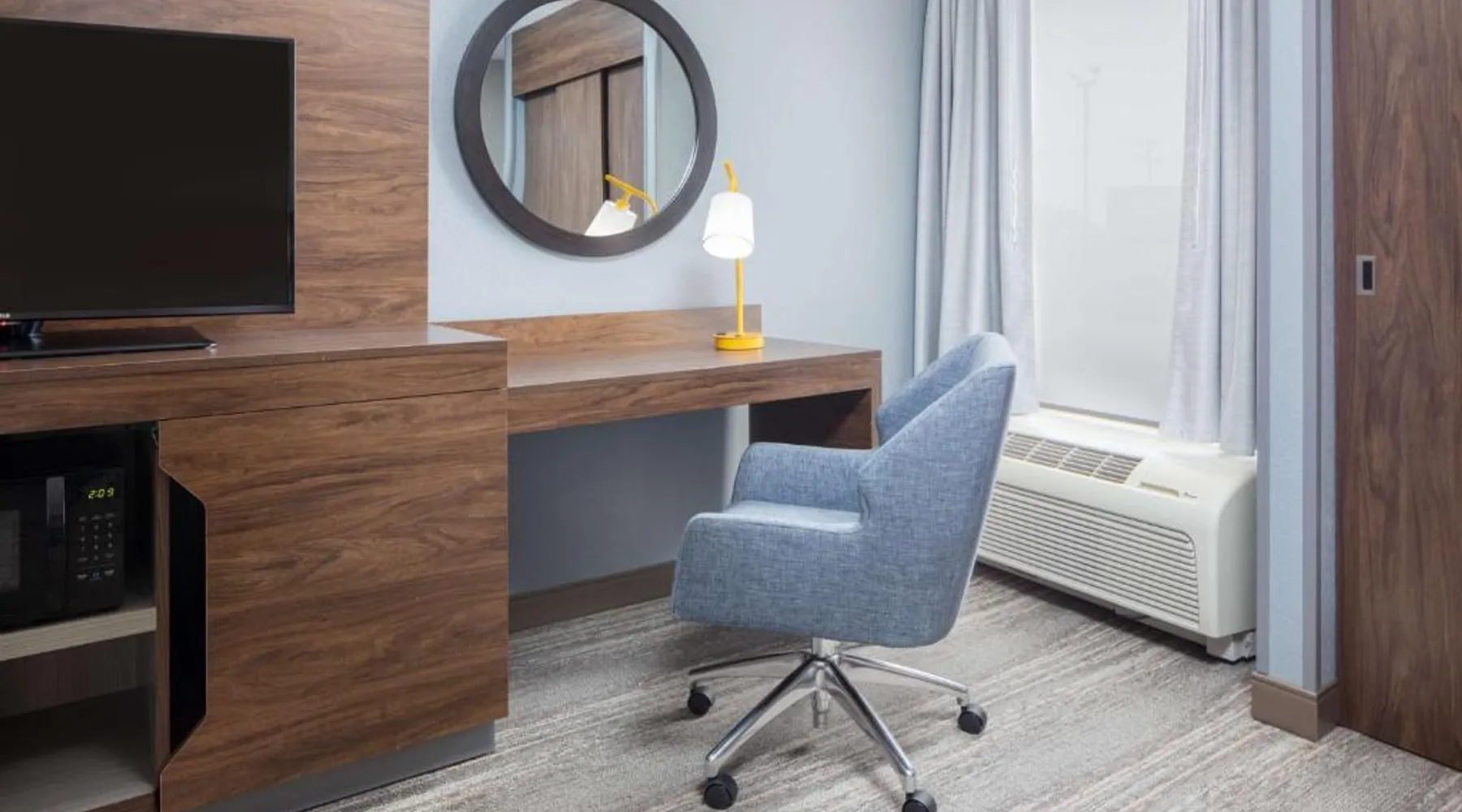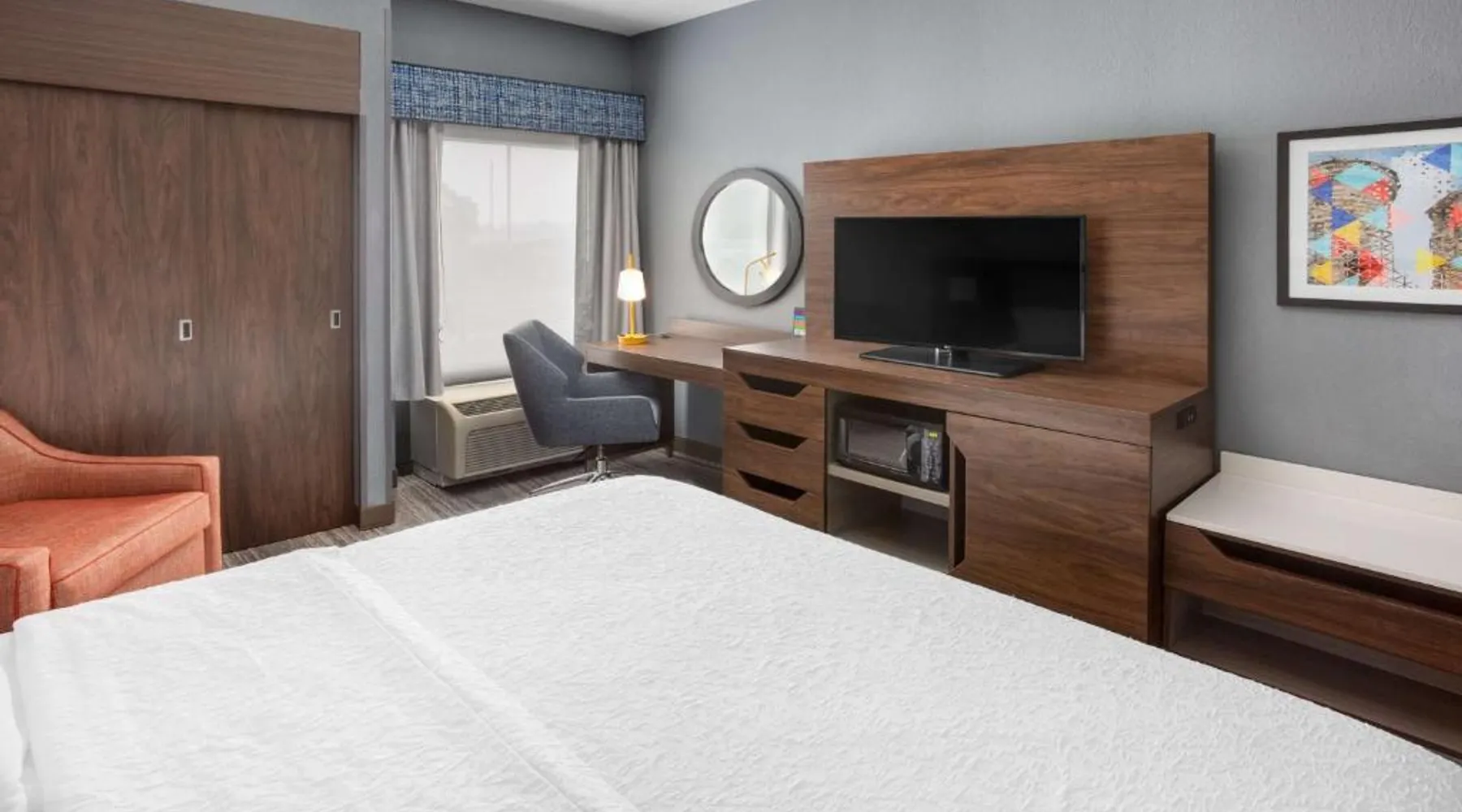 Comfortable Accommodations: Hampton Inn Joliet-Plainfield I-55 in Joliet offers family rooms with sofa beds, free WiFi, and amenities such as tea and coffee makers, hairdryers, refrigerators, free toiletries, microwaves, showers, and TVs. Facilities and Services: Guests enjoy an indoor swimming pool, fitness center, and free on-site parking. Additional services include a 24-hour front desk, daily housekeeping, business area, and barbecue facilities. Dining and Location: A buffet breakfast is served each morning. The hotel is 30 mi from Midway International Airport and near attractions like Joliet Area Historical Museum (6.2 mi) and Chicagoland Speedway (12 mi). Highly rated for staff, cleanliness, and comfort. Boasting free Wi-Fi and a flat-screen TV with cable channels, this room is equipped with tea and coffee-making facilities, a refrigerator and a microwave.
