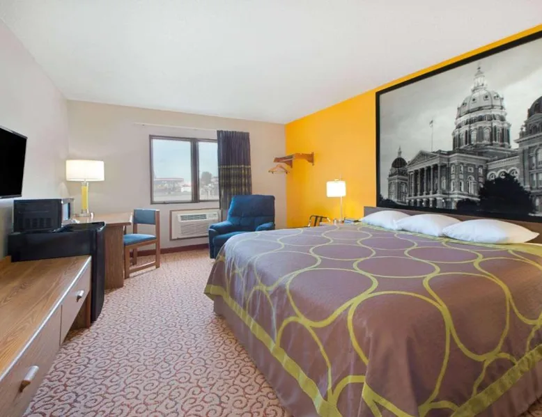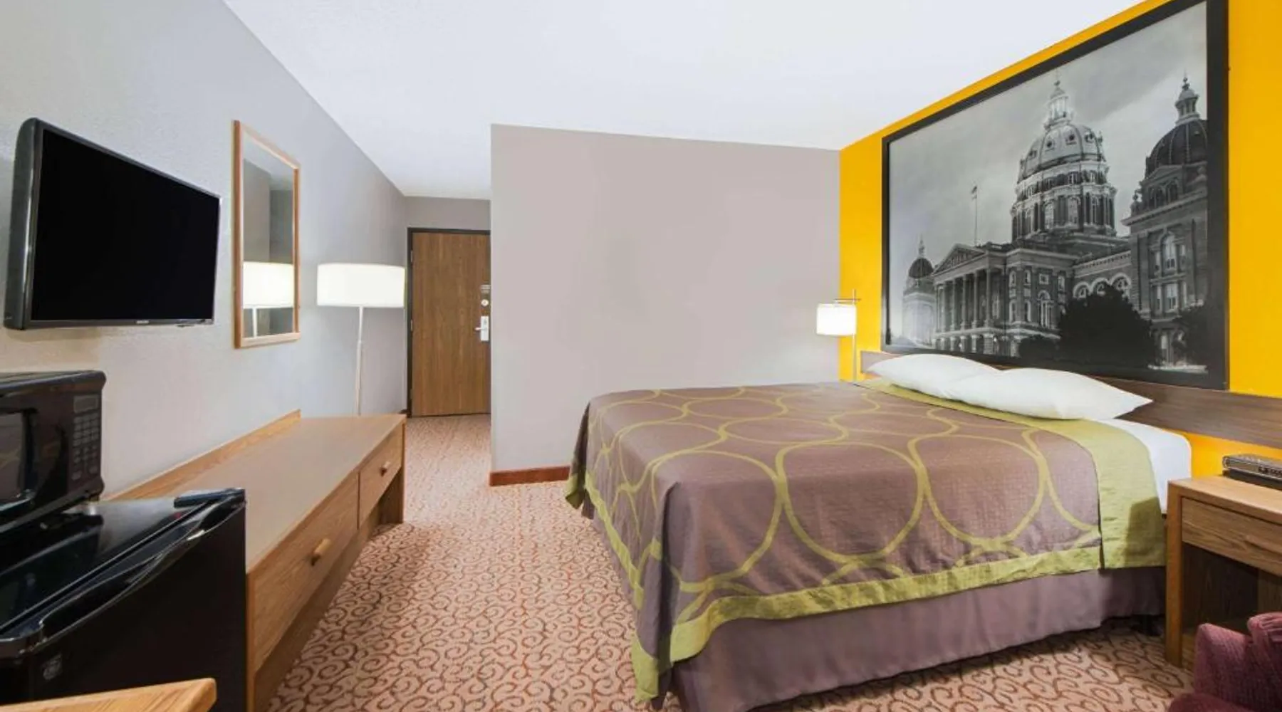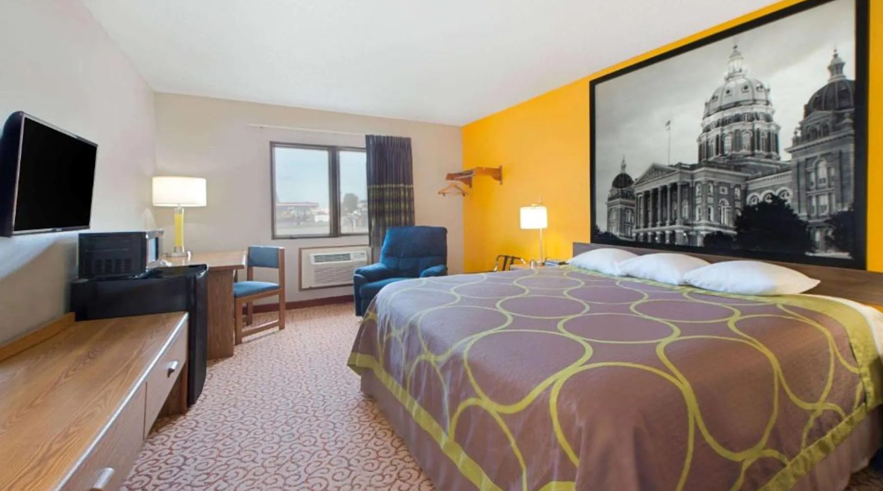 Located off Highway 163, this Pella, Iowa motel offers a daily continental breakfast and rooms with free Wi-Fi and a cable TV. The Scholte House Museum and Gardens is 5 minutes’ drive away. A work desk and seating area are provided in all rooms at the Super 8 Pella. A small refrigerator is also included in each guest room. Fax and photocopy services are available at the 24-hour front desk. Vending machines with both snacks and drinks are featured on-site at Pella Super 8. Pella Golf & Country Club and Central College are within 2 miles of this hotel. Lake Red Rock, Red Rock Dam and Howell Station Recreation Area are within 12 minutes’ drive of the property. The air-conditioned suite features 1 bedroom and 1 bathroom with a bath and a shower. The suite provides a safe deposit box and heating. The unit offers 2 beds.