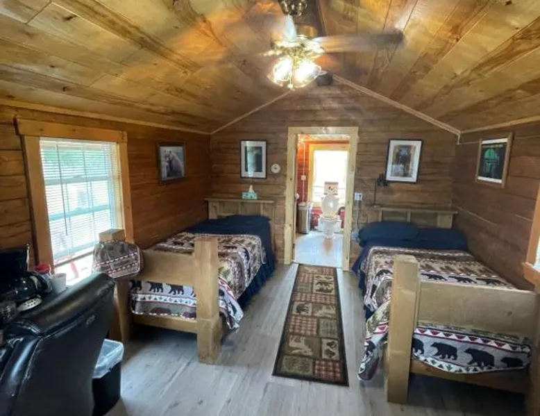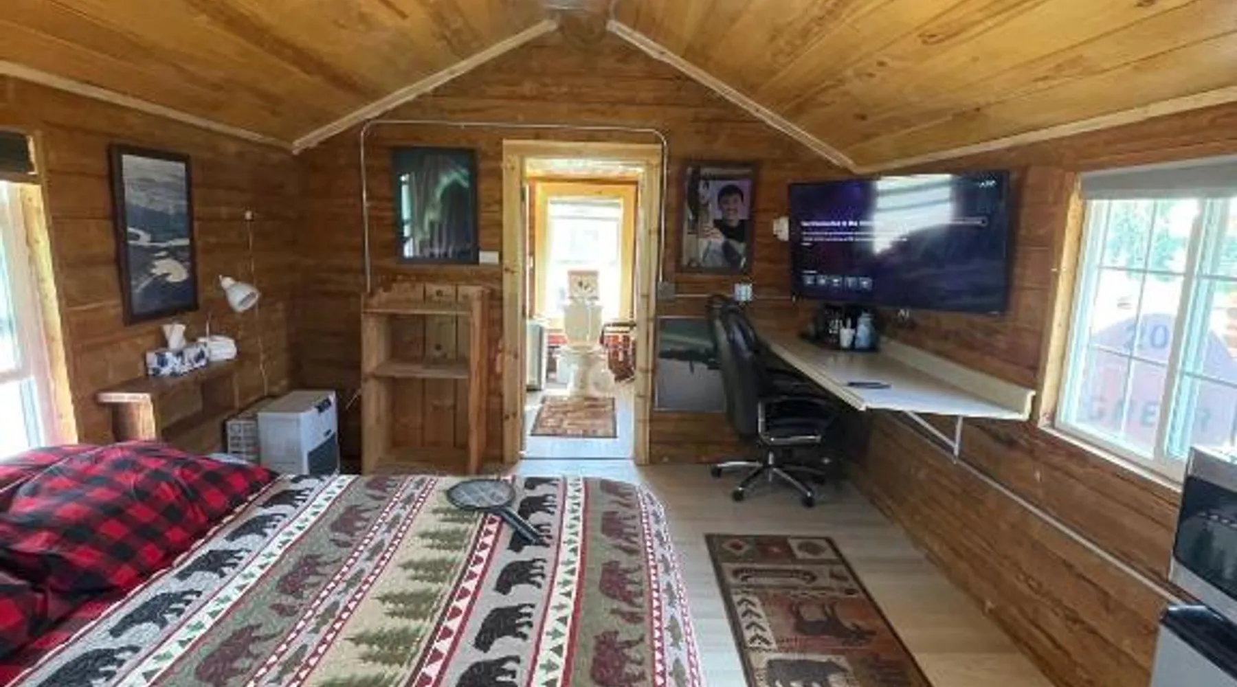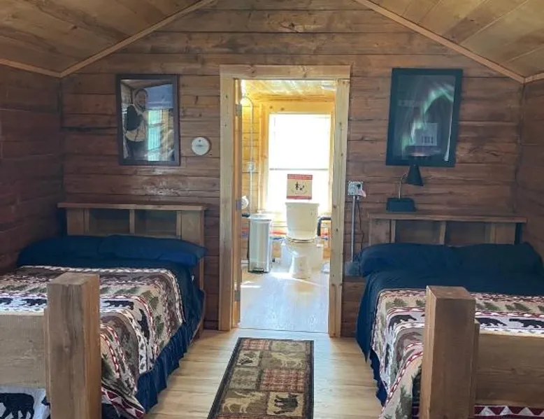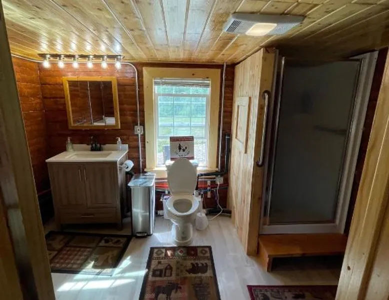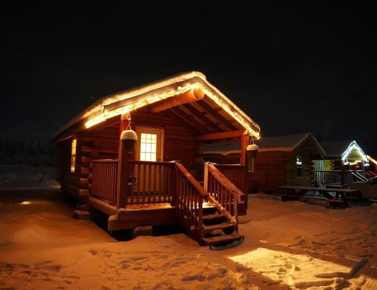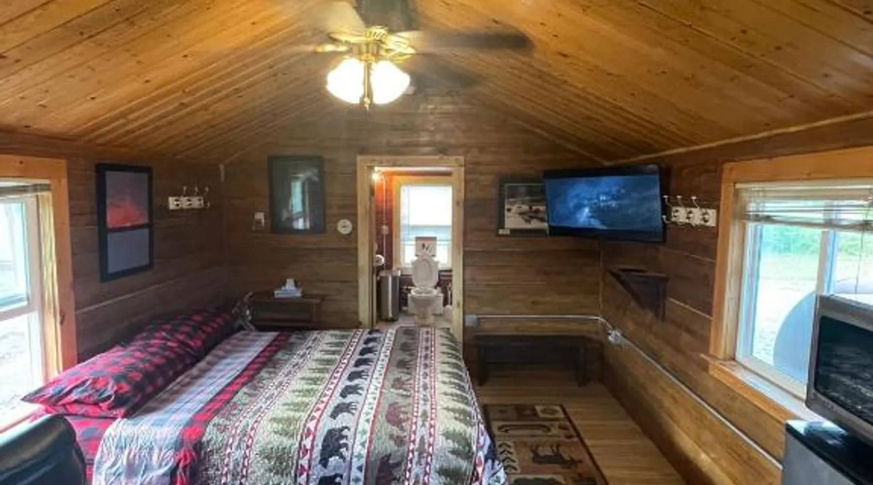 Comfortable Accommodations: Alaska Log Cabins on the Pond in North Pole offers a guest house with free WiFi, private check-in and check-out services, and free on-site parking. Outdoor Amenities: Guests can enjoy an outdoor fireplace, seating area, picnic area, and bicycle parking. The property features a balcony, patio, and lake views. Modern Facilities: Each unit includes a bath with a walk-in shower, tea and coffee maker, refrigerator, microwave, TV, and soundproofing. Additional amenities include a kitchenette, kitchen, dining table, and work desk. Local Attractions: Fairbanks International Airport is 14 mi away, and the University of Alaska Fairbanks is 15 mi from the property. The bungalow offers a private entrance, soundproof walls, a balcony with lake views as well as a shared bathroom boasting a walk-in shower. The unit has 1 bed.