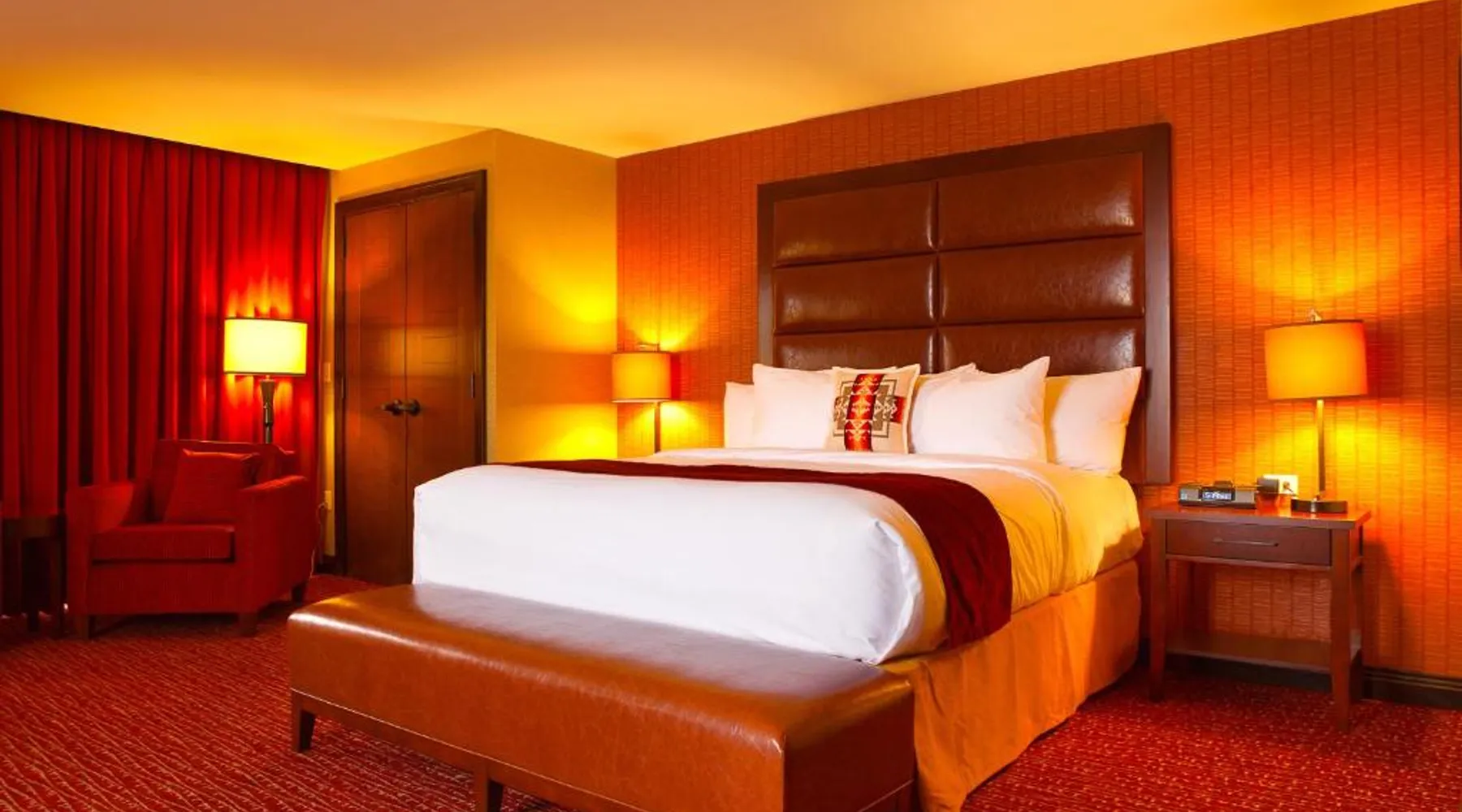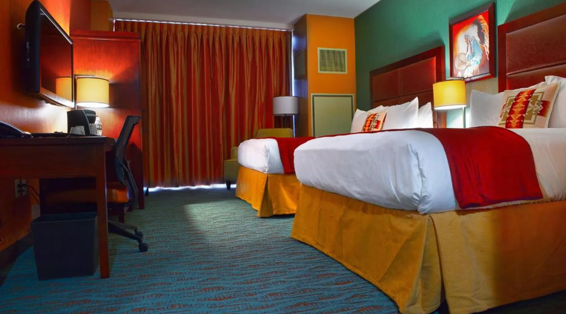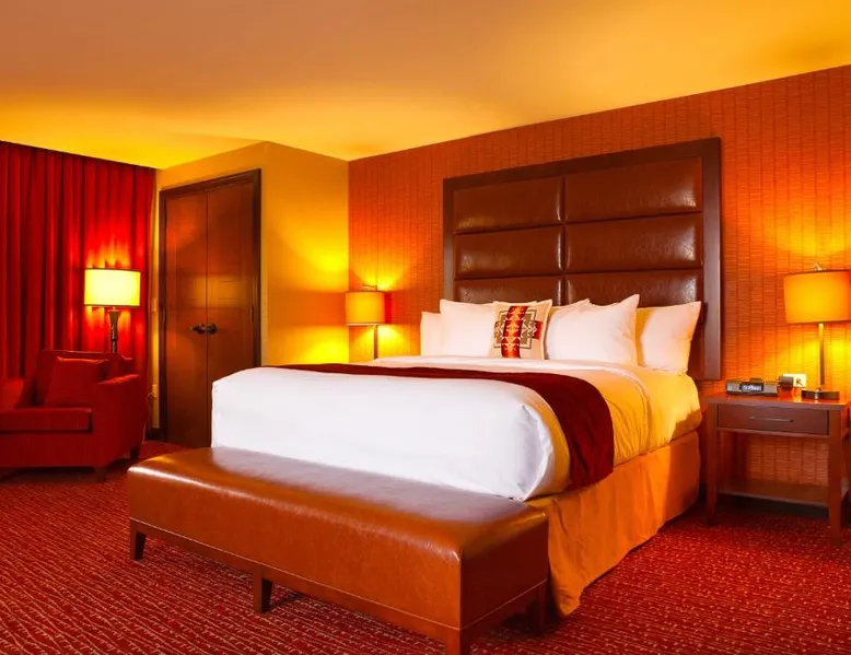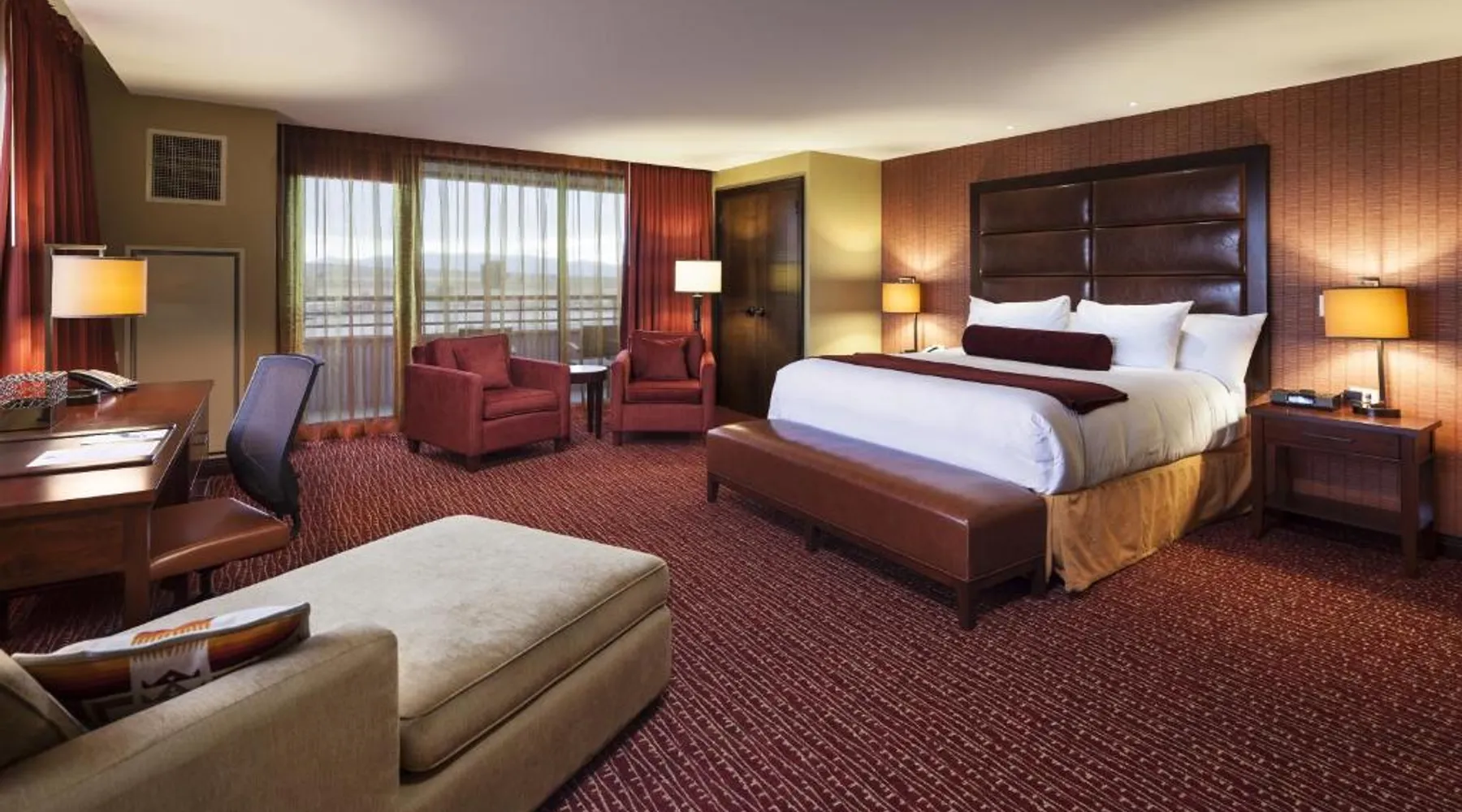 Comfortable Accommodations: Shoshone-Bannock Hotel and Event Center in Fort Hall offers comfortable rooms with free WiFi, air-conditioning, and modern amenities. Guests appreciate the room cleanliness and comfort. Leisure Facilities: The hotel features a spa, fitness center, indoor swimming pool, and an outdoor fireplace. Additional facilities include a casino, hot tub, and a 24-hour front desk. Dining Options: A restaurant and bar provide dining options, while a child-friendly buffet caters to families. Free on-site parking and a business area enhance the stay. Location and Attractions: Located 13 mi from Pocatello Regional Airport and 14 mi from the L.E. And Thelma E. Stephens Performing Arts Center, the hotel offers easy access to local attractions. This air-conditioned room features a Smart TV and Black-out curtains for maximum sleep comfort, and a coffee machine is also provided.